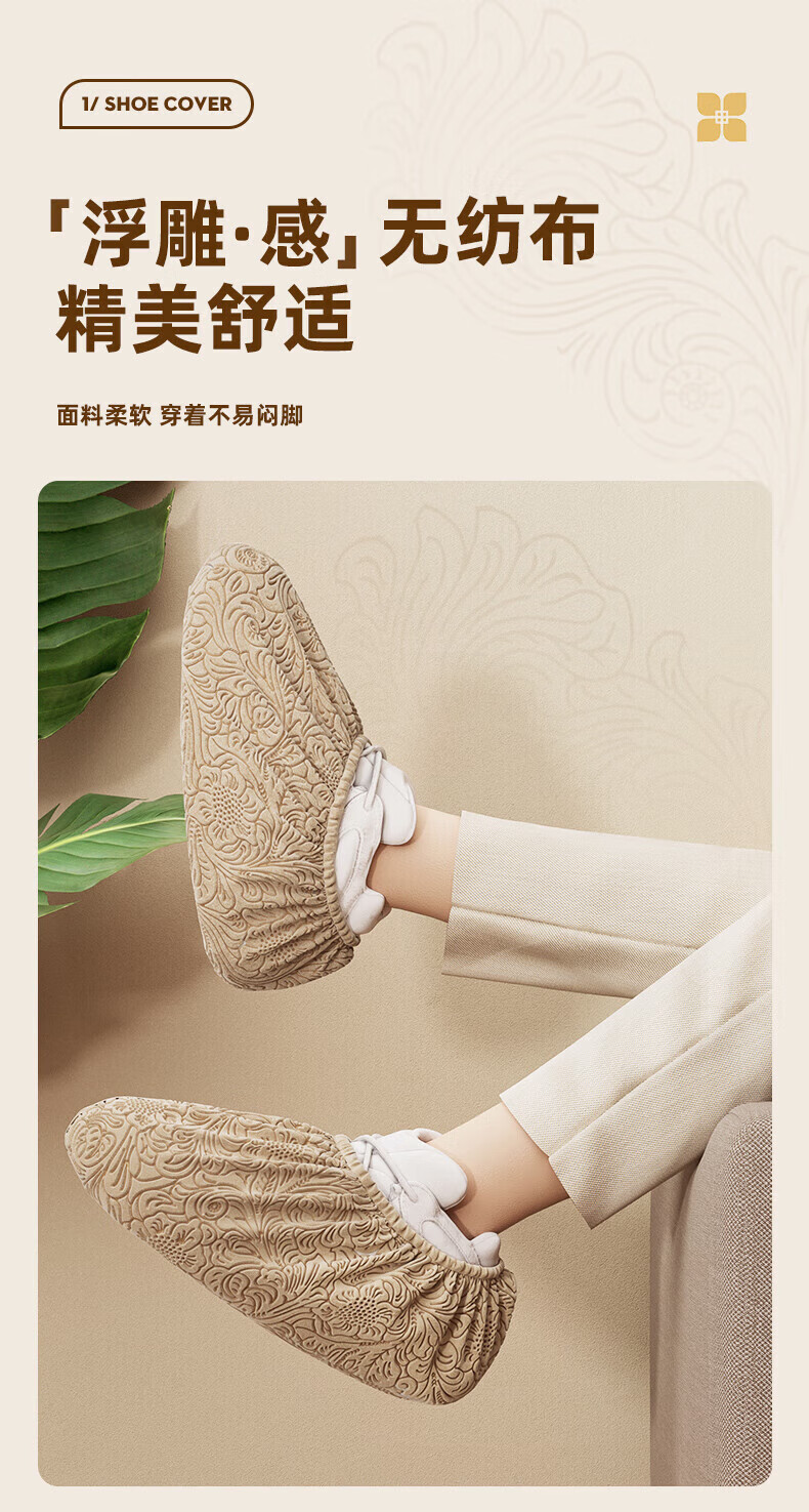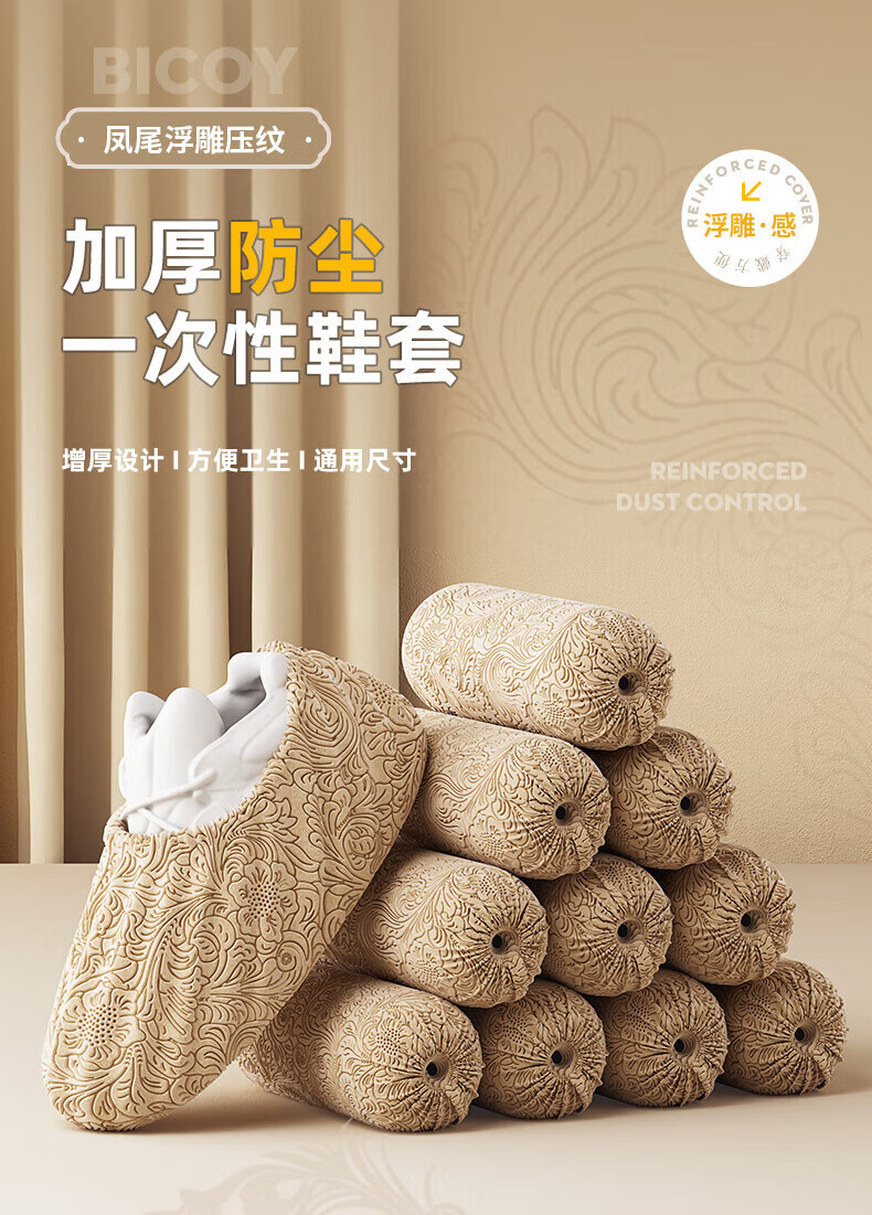 AILUKI日本鞋套加厚耐磨防滑防水一次性加厚加大耐磨无纺布高级家用学生 【米棕色】加厚无纺布鞋套200只装