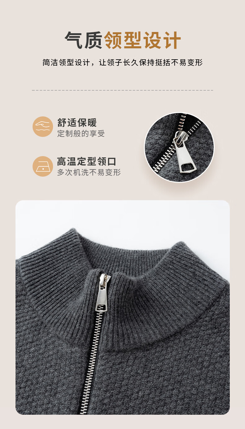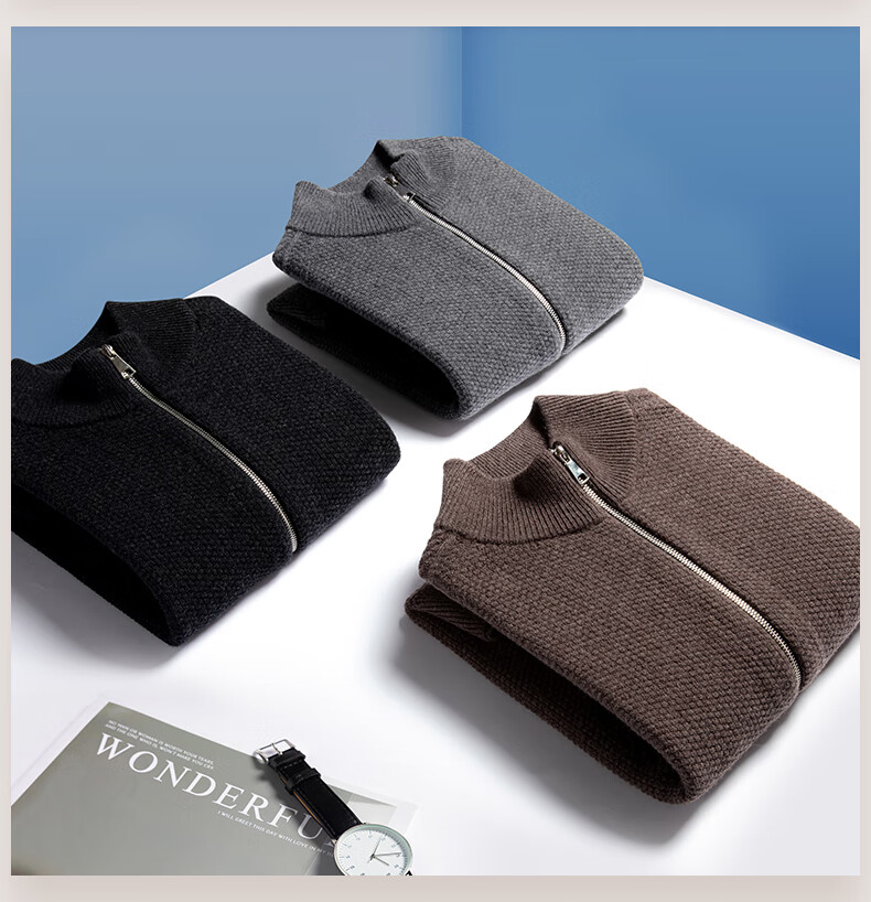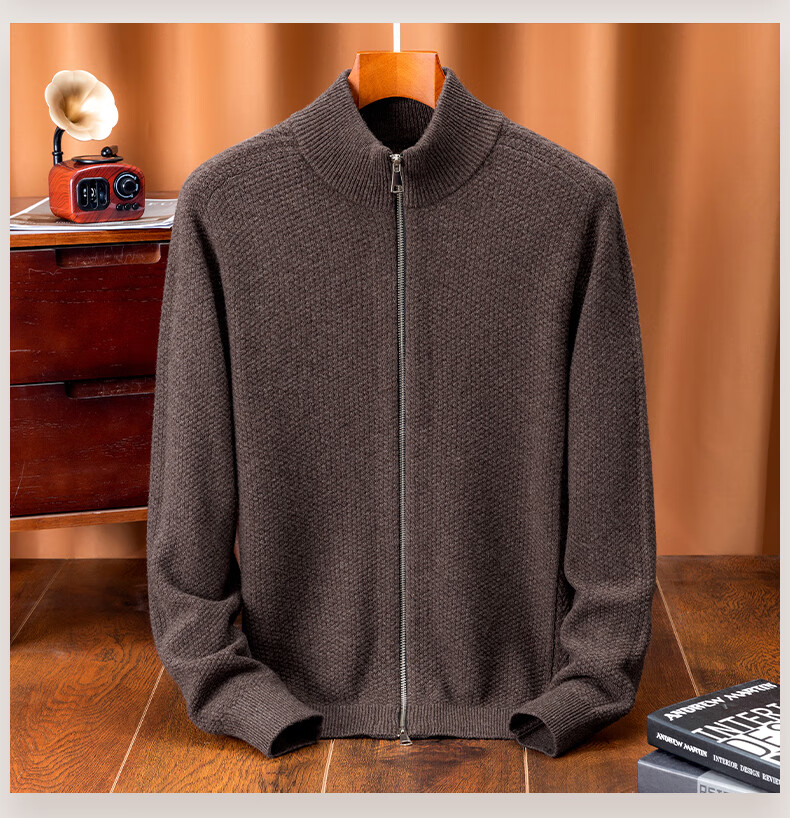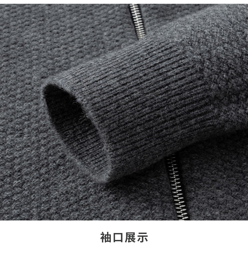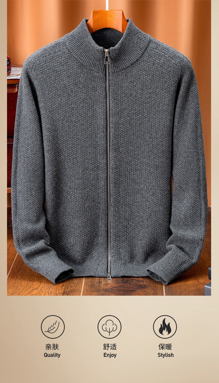 JOW【提花加厚】纯羊毛开衫外套冬季保暖休闲半高领男装通勤针织毛衣