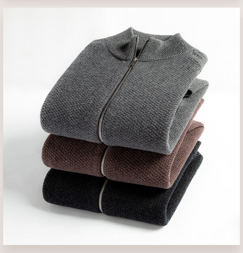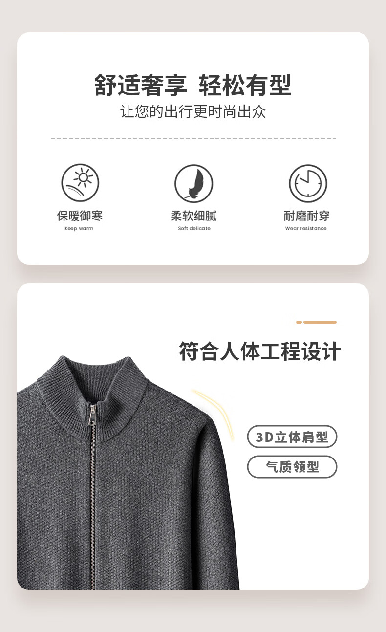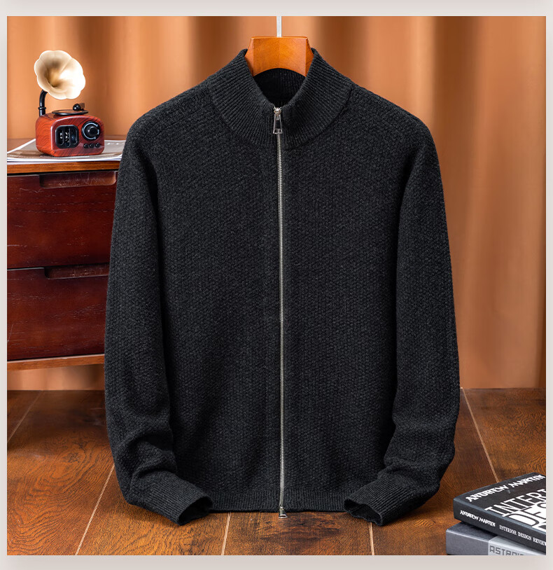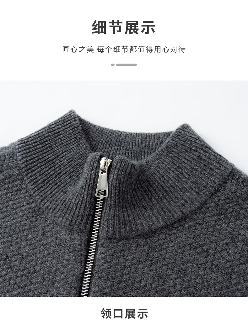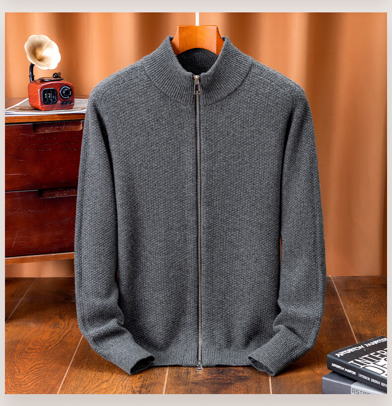 JOW【提花加厚】纯羊毛开衫外套冬季保暖休闲半高领男装通勤针织毛衣