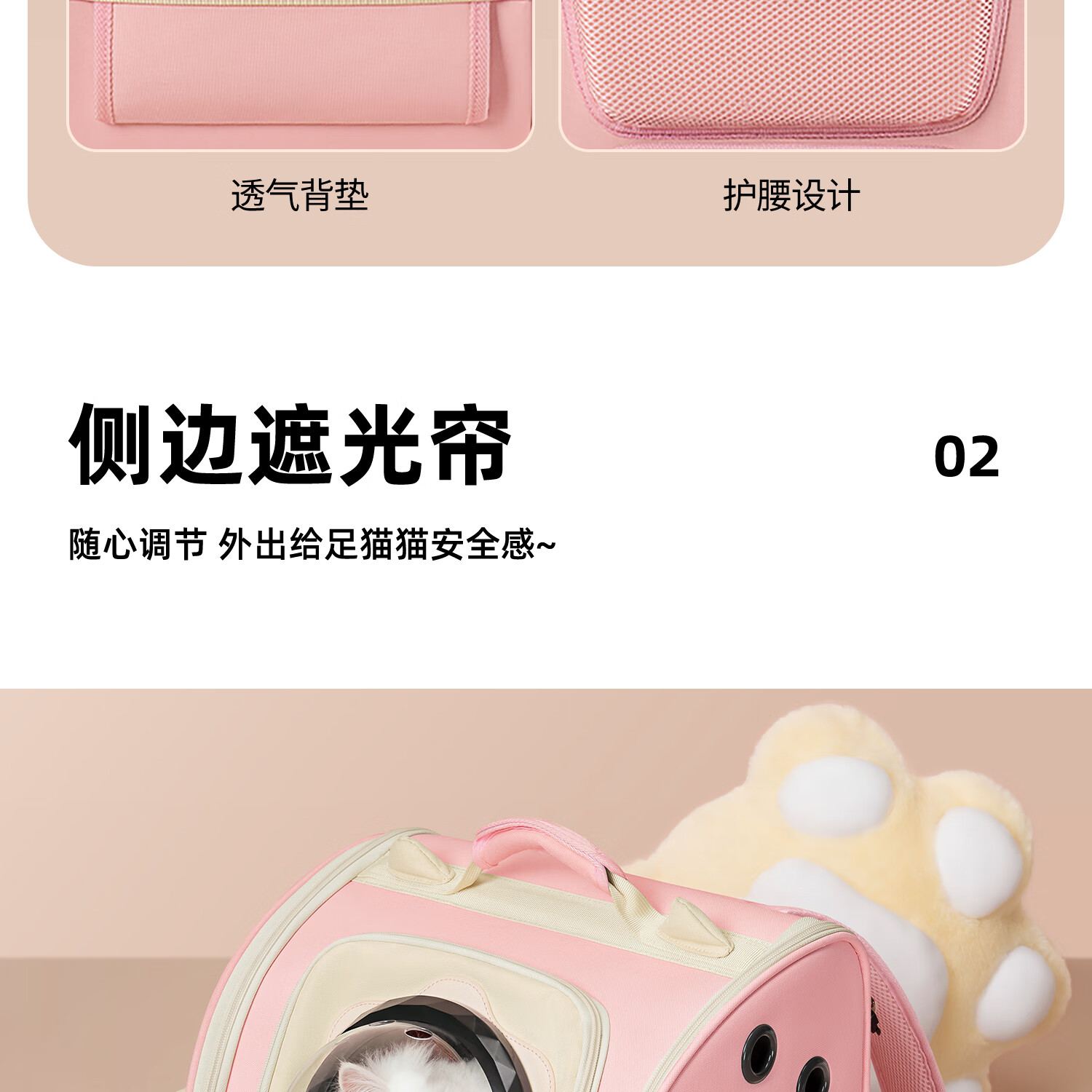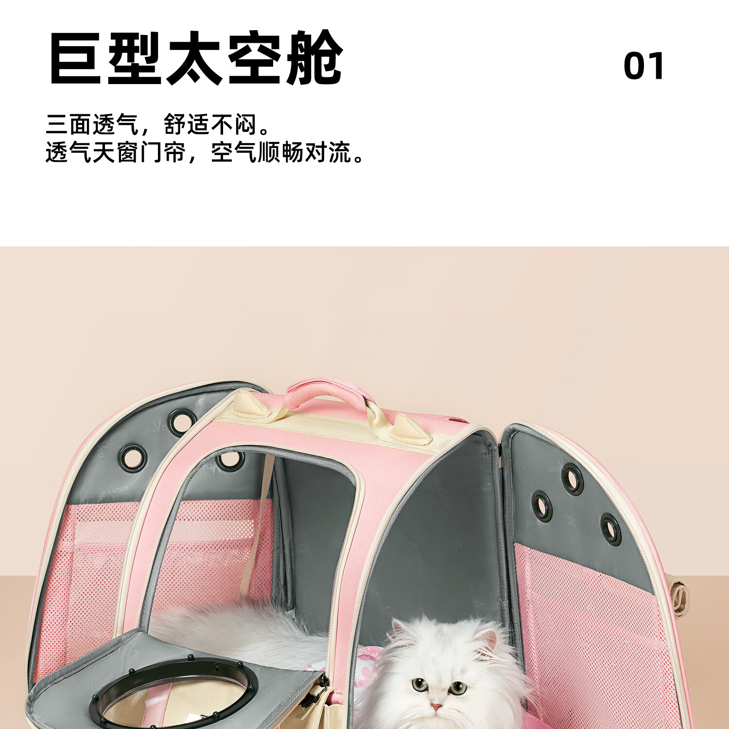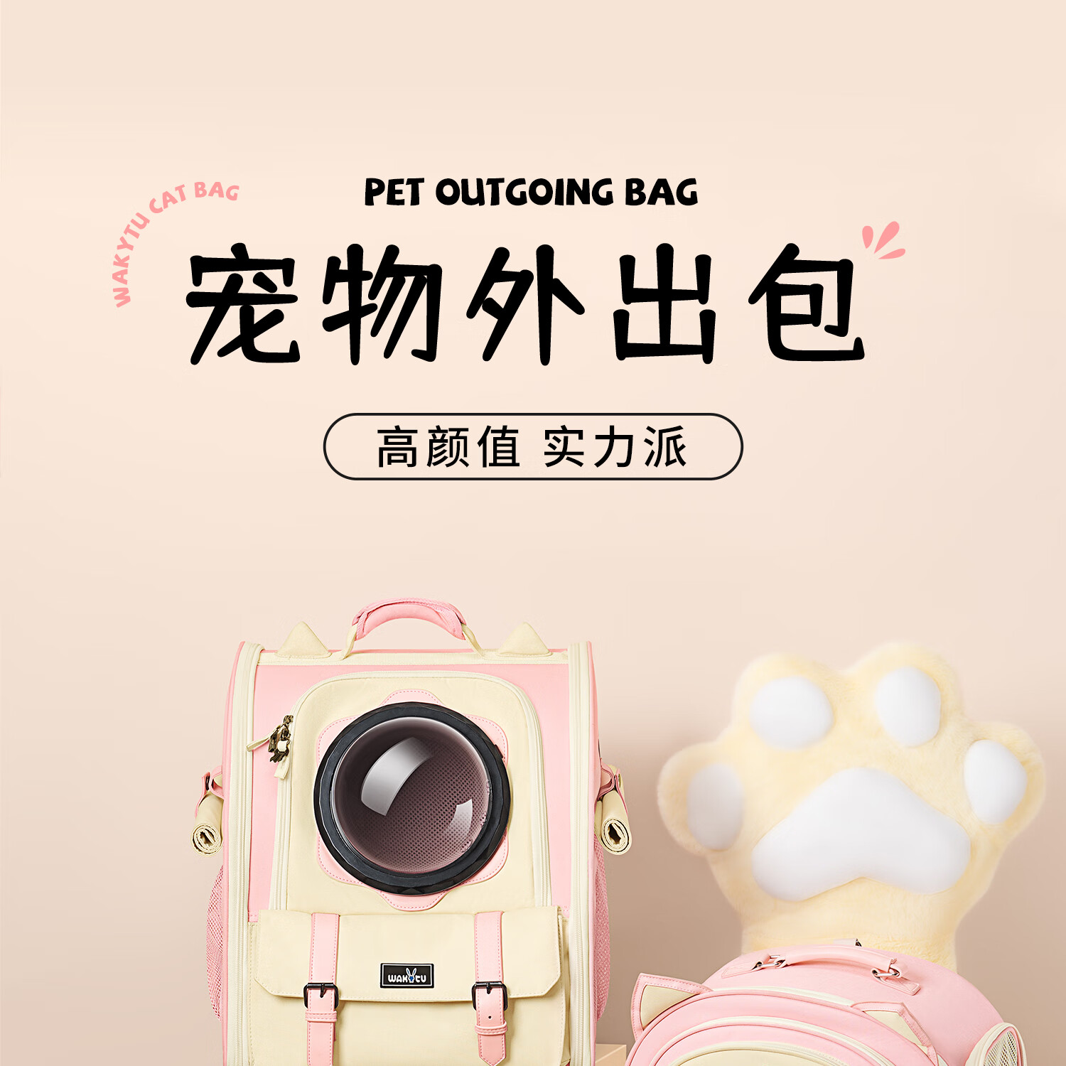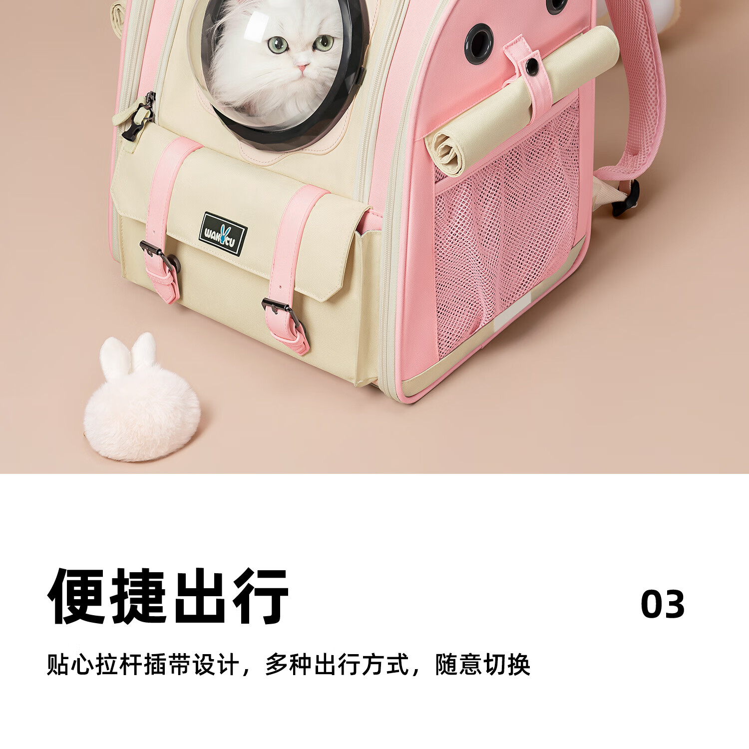 WAKYTU外出便携猫包双肩透气加大容量太空舱猫狗宠物背包 樱花粉20斤内
