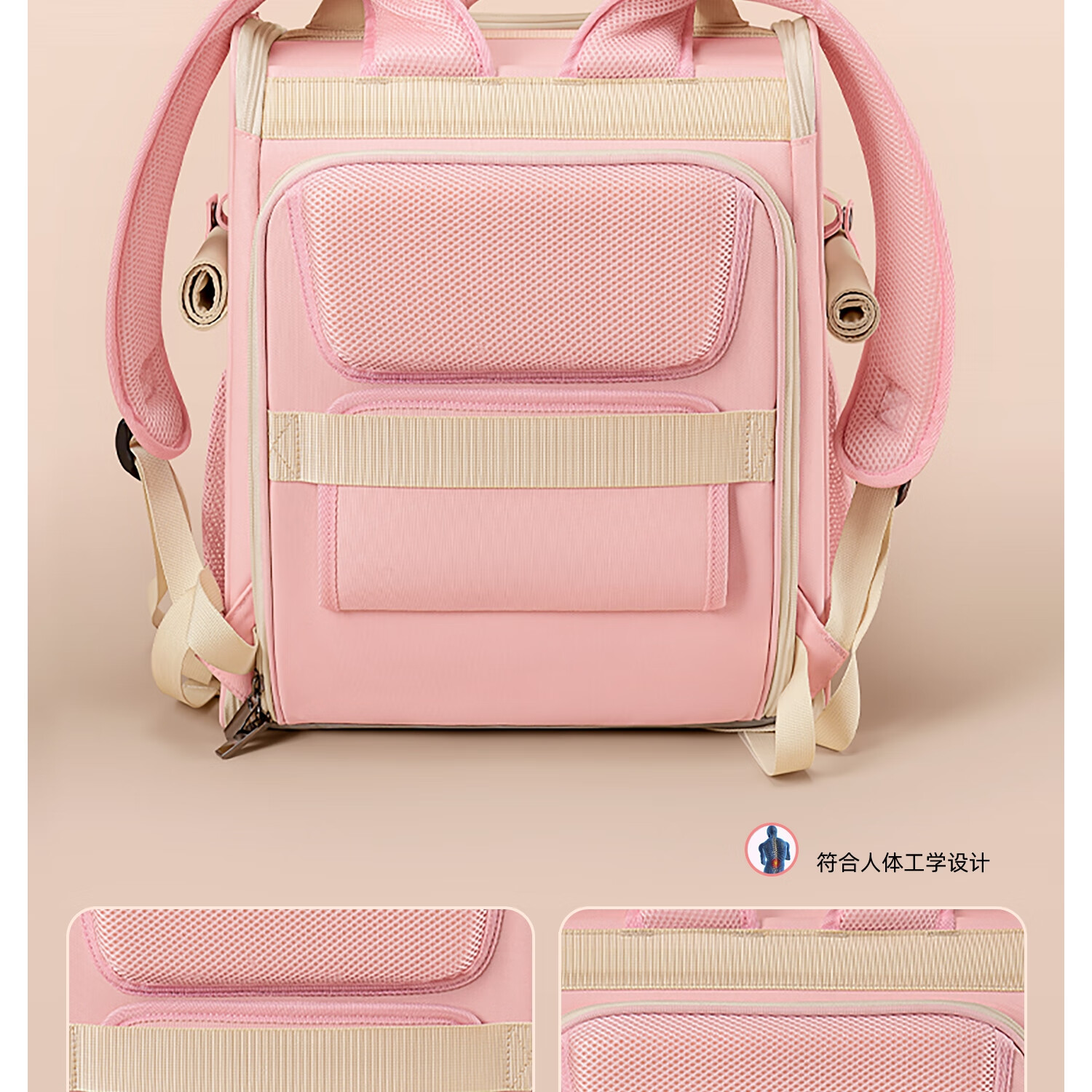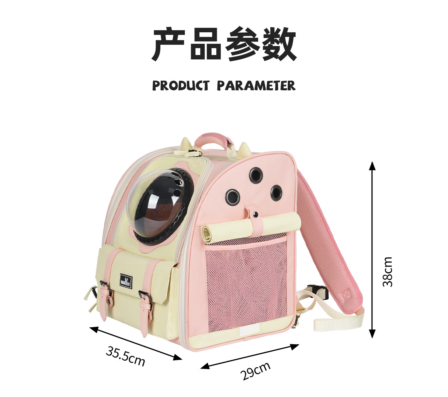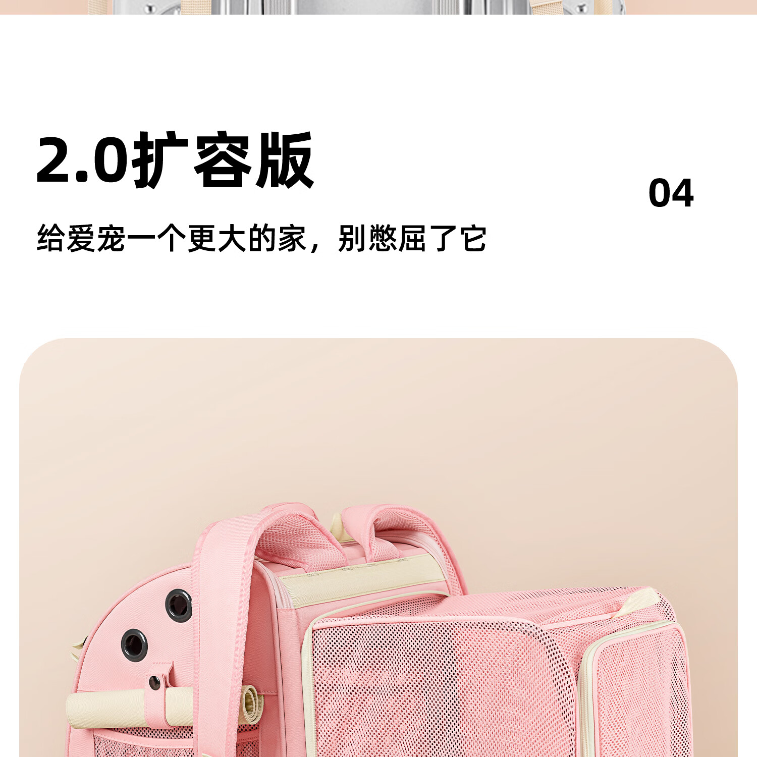 WAKYTU外出便携猫包双肩透气加大容量太空舱猫狗宠物背包 樱花粉20斤内