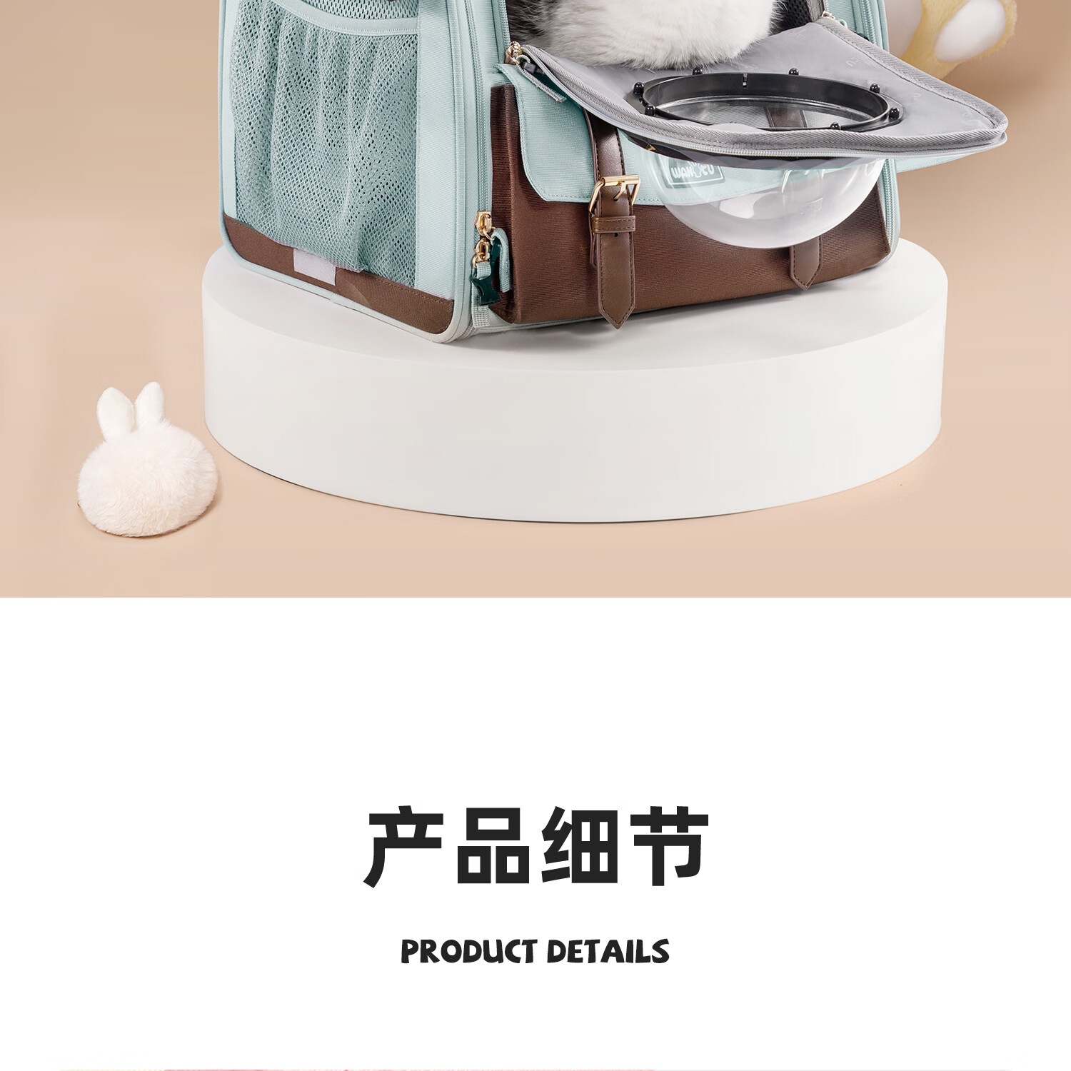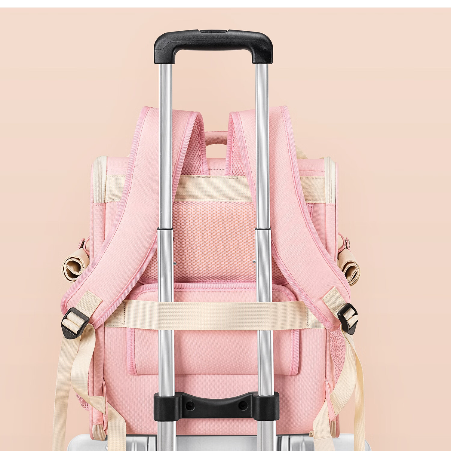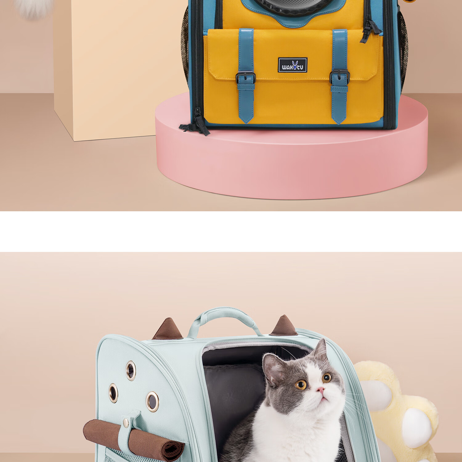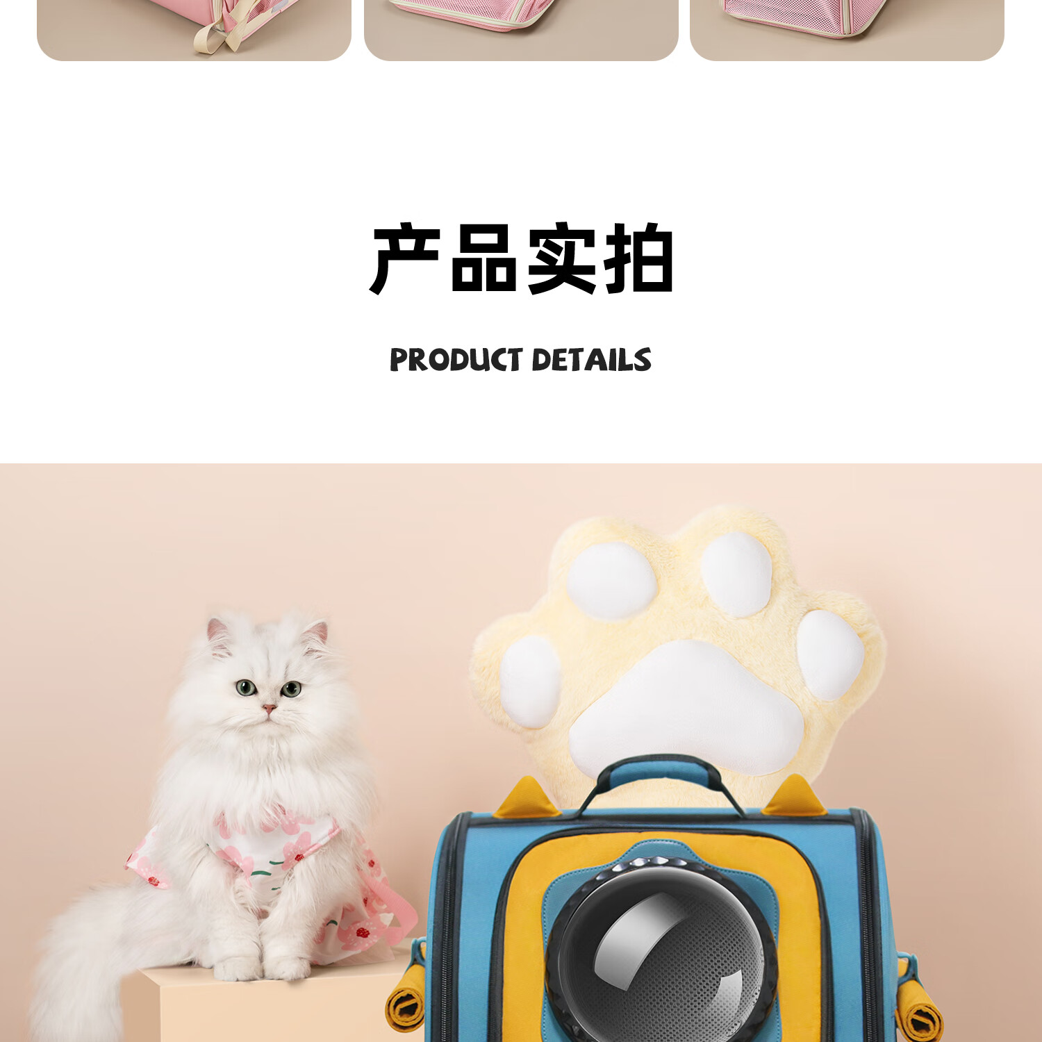 WAKYTU外出便携猫包双肩透气加大容量太空舱猫狗宠物背包 樱花粉20斤内