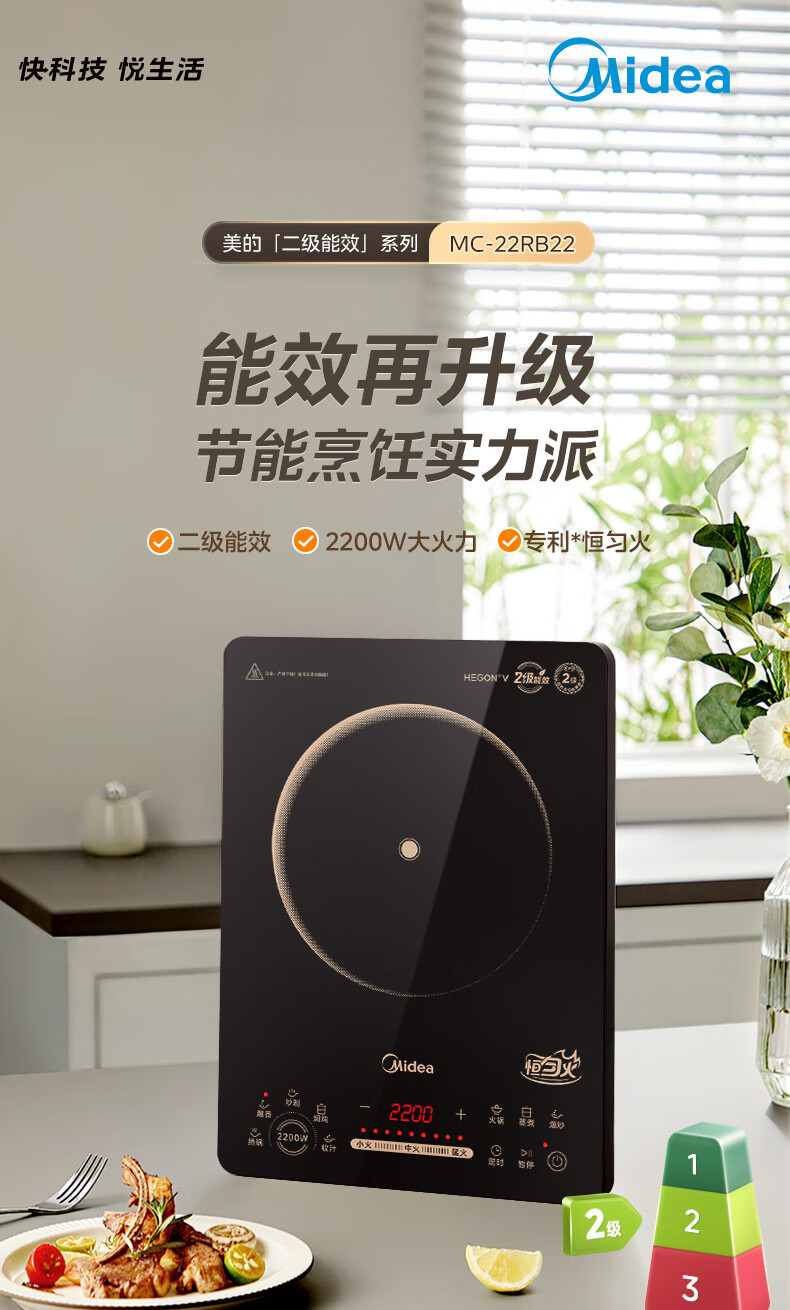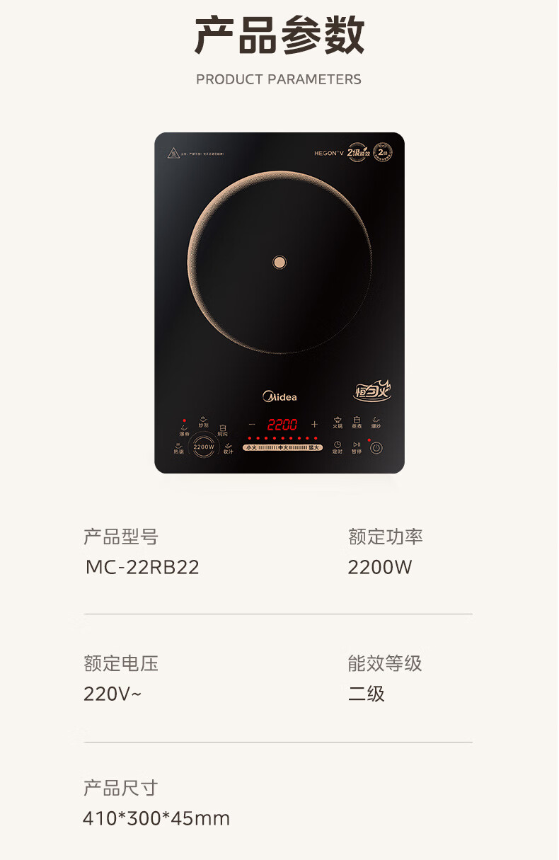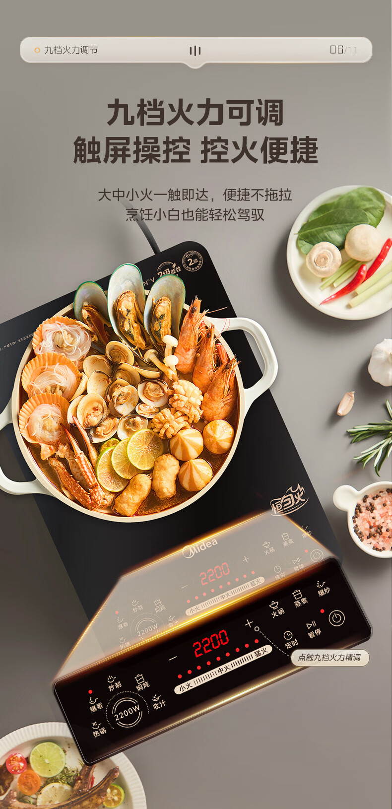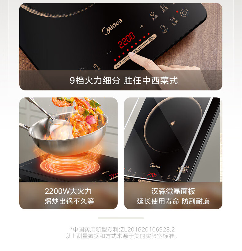 美的(Midea)家用电磁炉电池炉2200W大功率猛火一体面板电磁灶智能定时火锅炉【】升级二级能效22RB22
