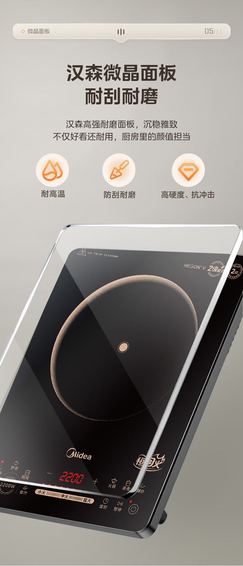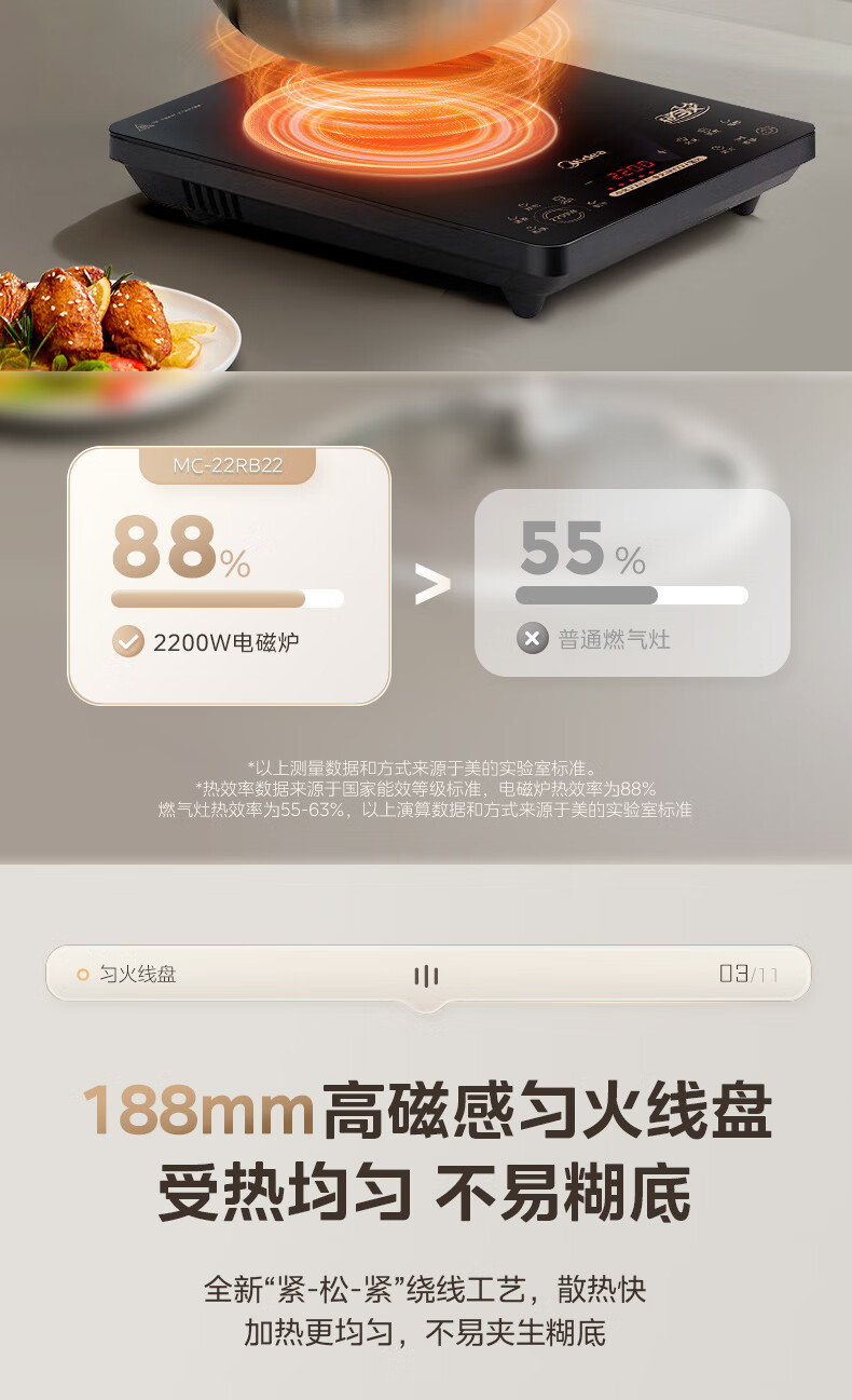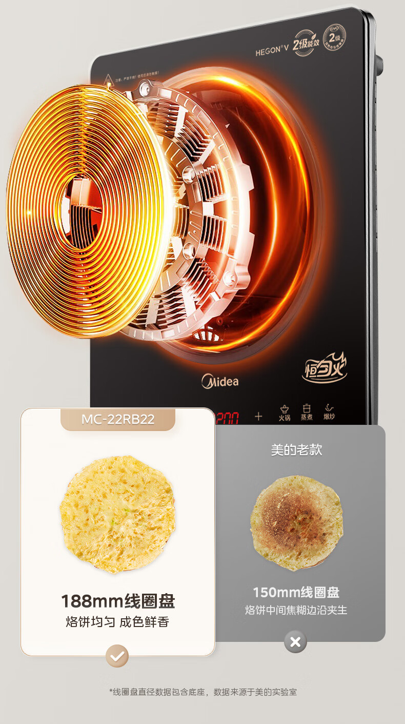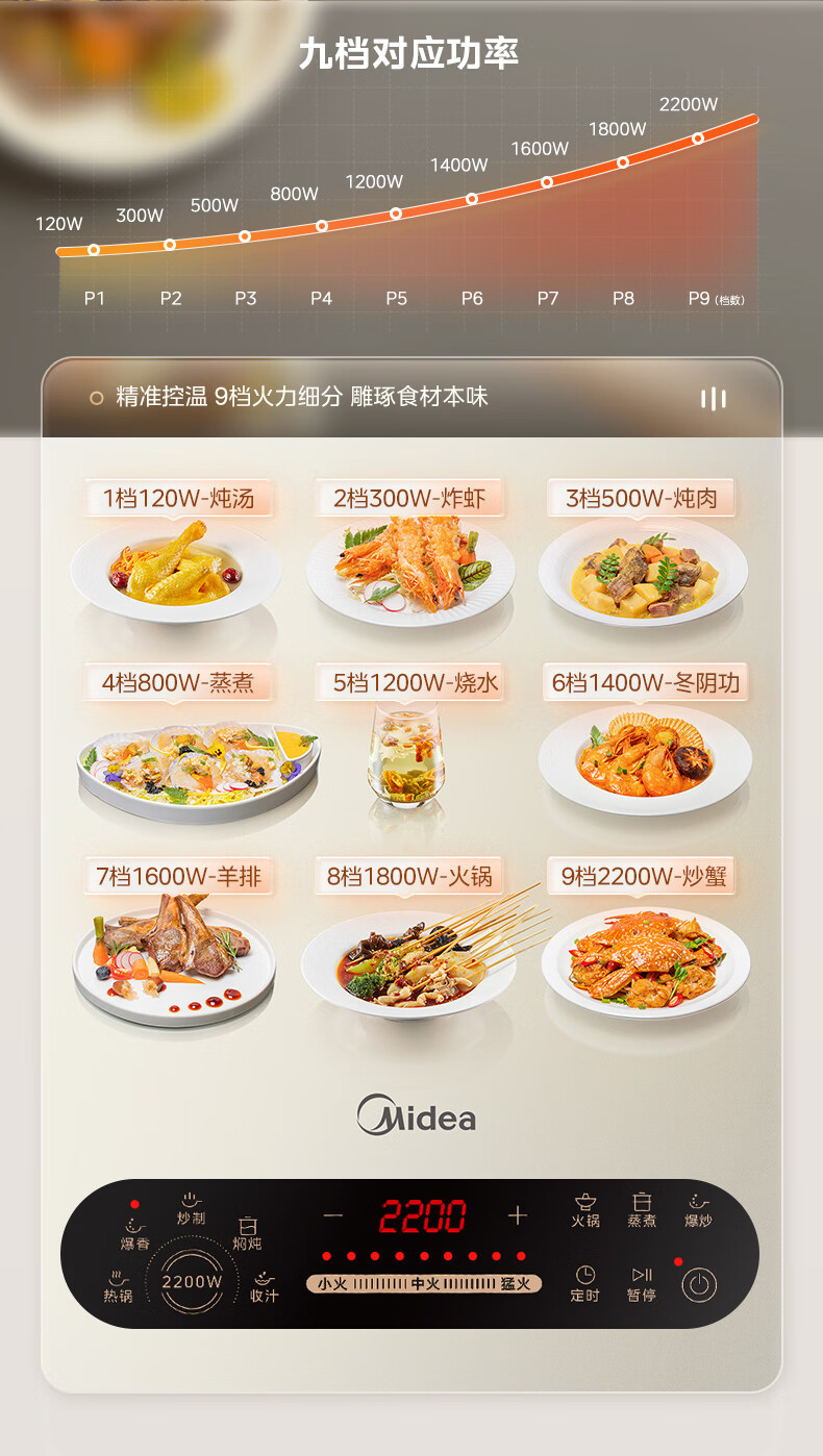 美的(Midea)家用电磁炉电池炉2200W大功率猛火一体面板电磁灶智能定时火锅炉【】升级二级能效22RB22