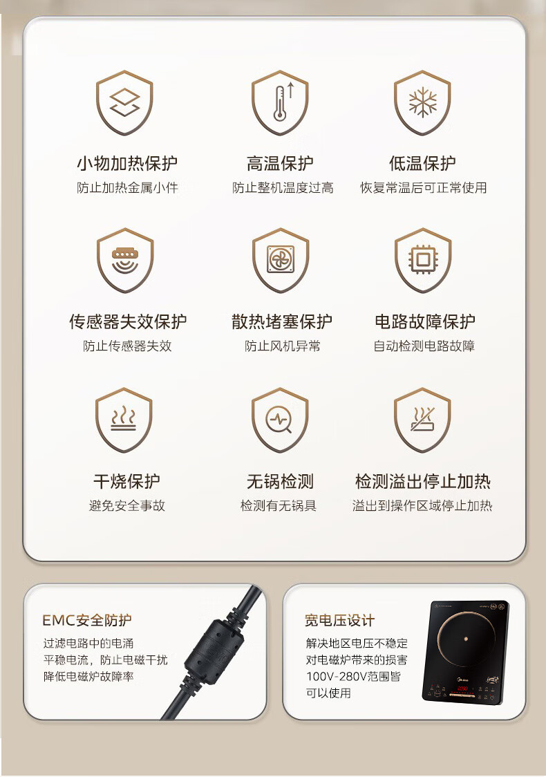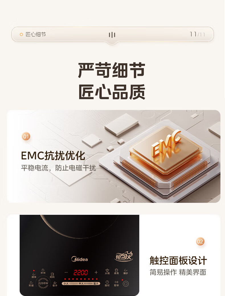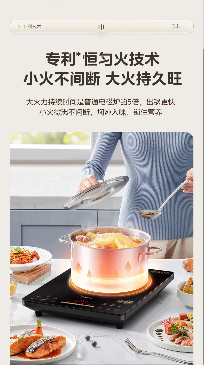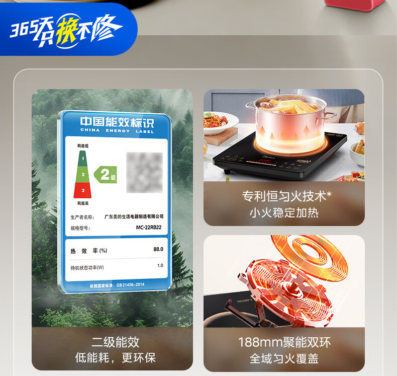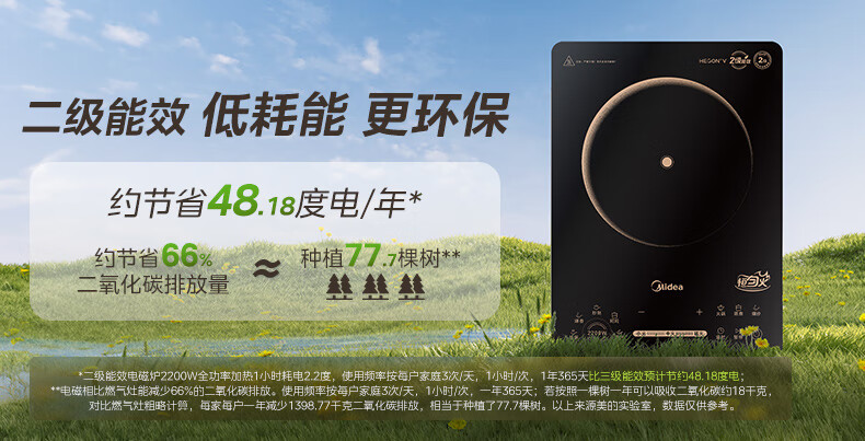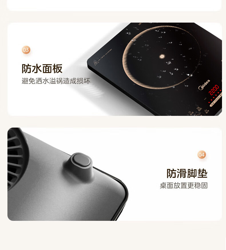 美的(Midea)家用电磁炉电池炉2200W大功率猛火一体面板电磁灶智能定时火锅炉【】升级二级能效22RB22