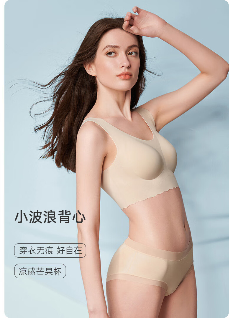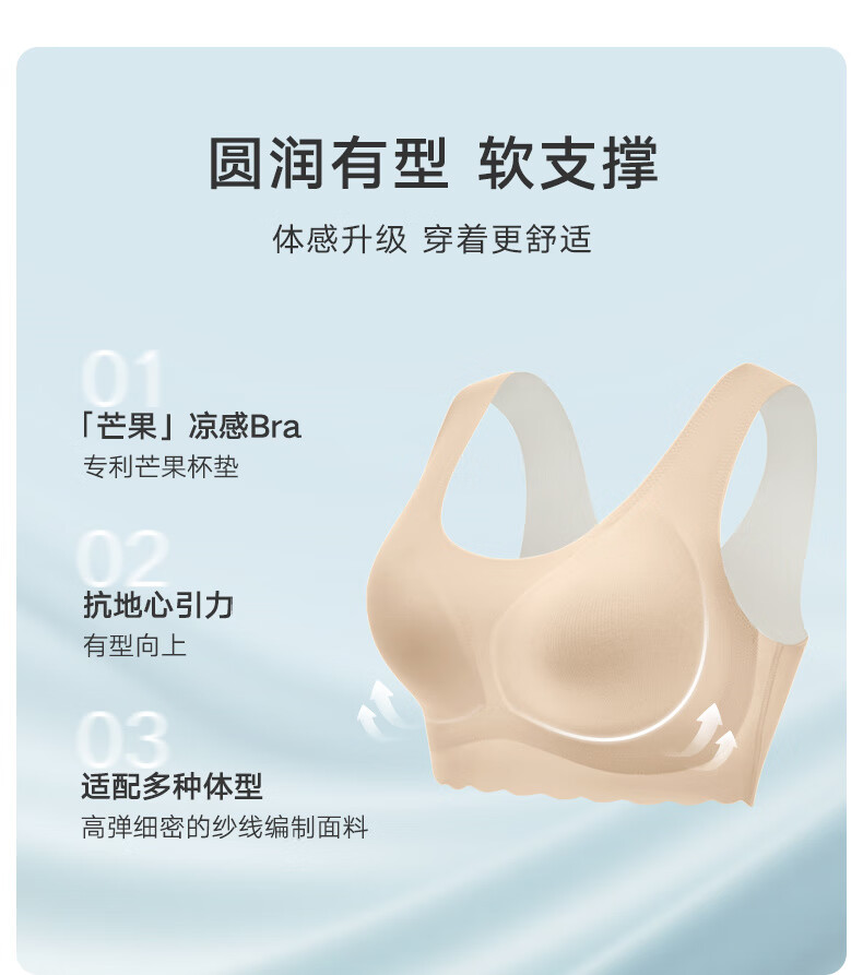 曼妮芬【凉感芒果杯】曼妮芬无钢圈文胸无痕软支撑女士内衣少女夏季薄款 111 肤色 M (160)