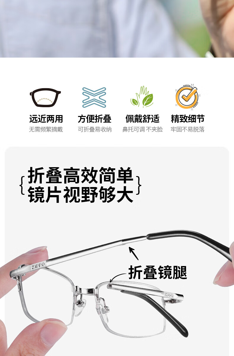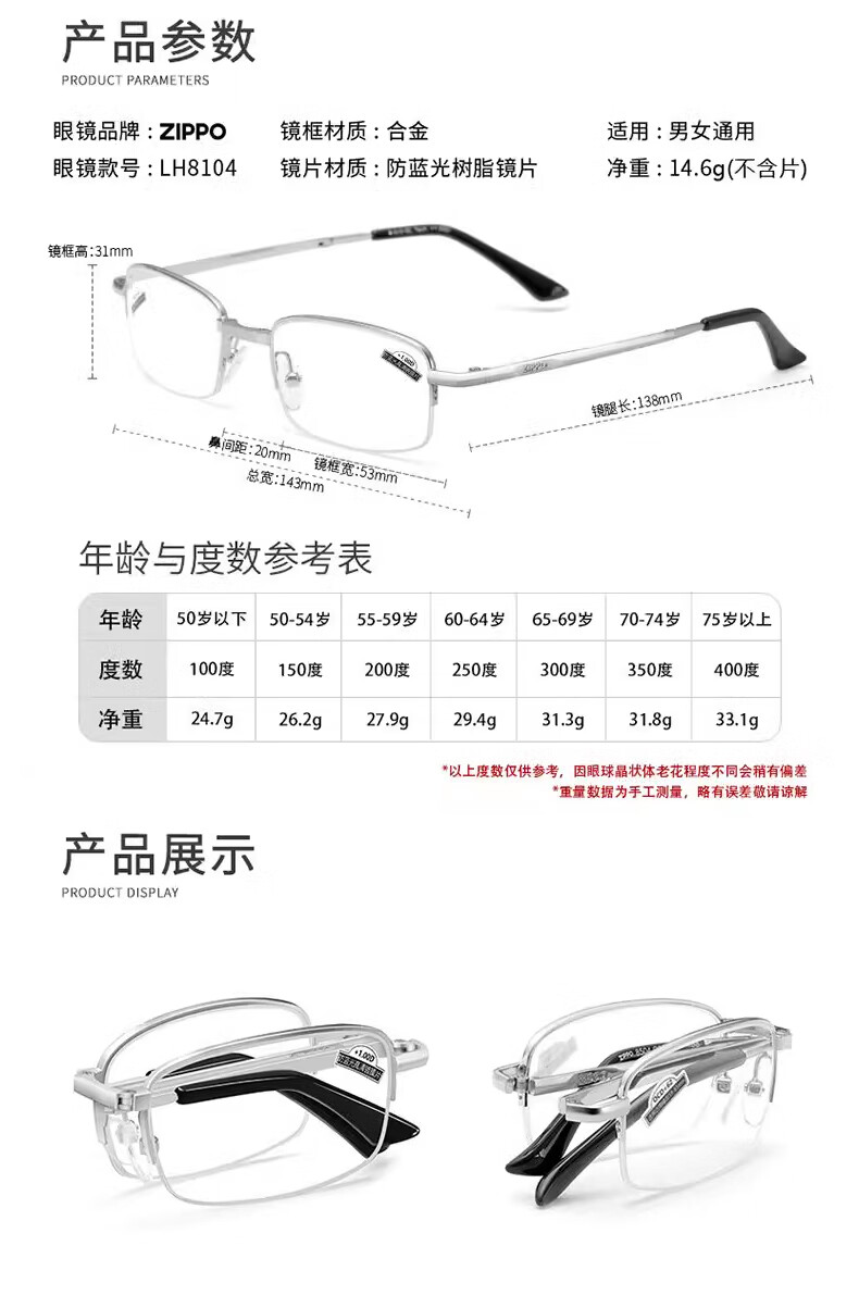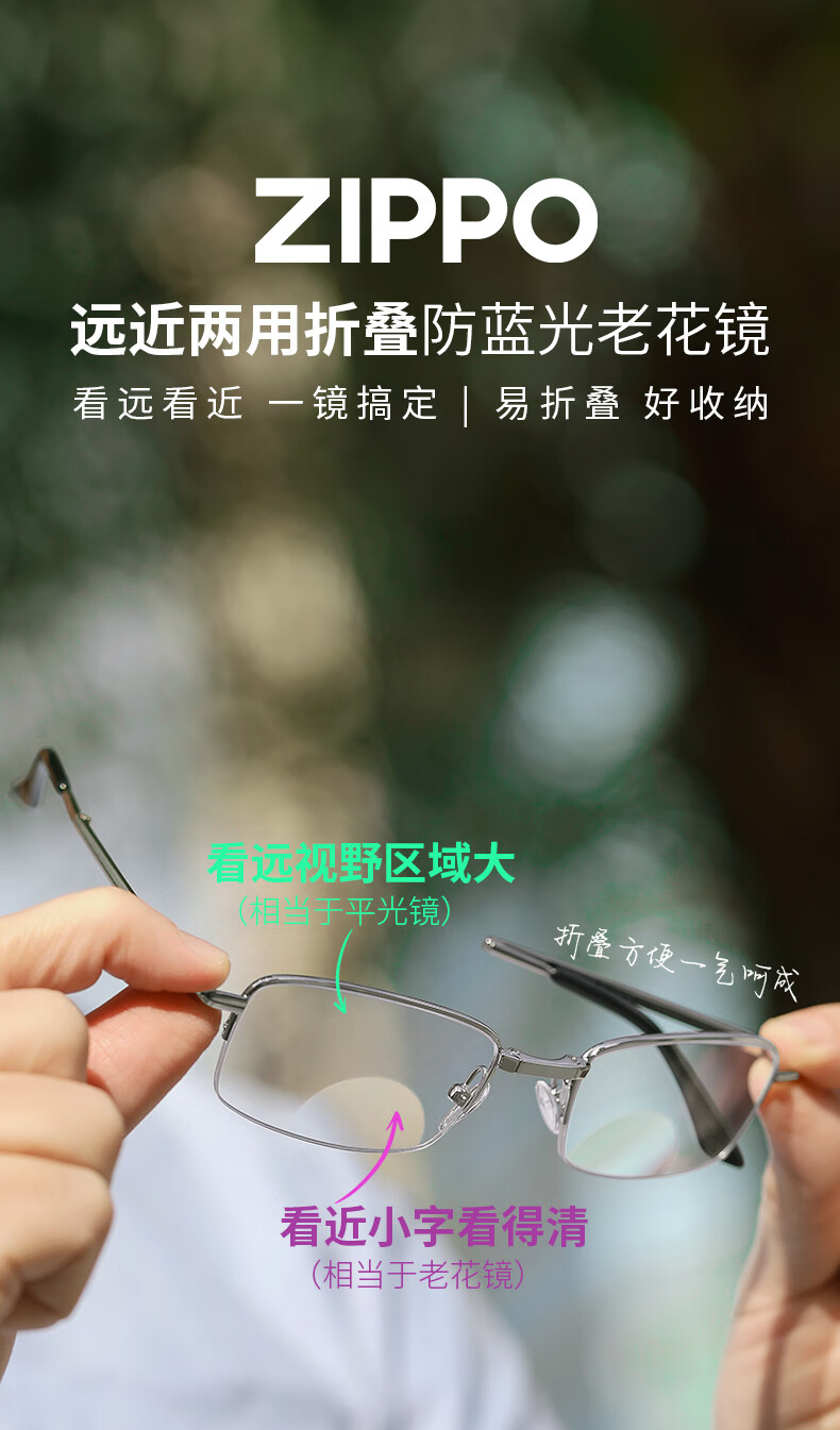 ZIPPO美国远近两用折叠便携防蓝光老花镜进口镜片高清男女8104D开学