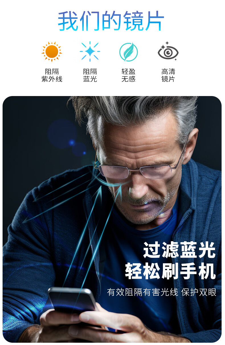 HB防蓝光无框老花镜 时尚耐磨点漆 高清舒适 开学