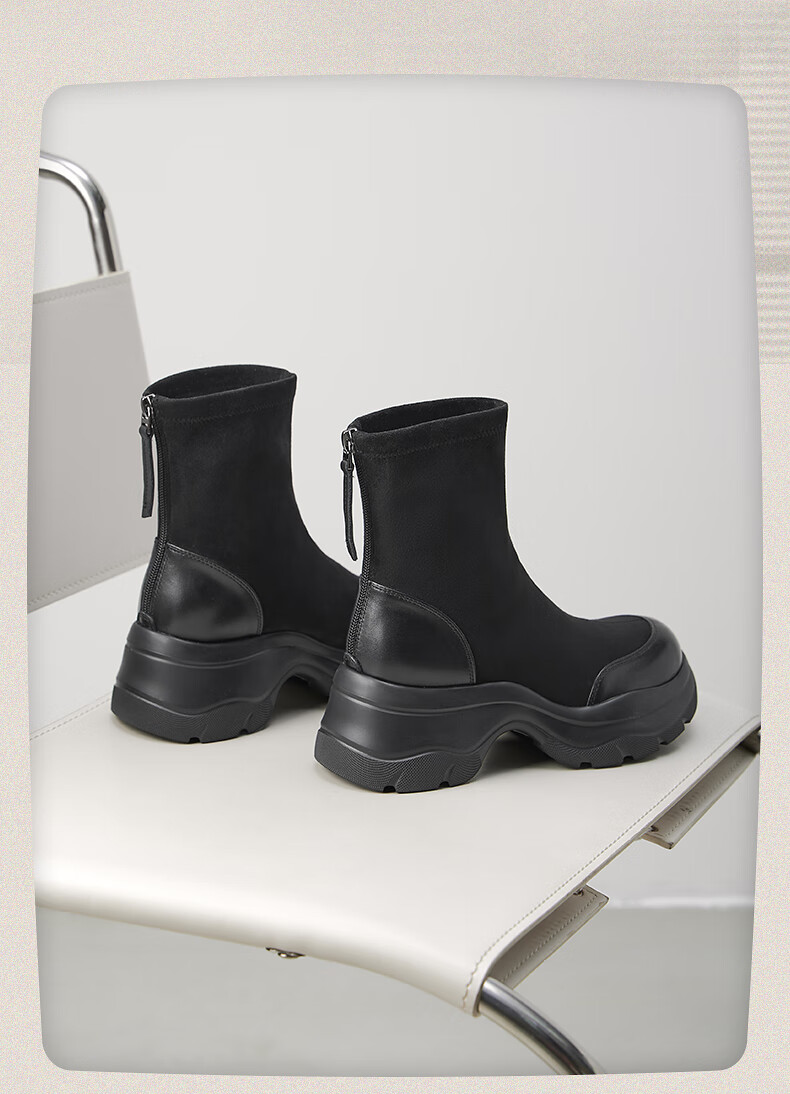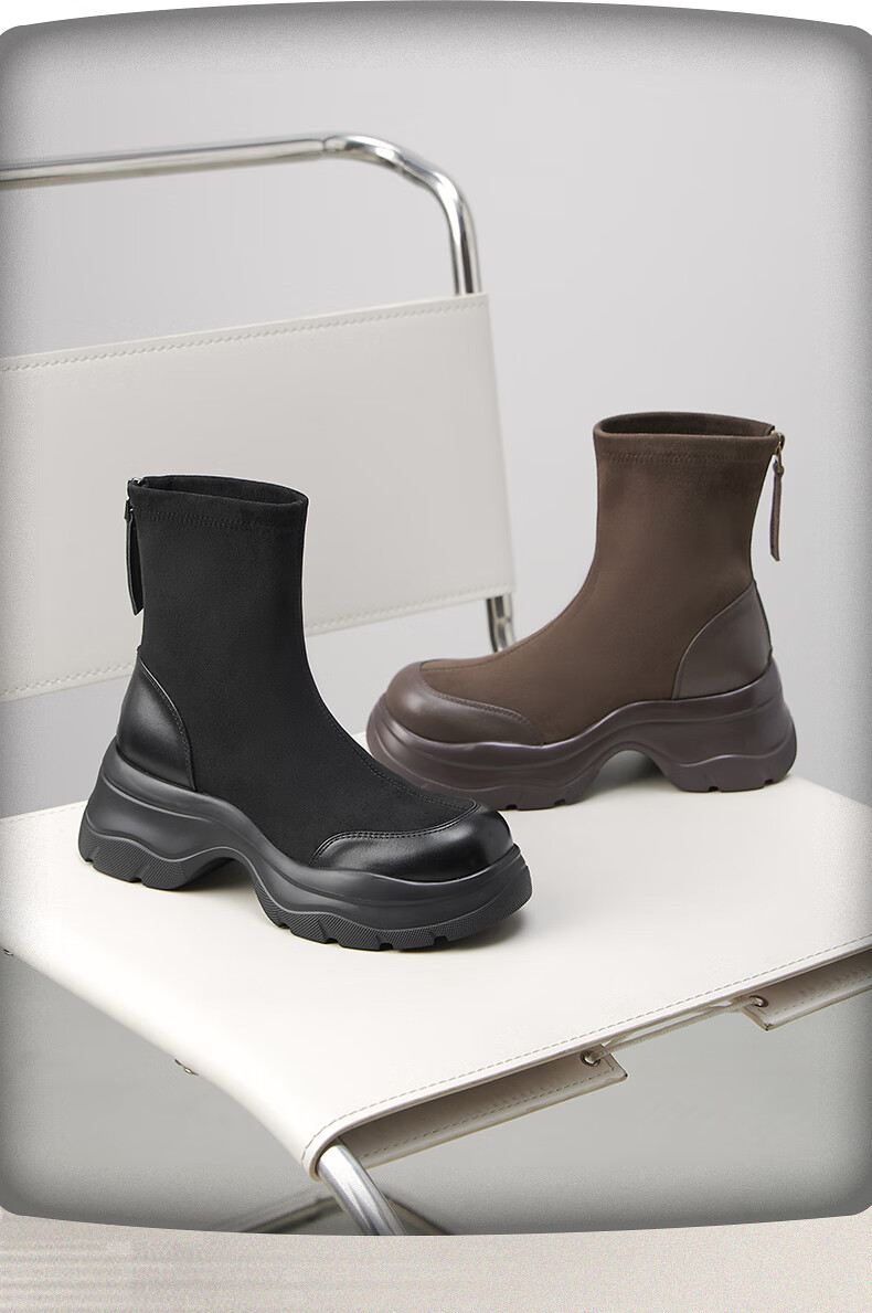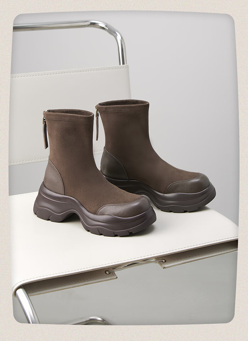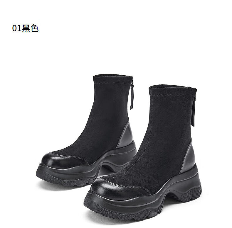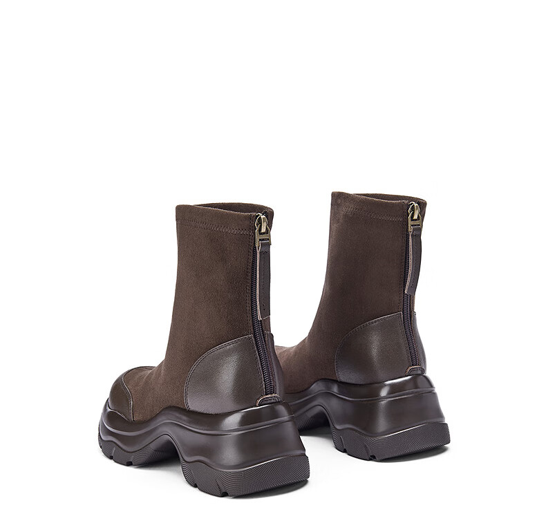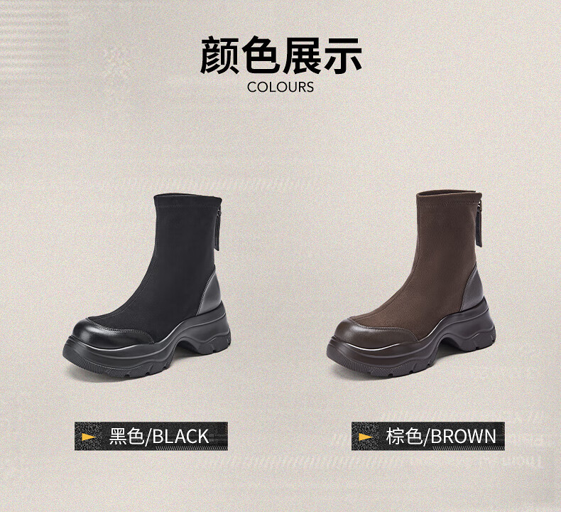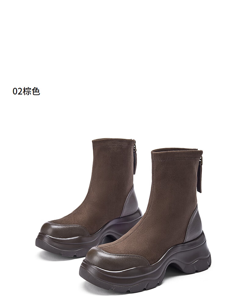 热风厚底时装靴女2025年冬季新款棕色复古短靴小个子增高女靴子 02棕色 37