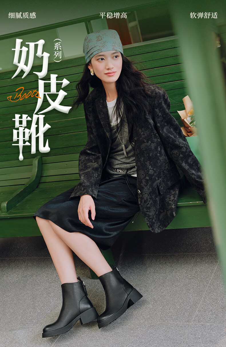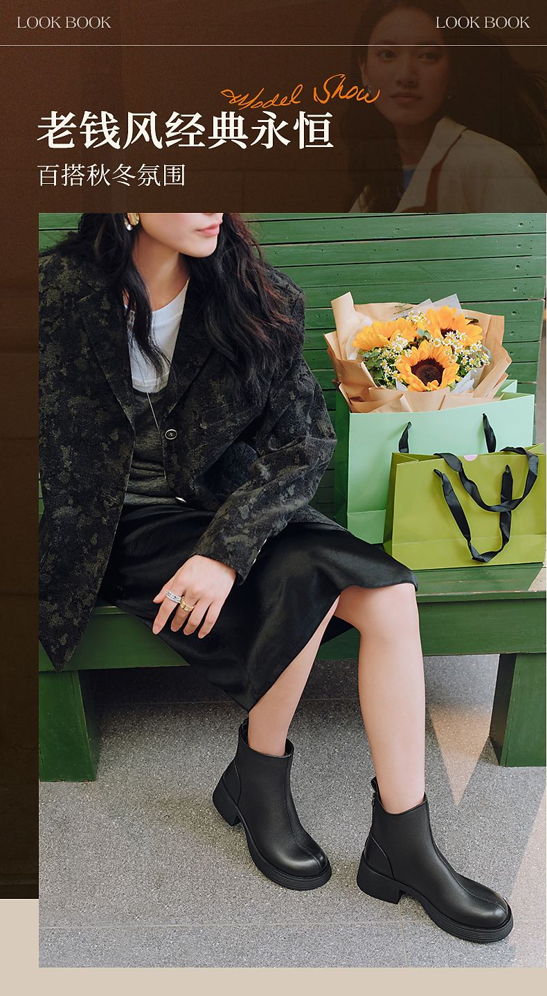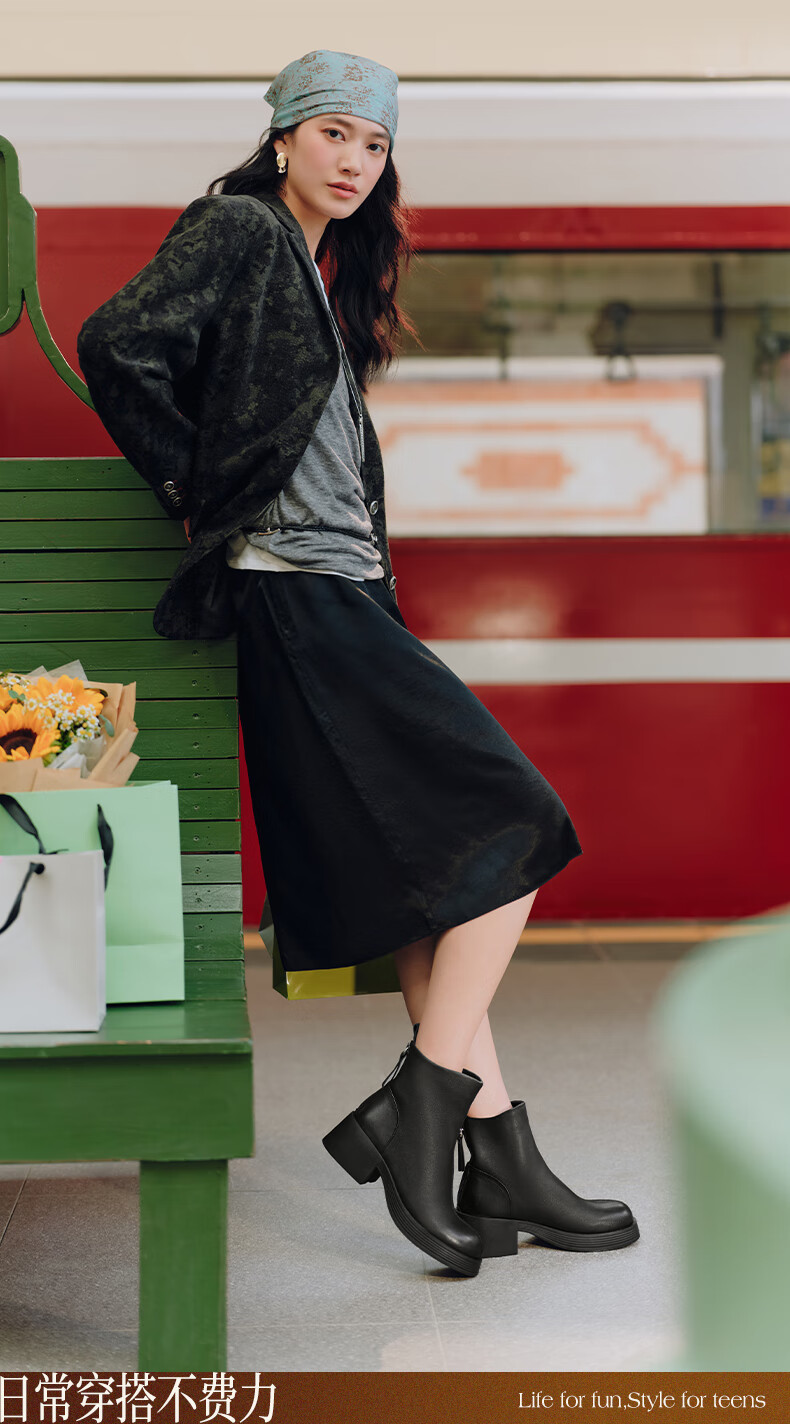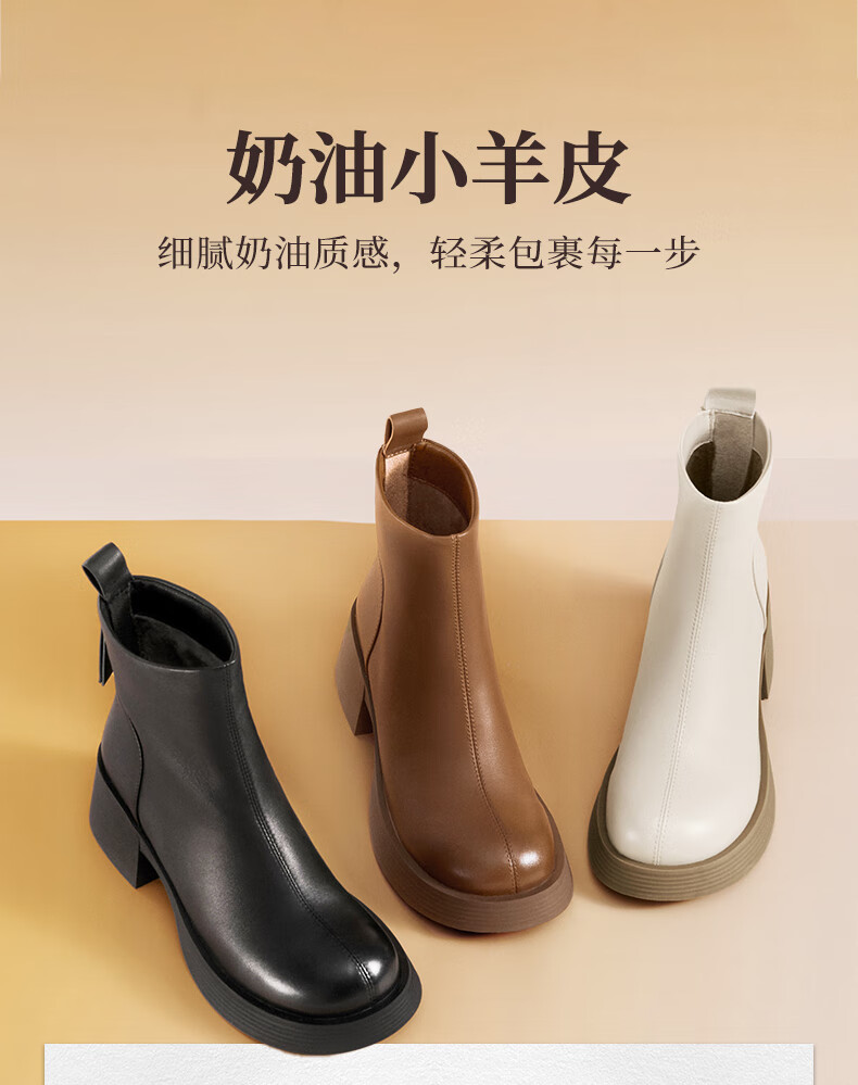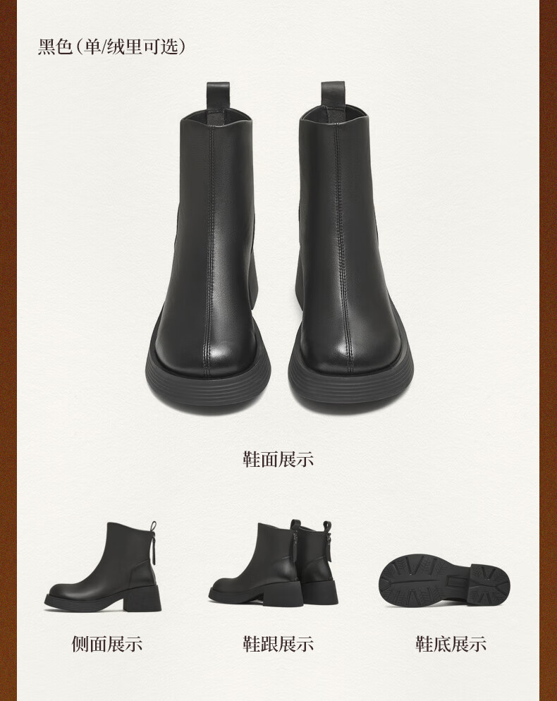 天美意女靴商场同款粗跟复古潮流短靴女时装靴2025新款BL701DD5 黑色 36