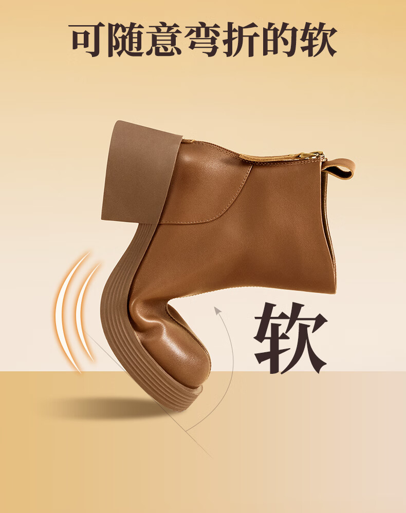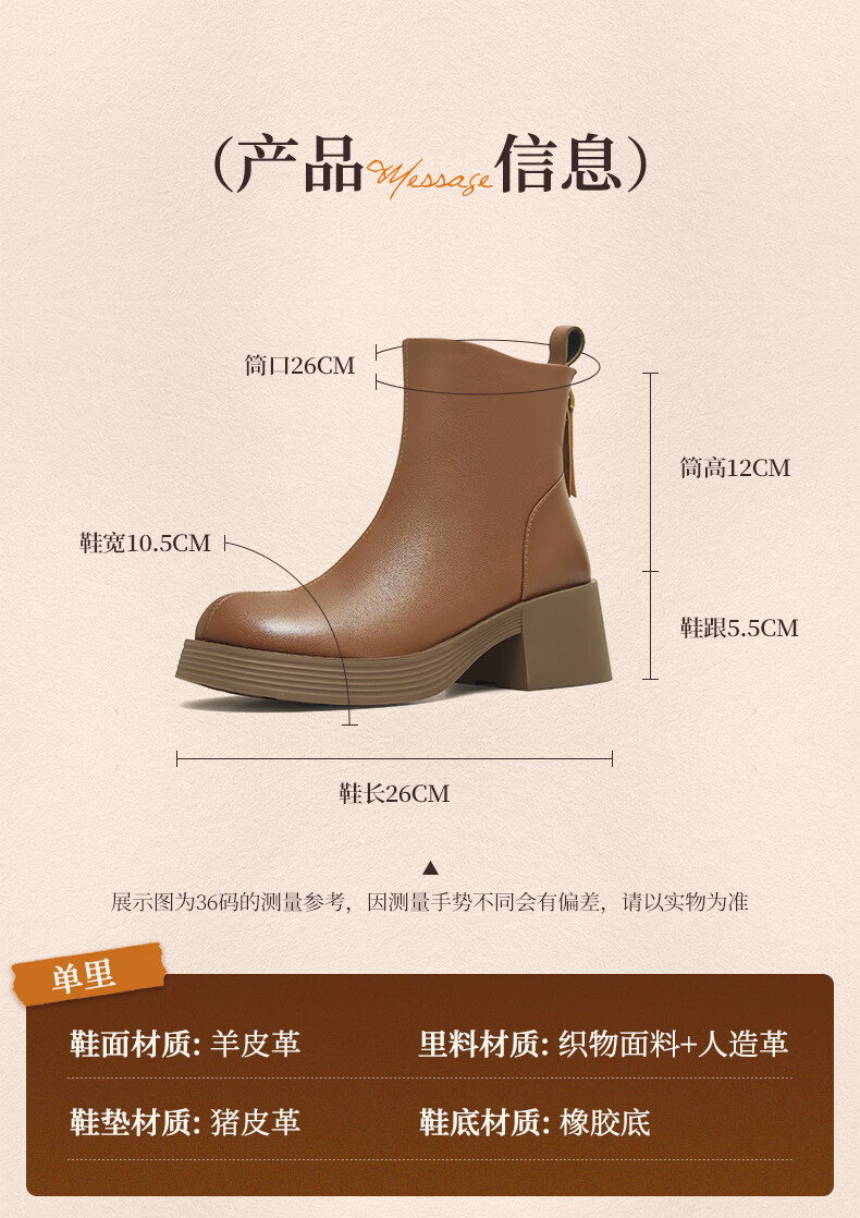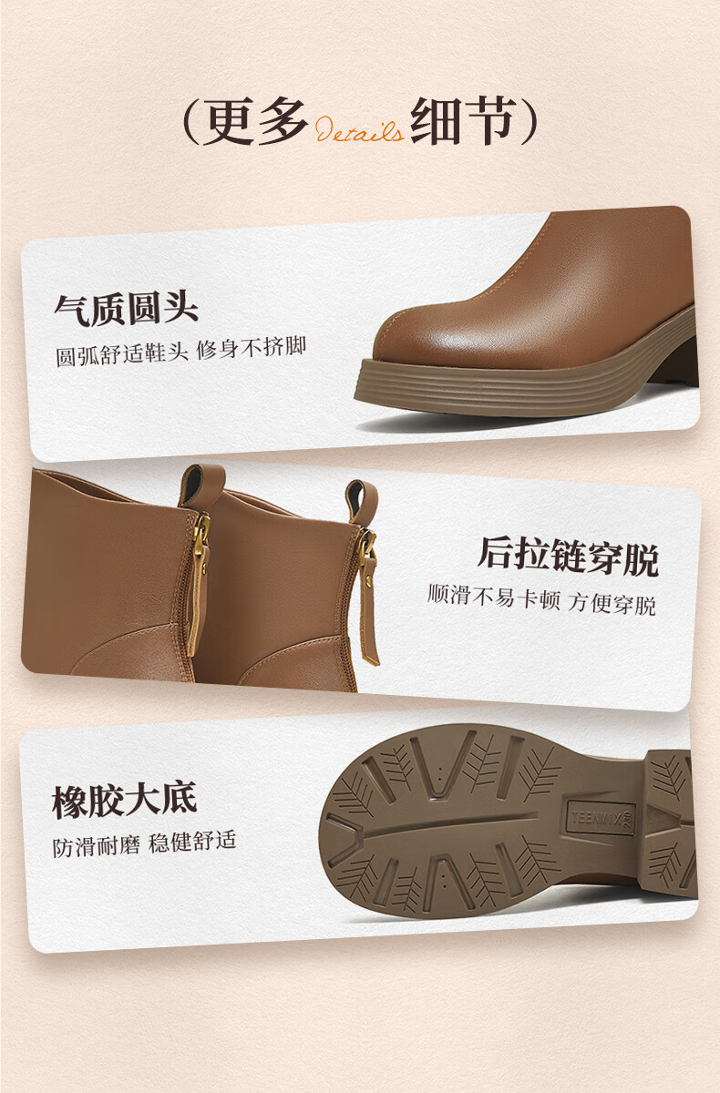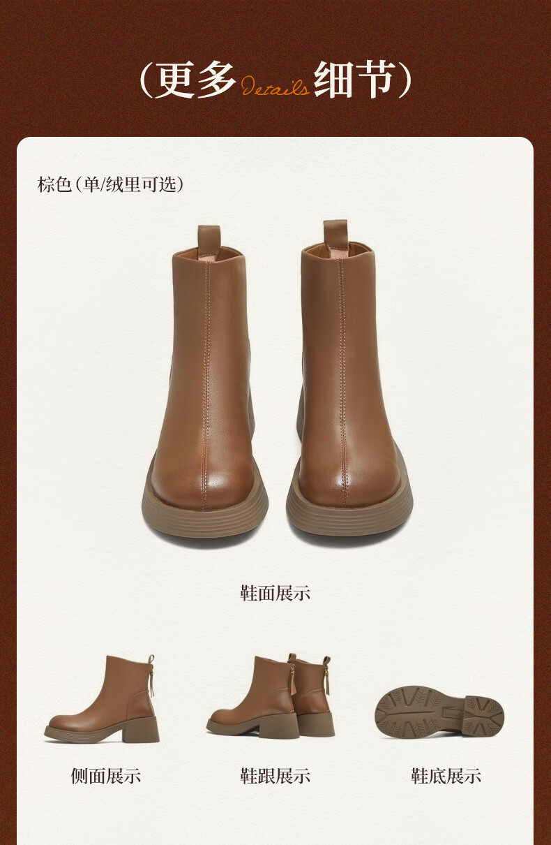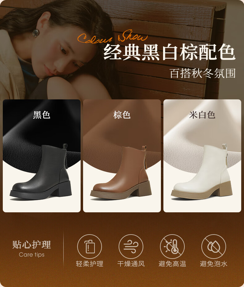 天美意女靴商场同款粗跟复古潮流短靴女时装靴2025新款BL701DD5 黑色 36