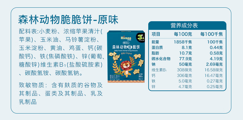 禾泱泱婴幼儿森林动物脆脆饼干原味80g 宝宝零食磨牙饼干锻炼抓握6月+