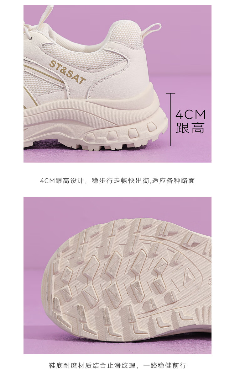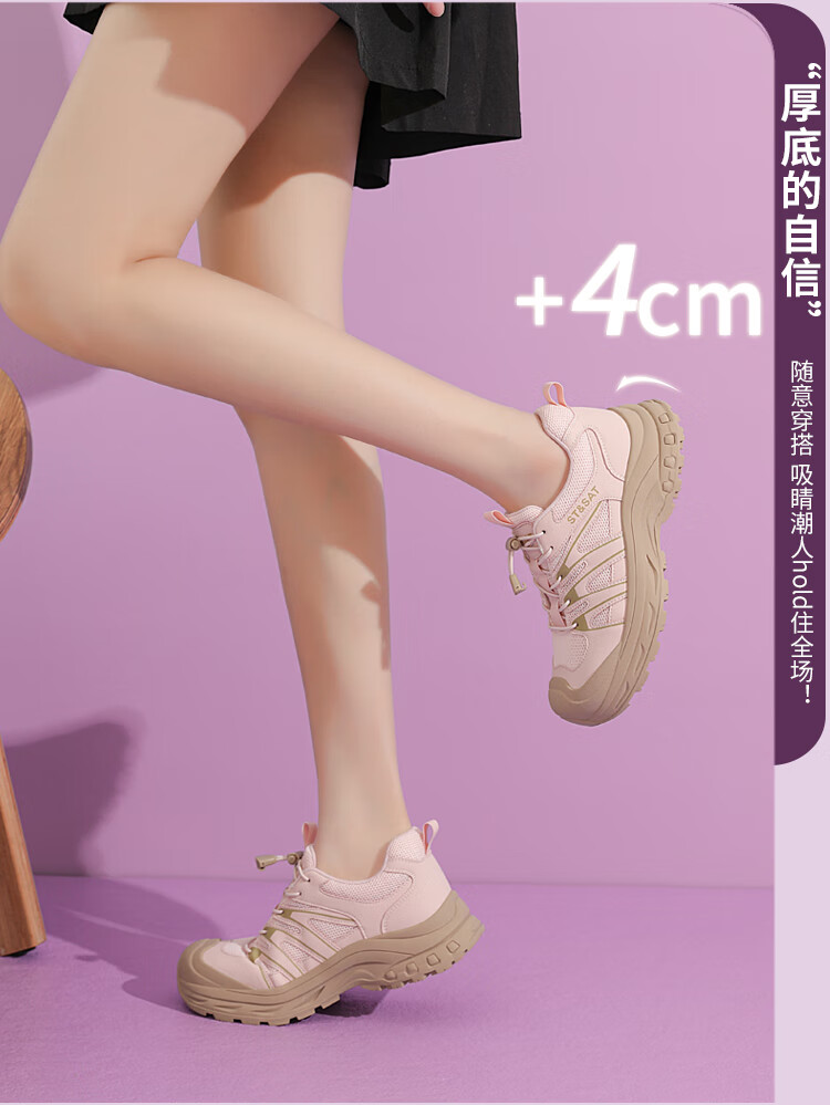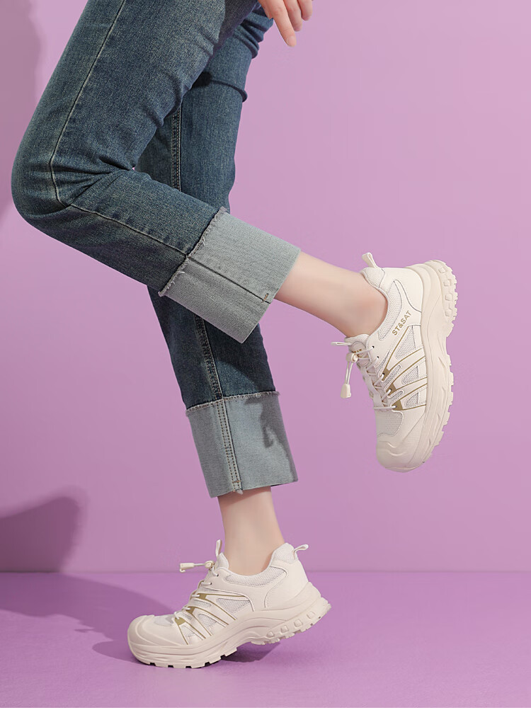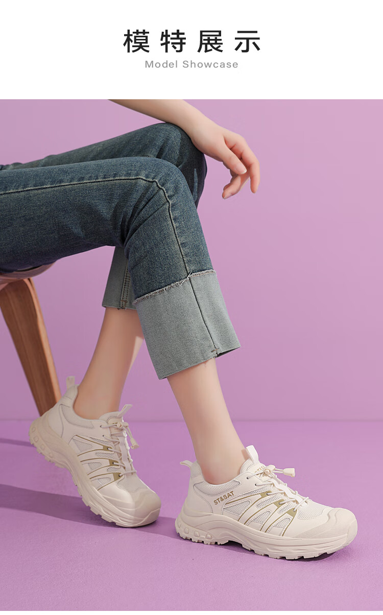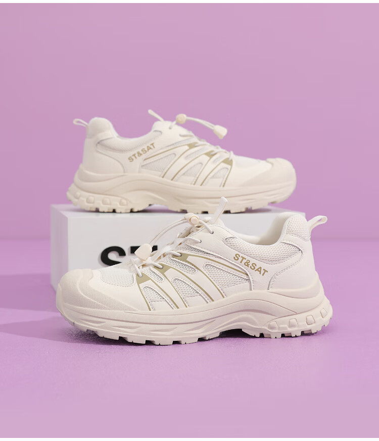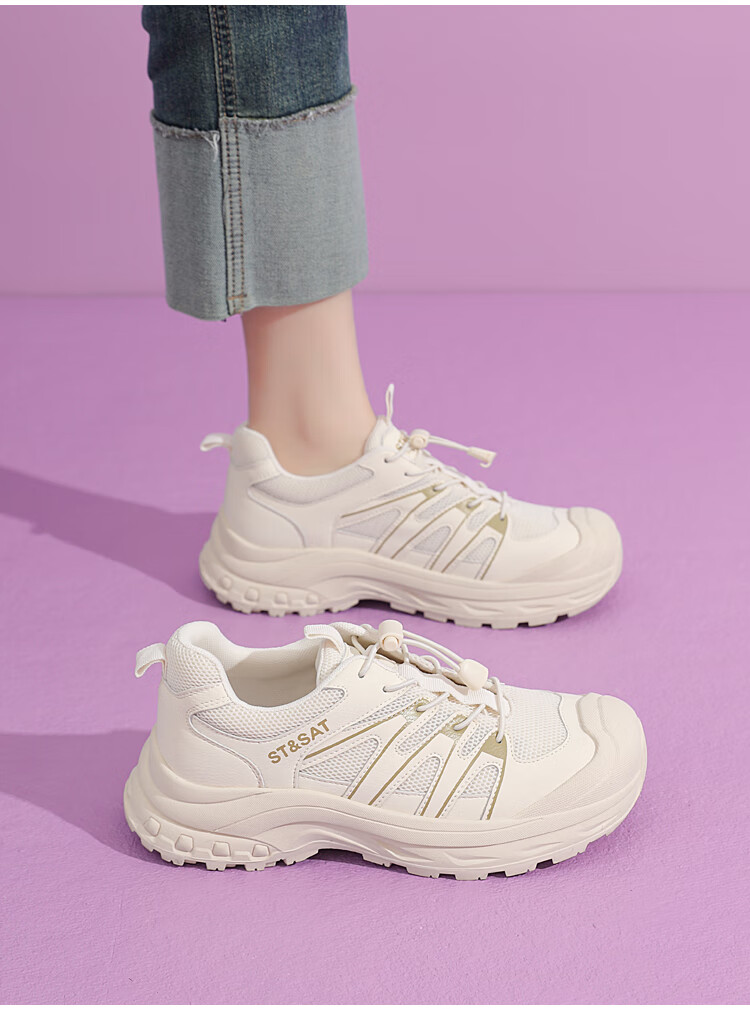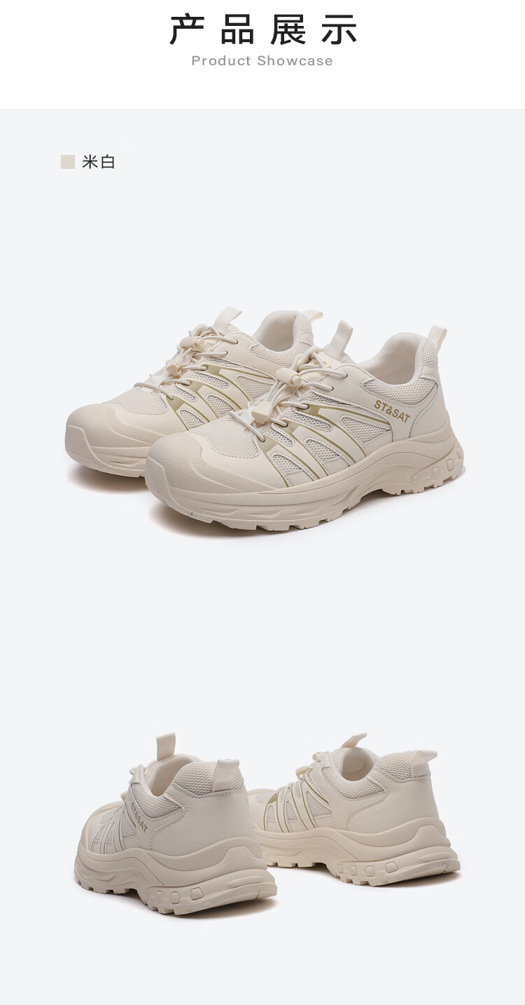 星期六女鞋2025春季新款网面透气运动休闲厚底健步鞋DKSSD1112SQM 米白 35