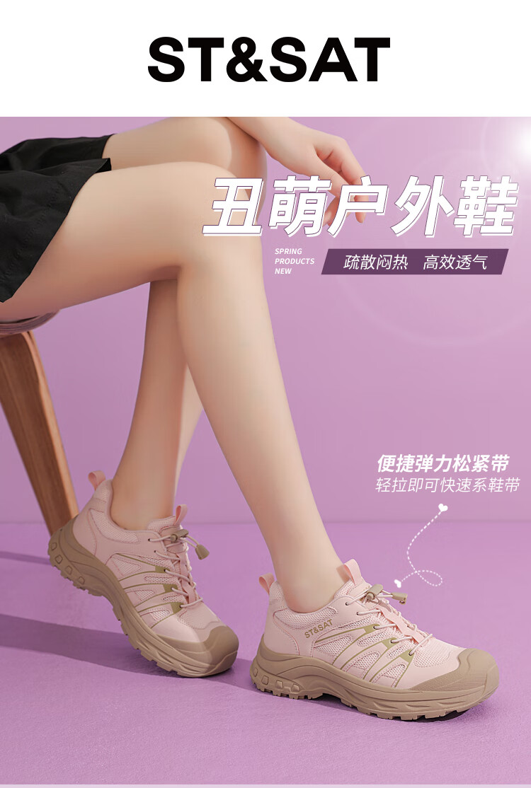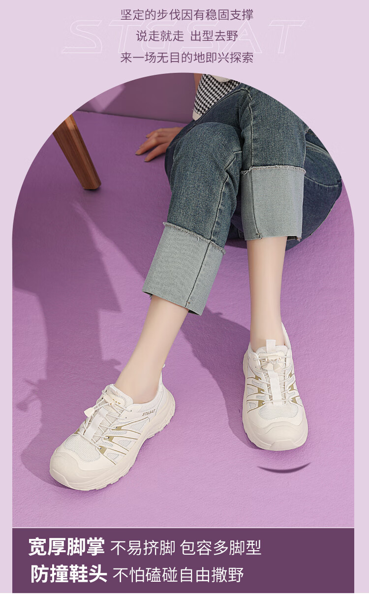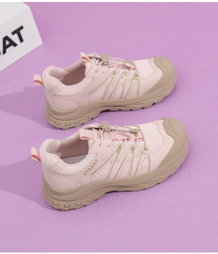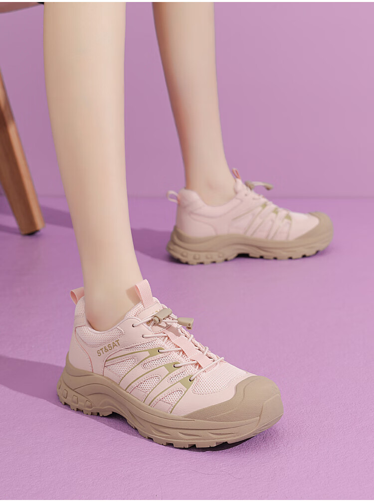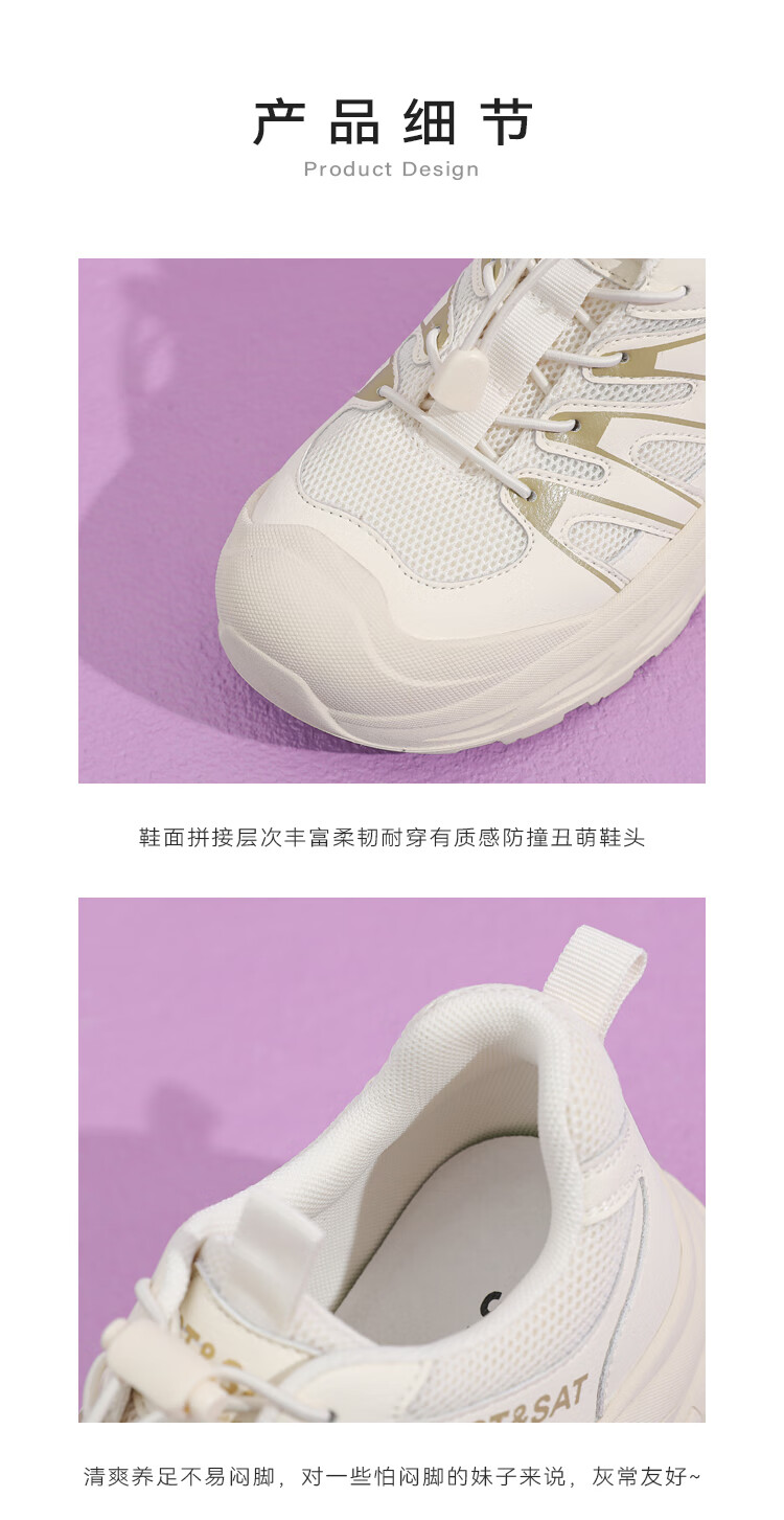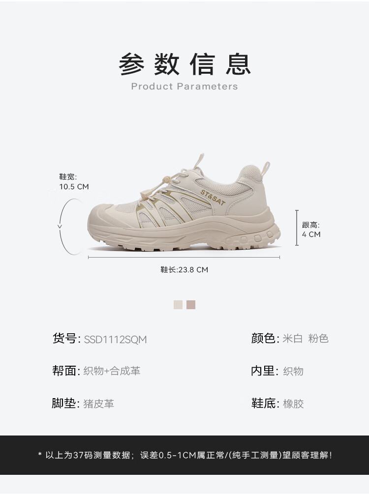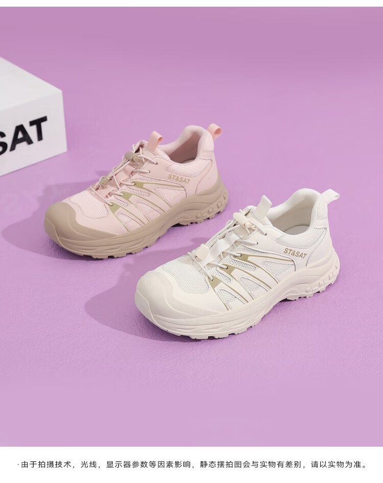 星期六女鞋2025春季新款网面透气运动休闲厚底健步鞋DKSSD1112SQM 米白 35