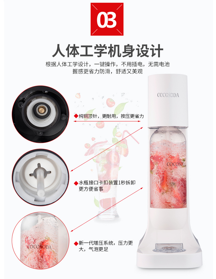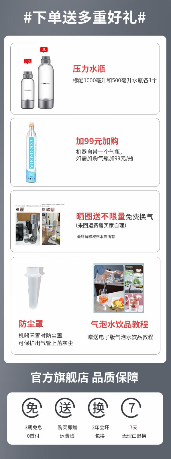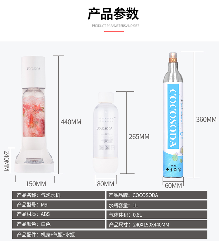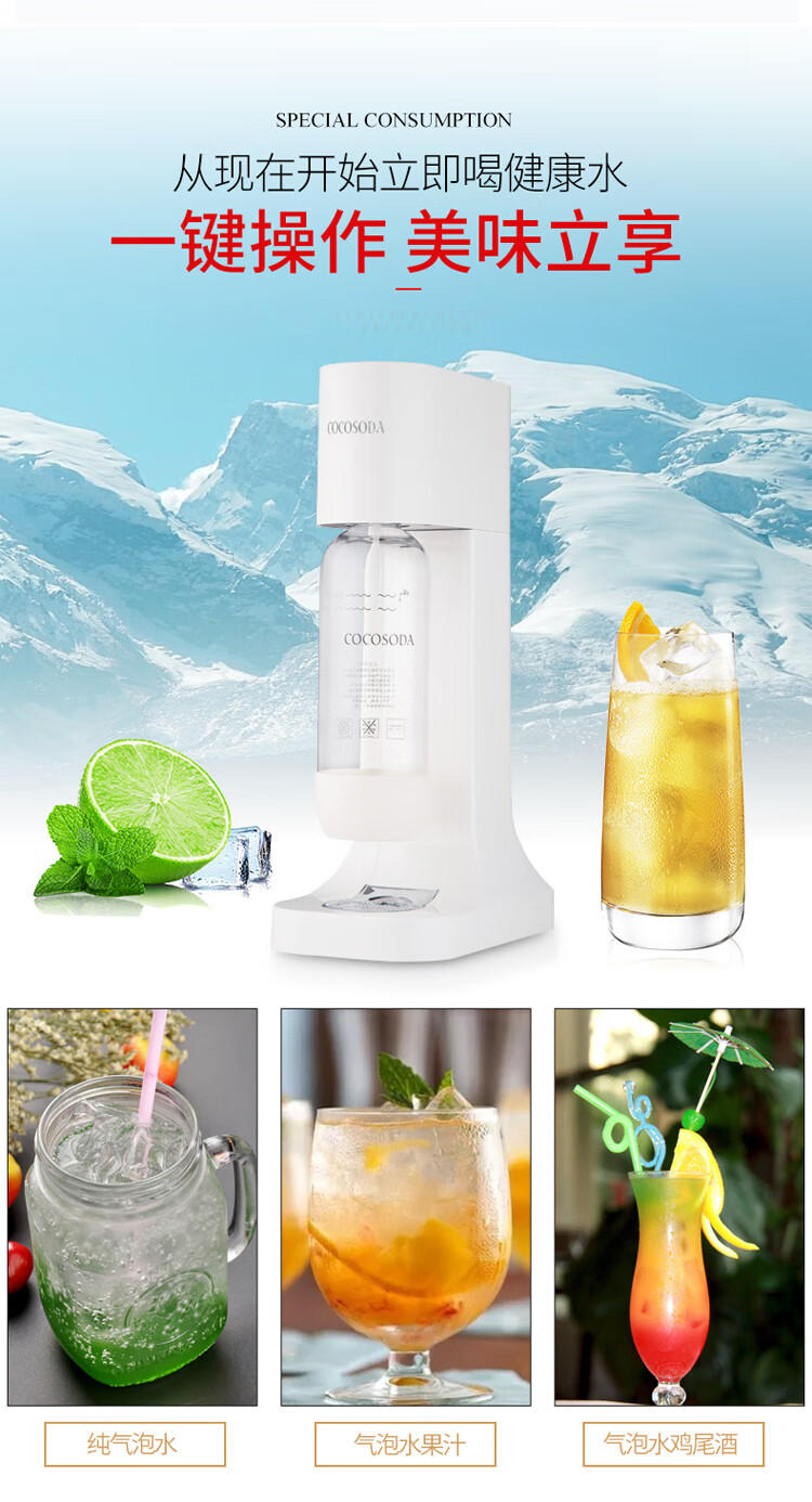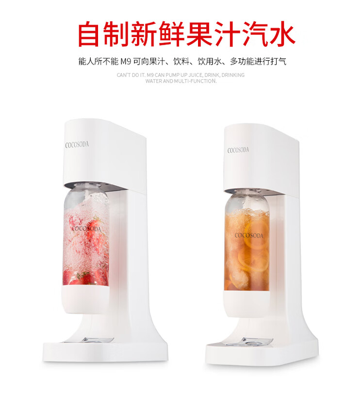 COCOSODA苏打水机家用商用气泡水机气泡机饮料奶茶店台式0热量0脂肪0卡路里 M9白色(配1气瓶、2个水瓶,不锈钢底)