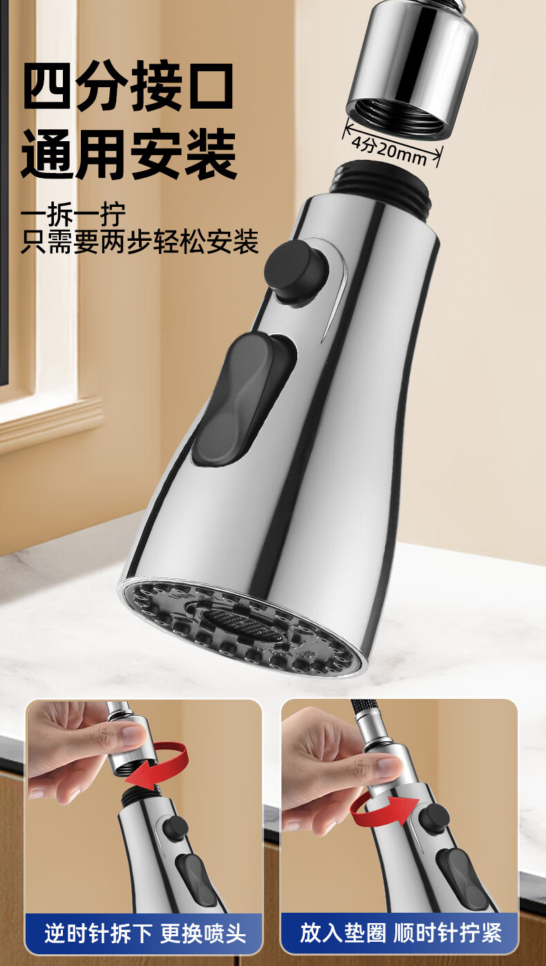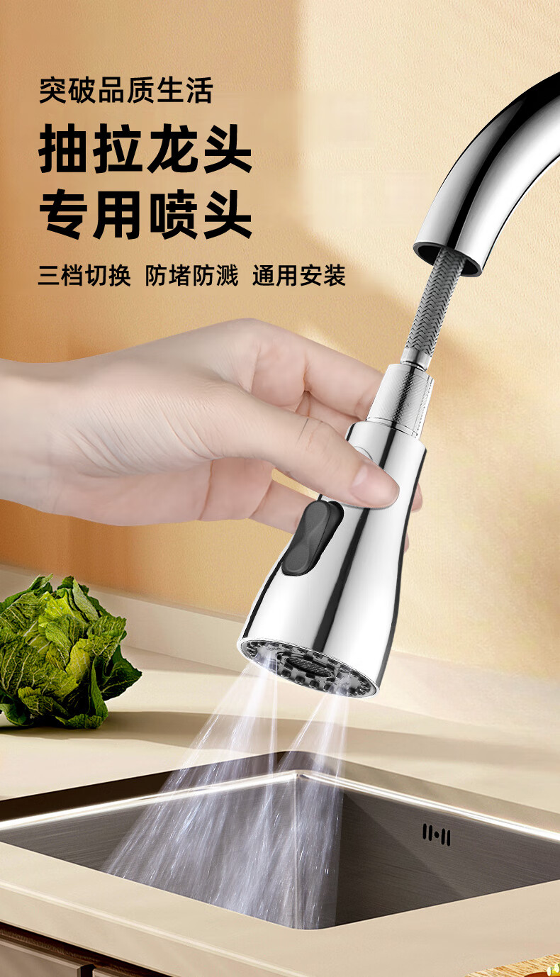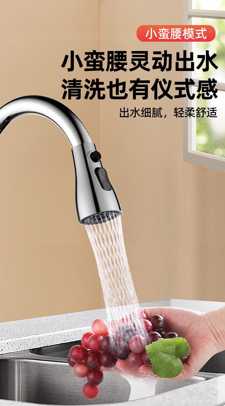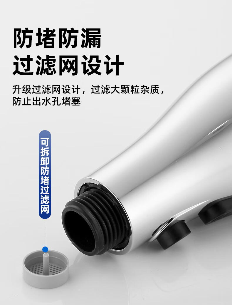 一靓双刀小蛮腰款电镀银厨房抽拉水龙头替换头起泡器水嘴防溅头3239