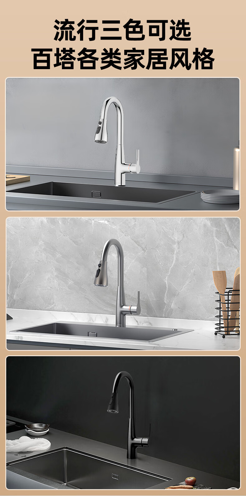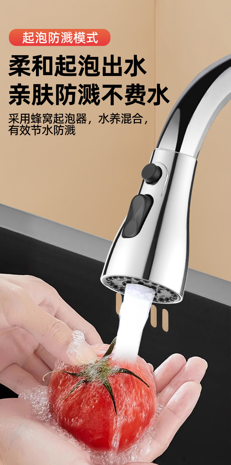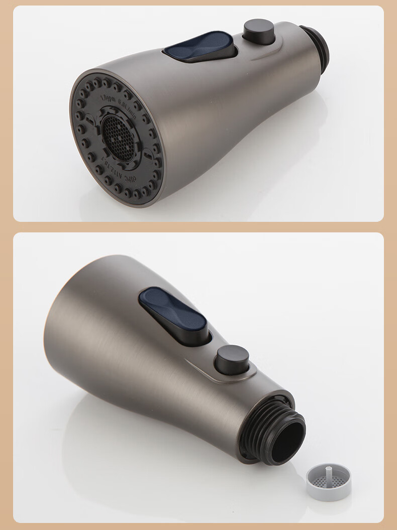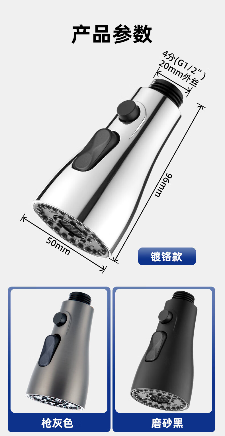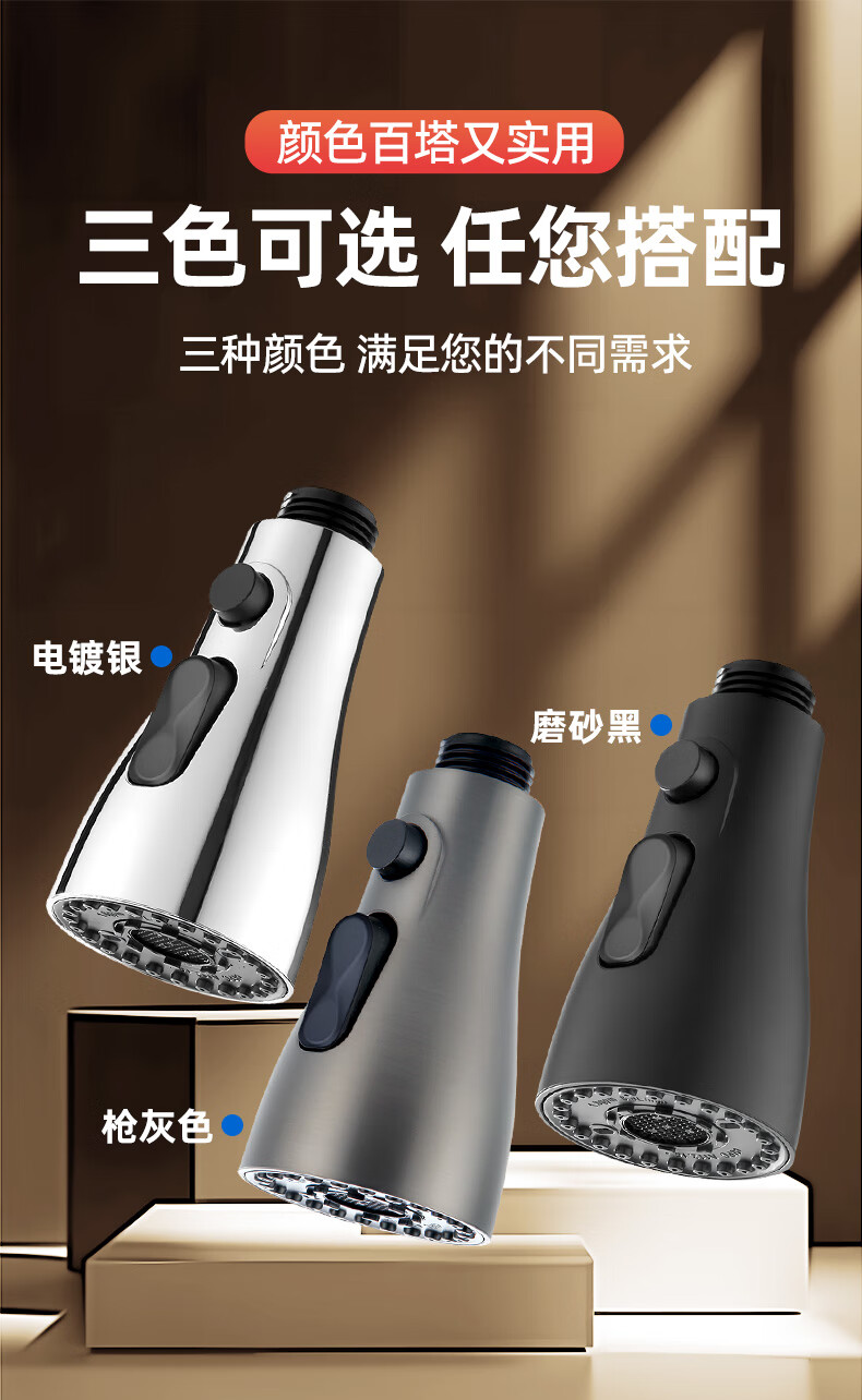 一靓双刀小蛮腰款电镀银厨房抽拉水龙头替换头起泡器水嘴防溅头3239