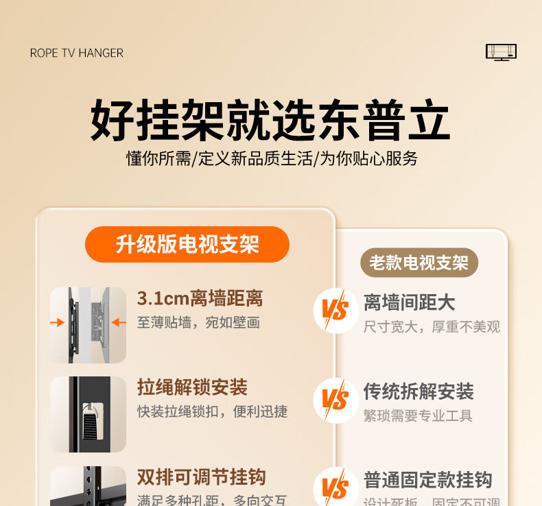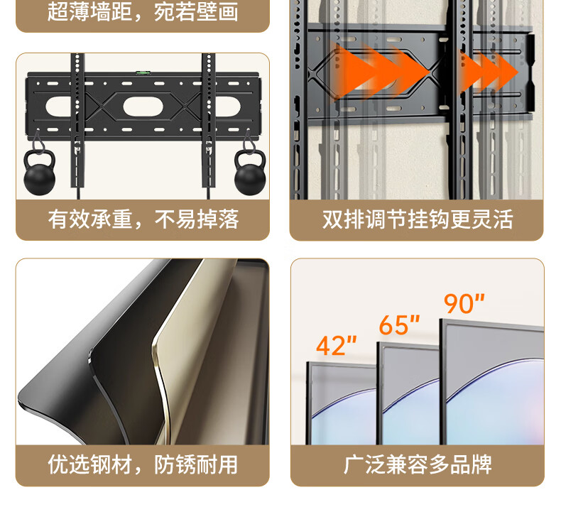 东普立42-90英寸电视机挂架固定电视壁挂架支架适配小米海信创维TCL康佳华为智慧屏等品牌通用电视架