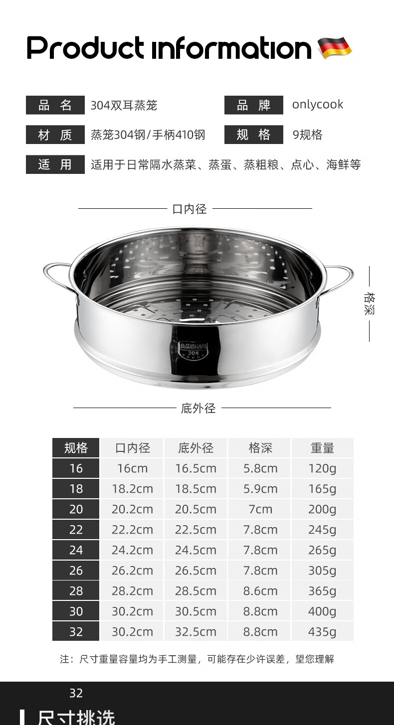 onlycook304不锈钢蒸架蒸笼辅食奶锅小蒸格蒸锅笼屉电饭锅蒸包子-28cm