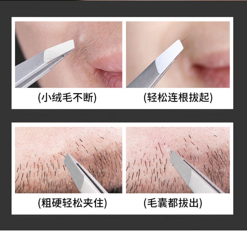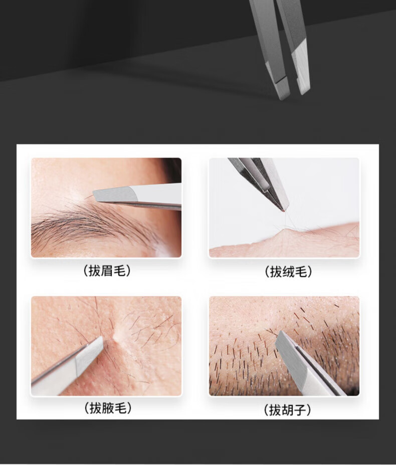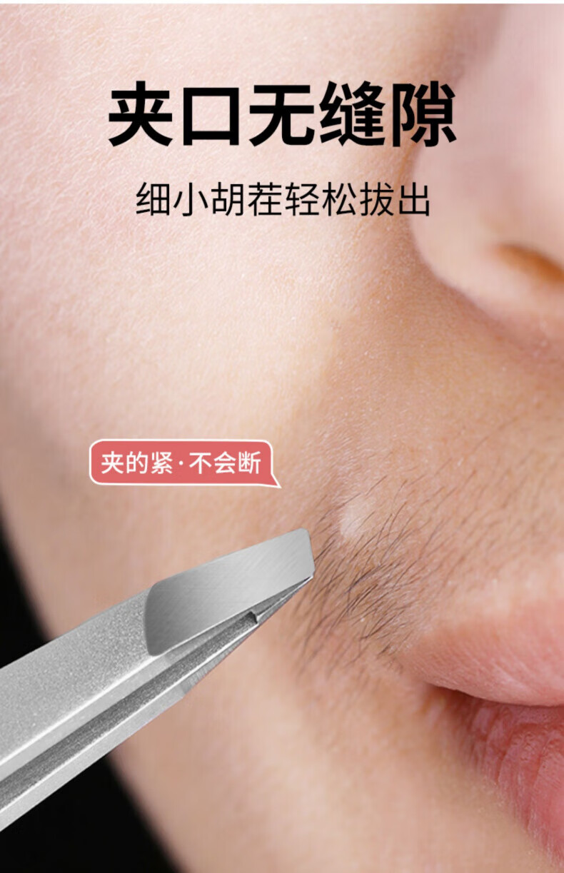 AILUKI日本拔胡子男士夹胡须专用镊子不锈钢睫毛捏子眉毛夹拔毛钳刮毛刀 平口镊子【赠便携收纳盒】