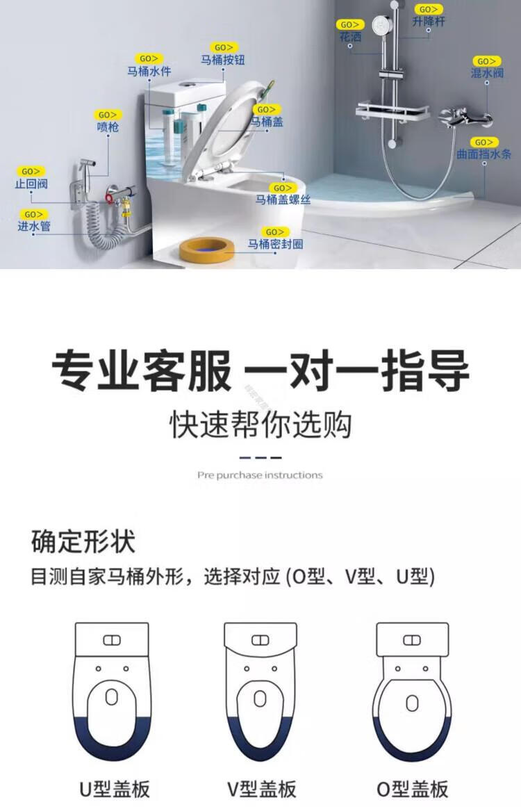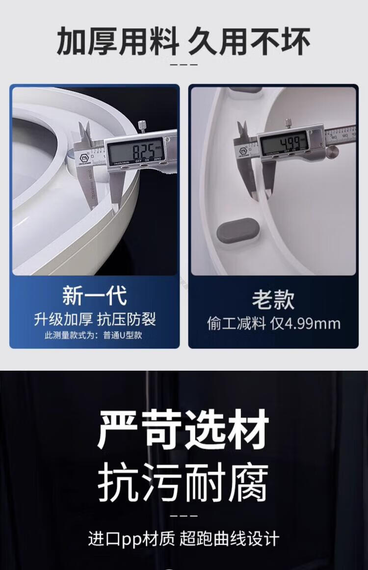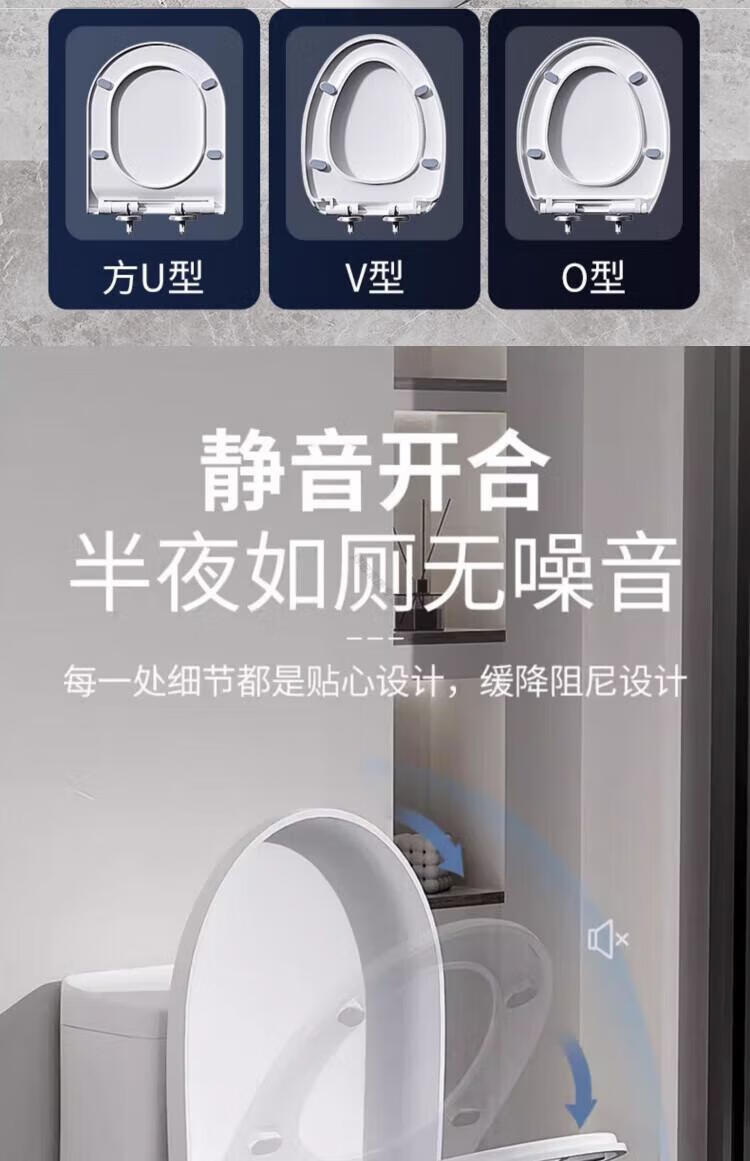 德国马桶盖通用坐便器盖加厚老式马桶圈U型V型座便配件坐垫圈盖 【一键式U型】加厚双重抗断