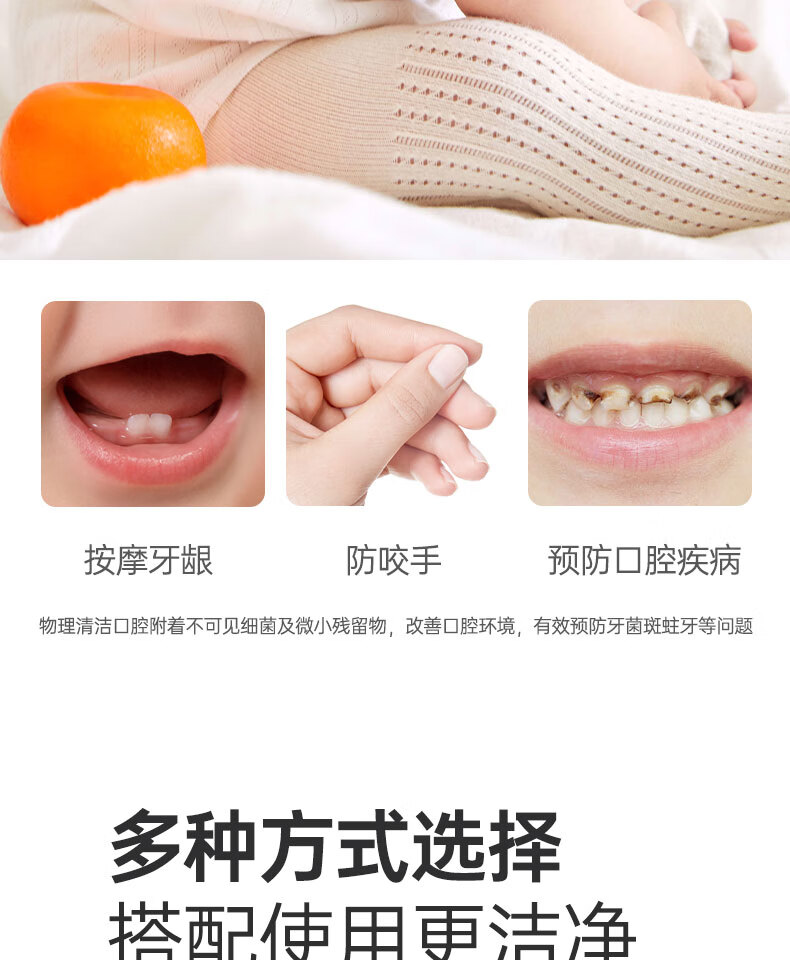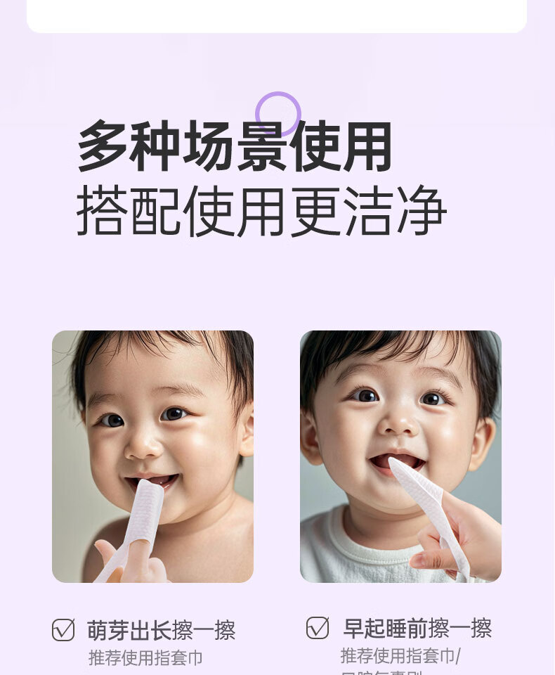 AILUKI日本婴儿口腔清洁指套牙刷干手指套巾纱布宝宝棉棒舌苔清洁 干指套2盒【120片独立包装】