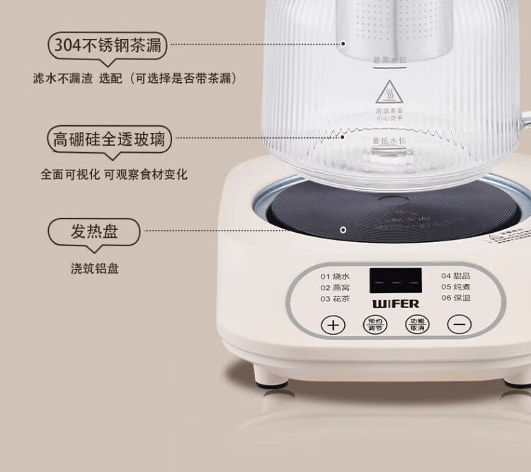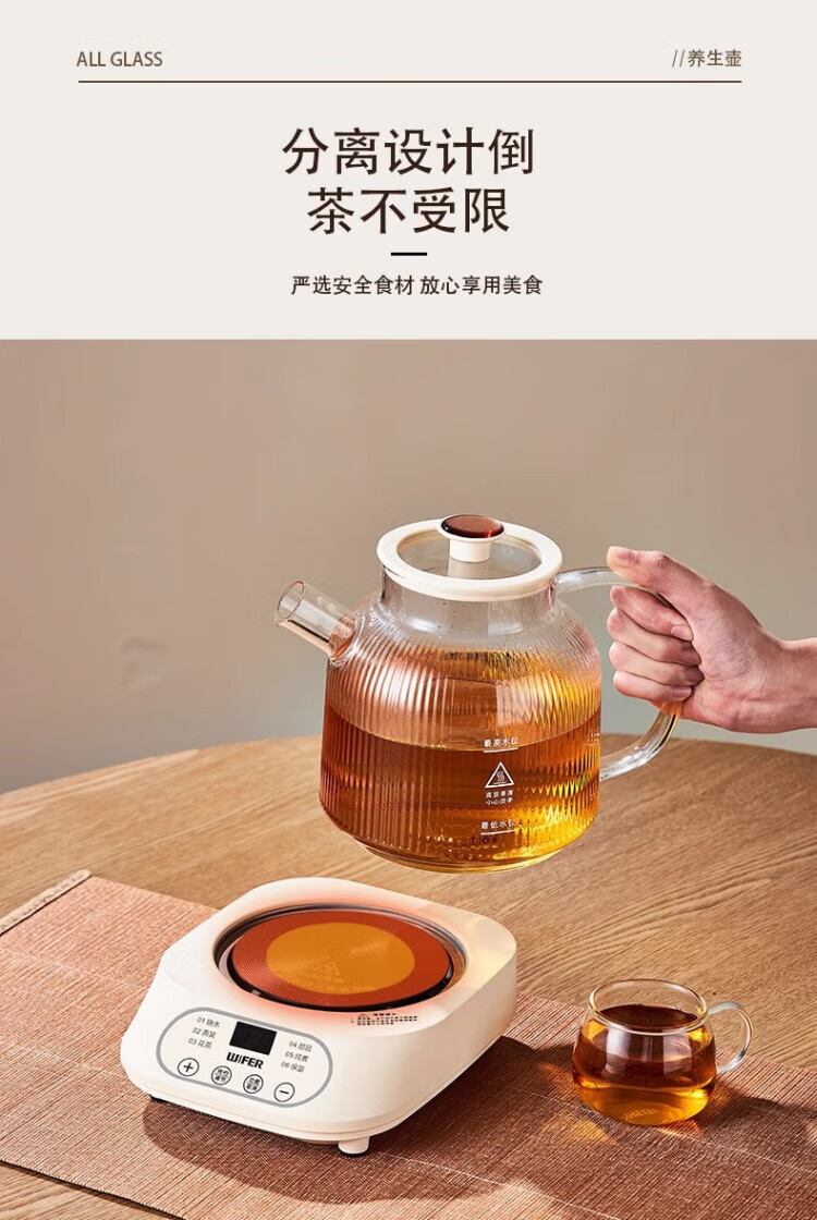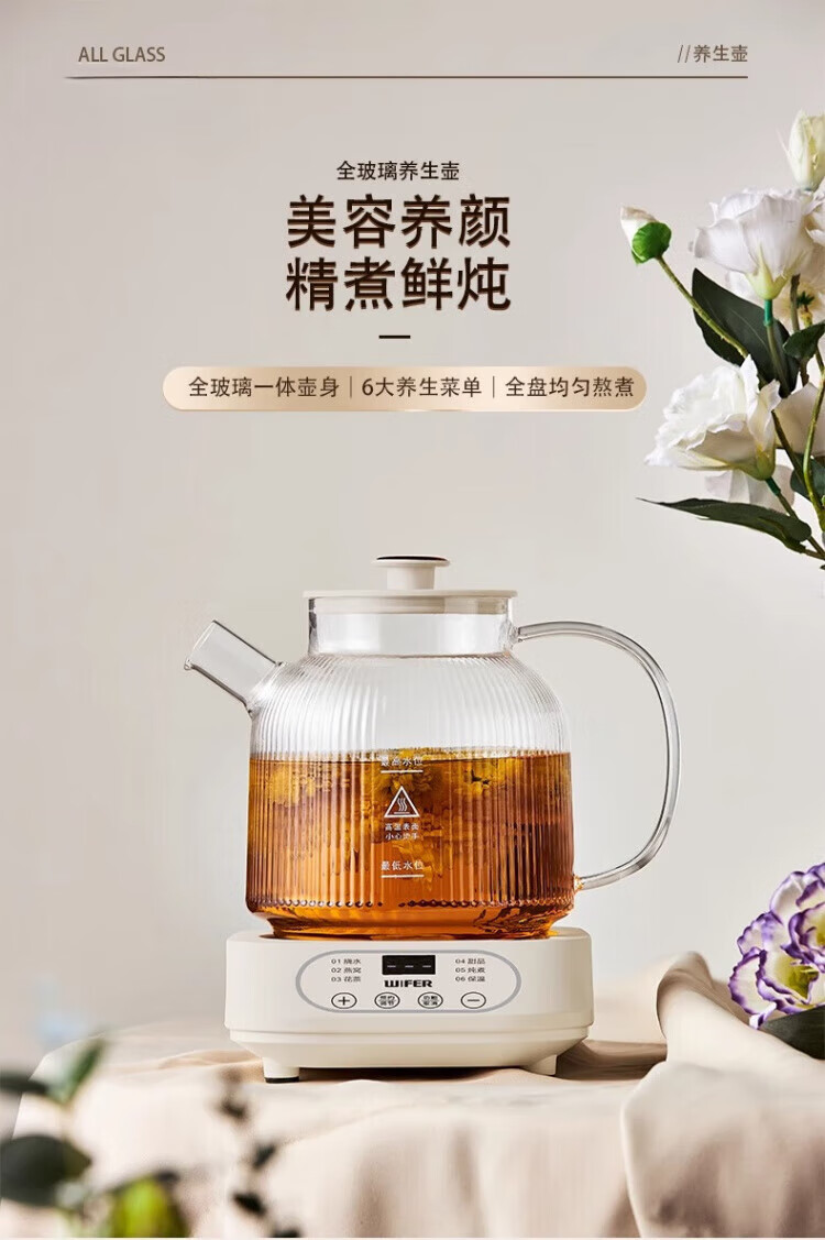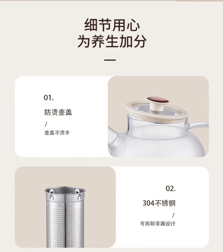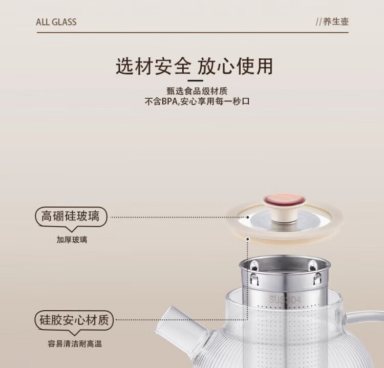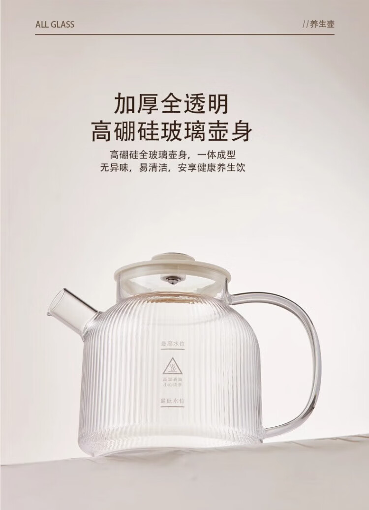 JFHSBS德国2025新款纯玻璃养生壶炖煮一体煮茶壶办公室小型多功能烧水壶 1L 壶+茶滤