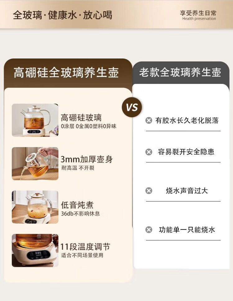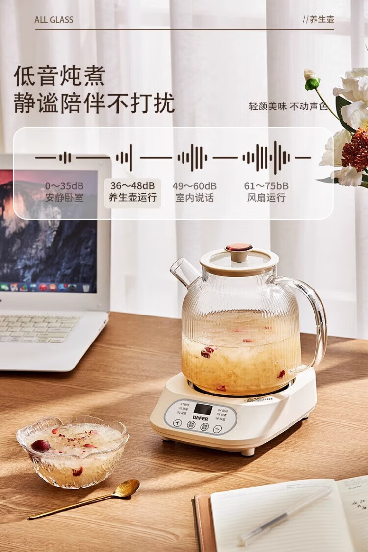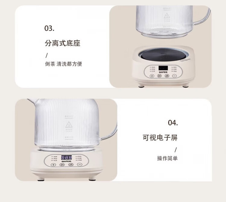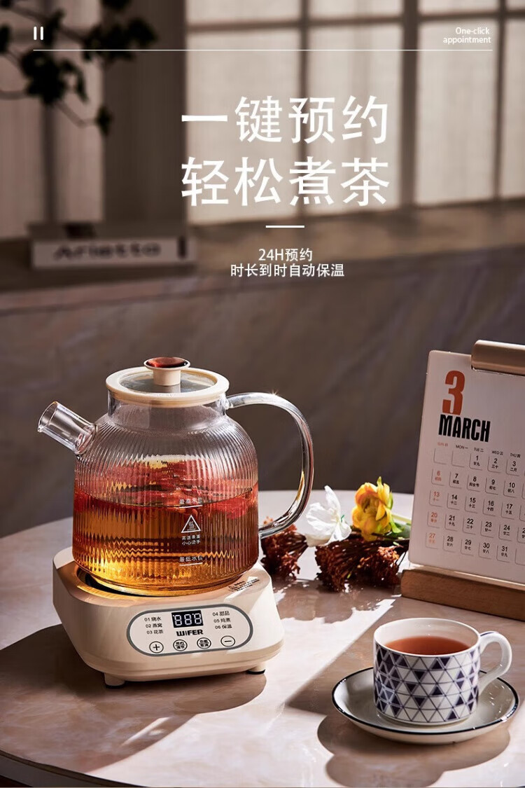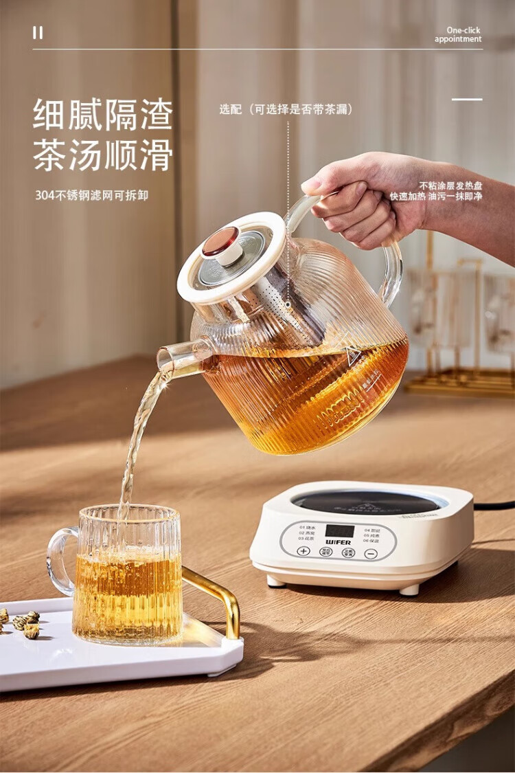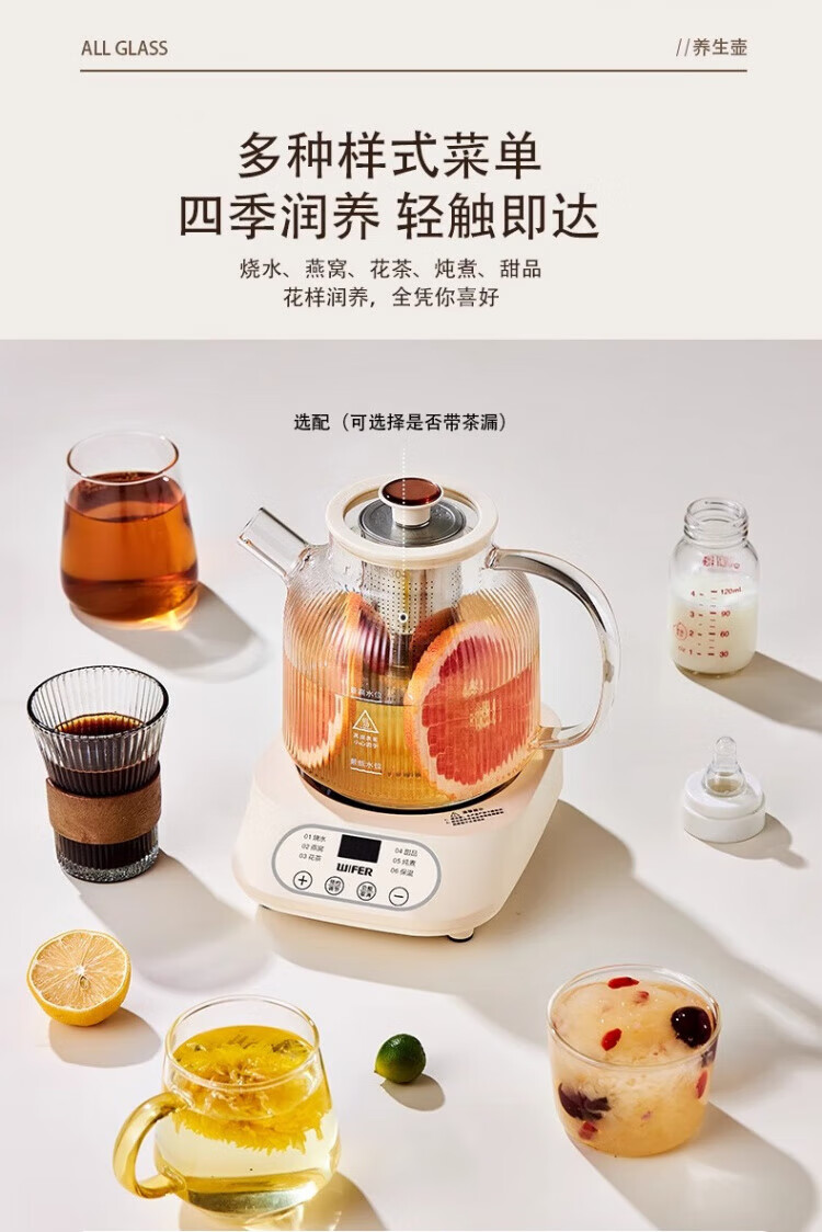 JFHSBS德国2025新款纯玻璃养生壶炖煮一体煮茶壶办公室小型多功能烧水壶 1L 壶+茶滤