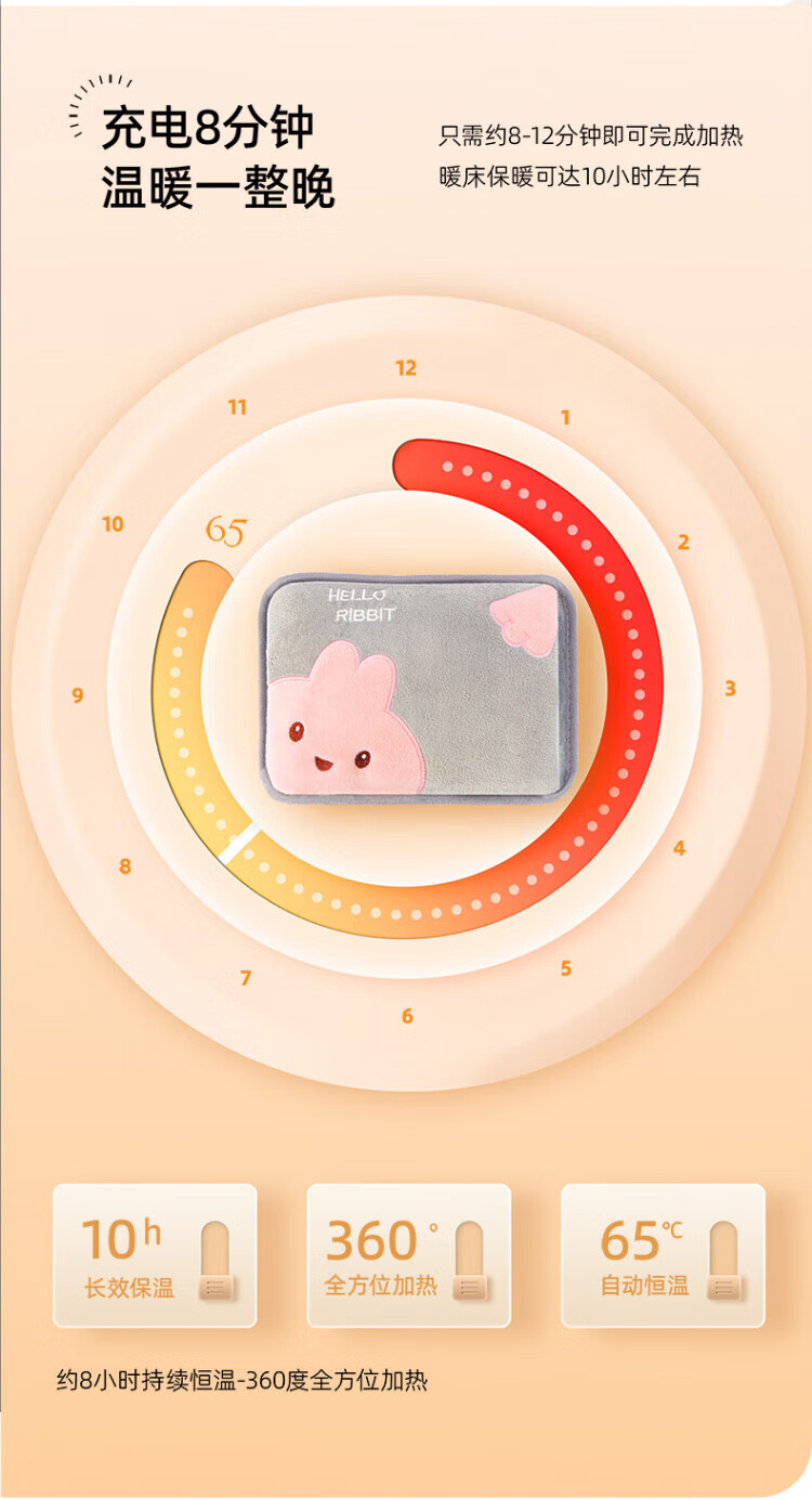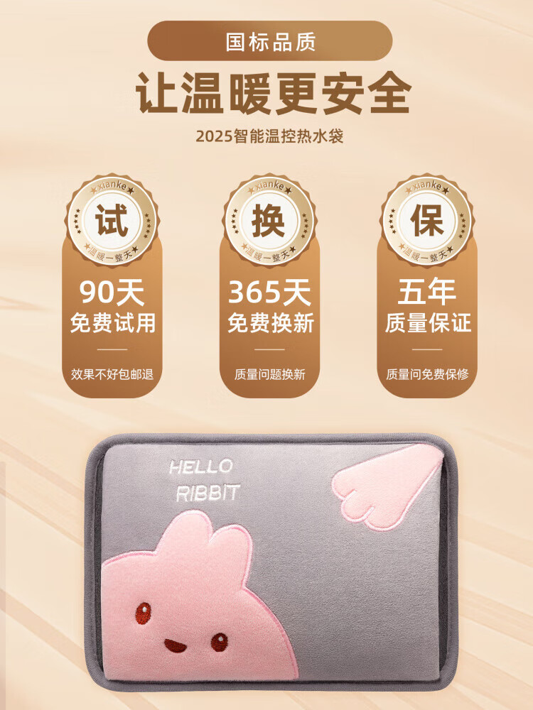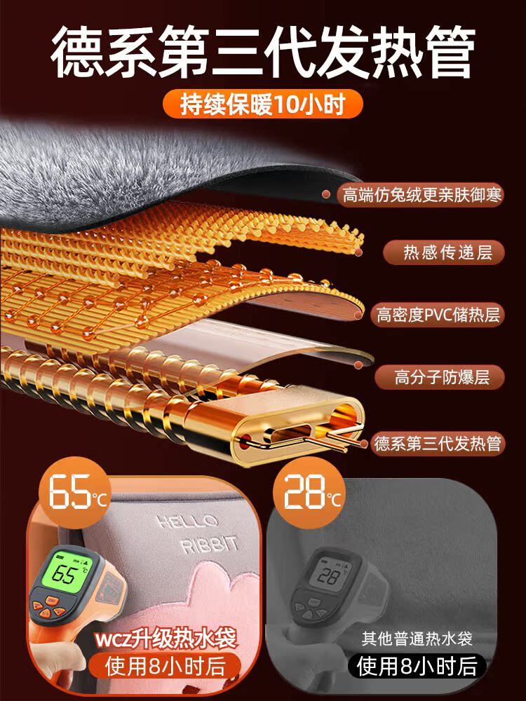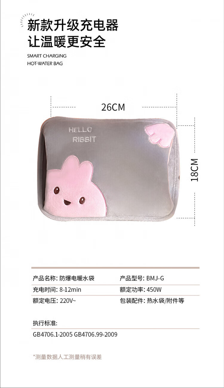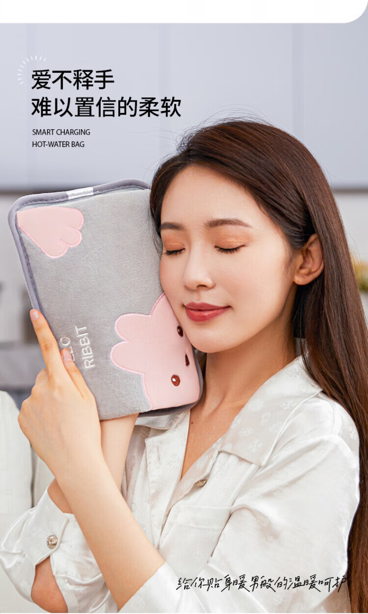 WCZ德国热水袋充电暖手袋可爱暖手宝煖宝宝电暖宝2025新款热敷电 可拆洗-龙猫灰色-兔毛暖绒智能