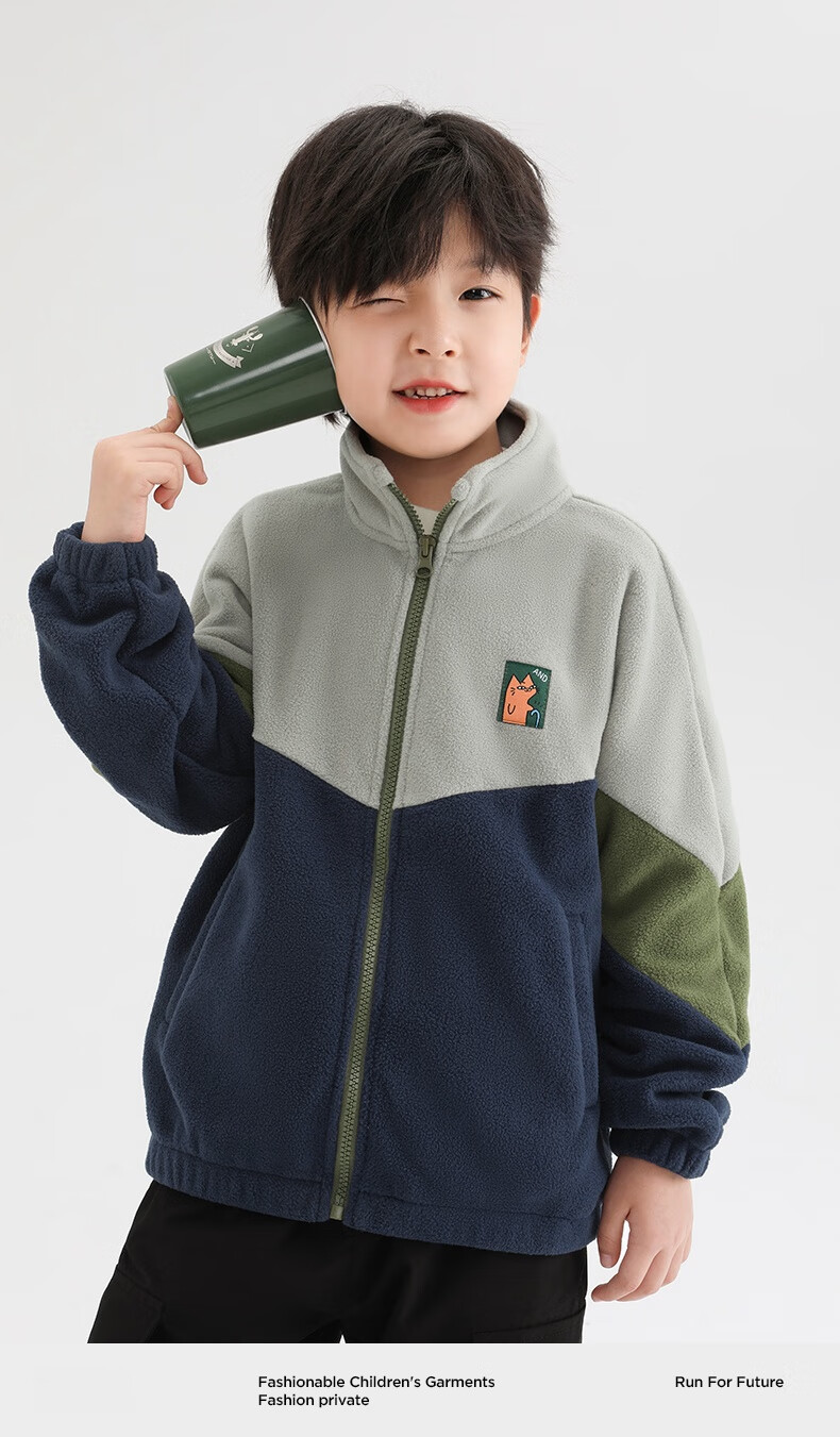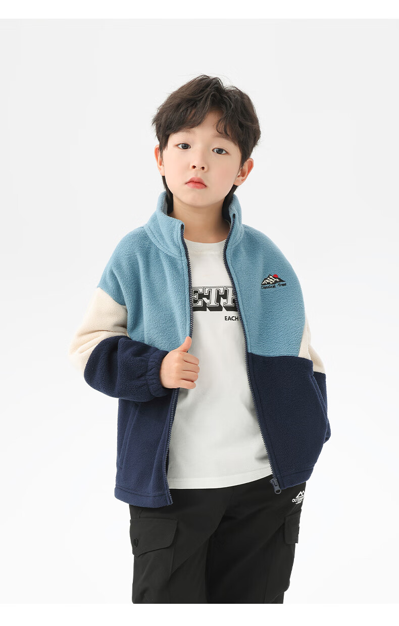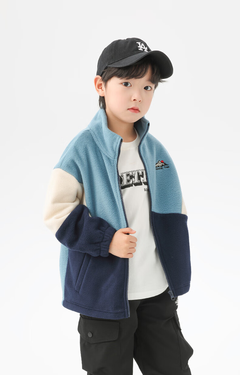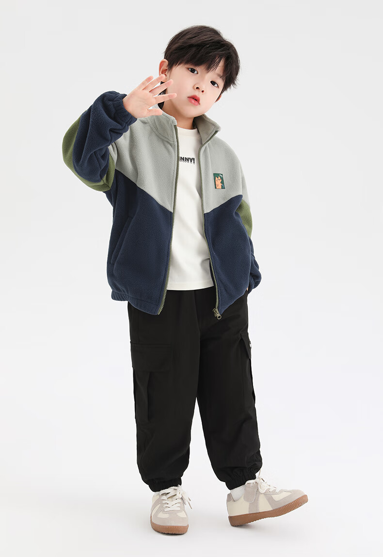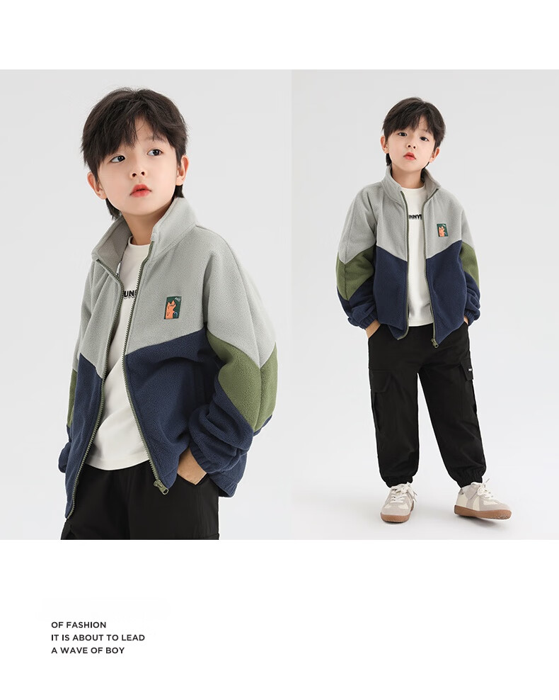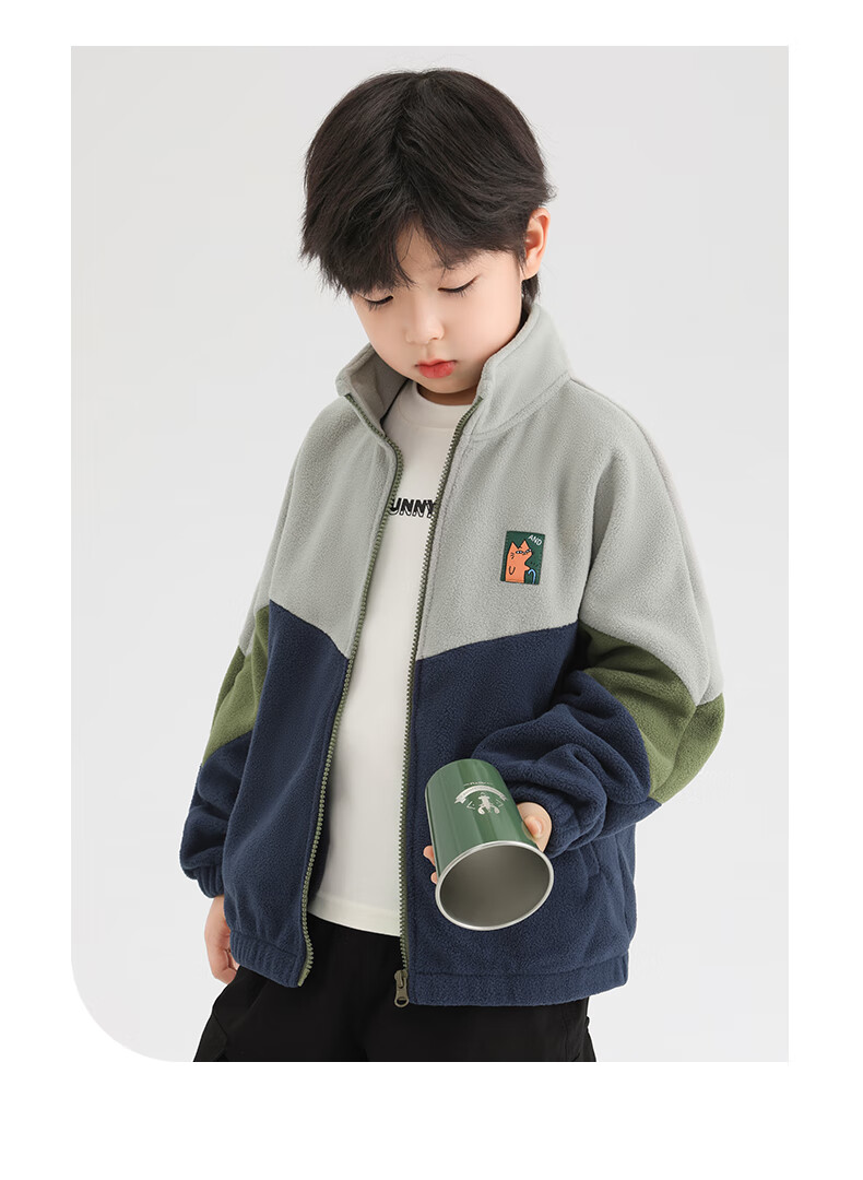 小猪班纳男童多色拼接韩版奥粒绒外套中小童装撞色开衫拉链立领夹克潮 藏青/叶绿/锌灰 130 建议身高120-130cm