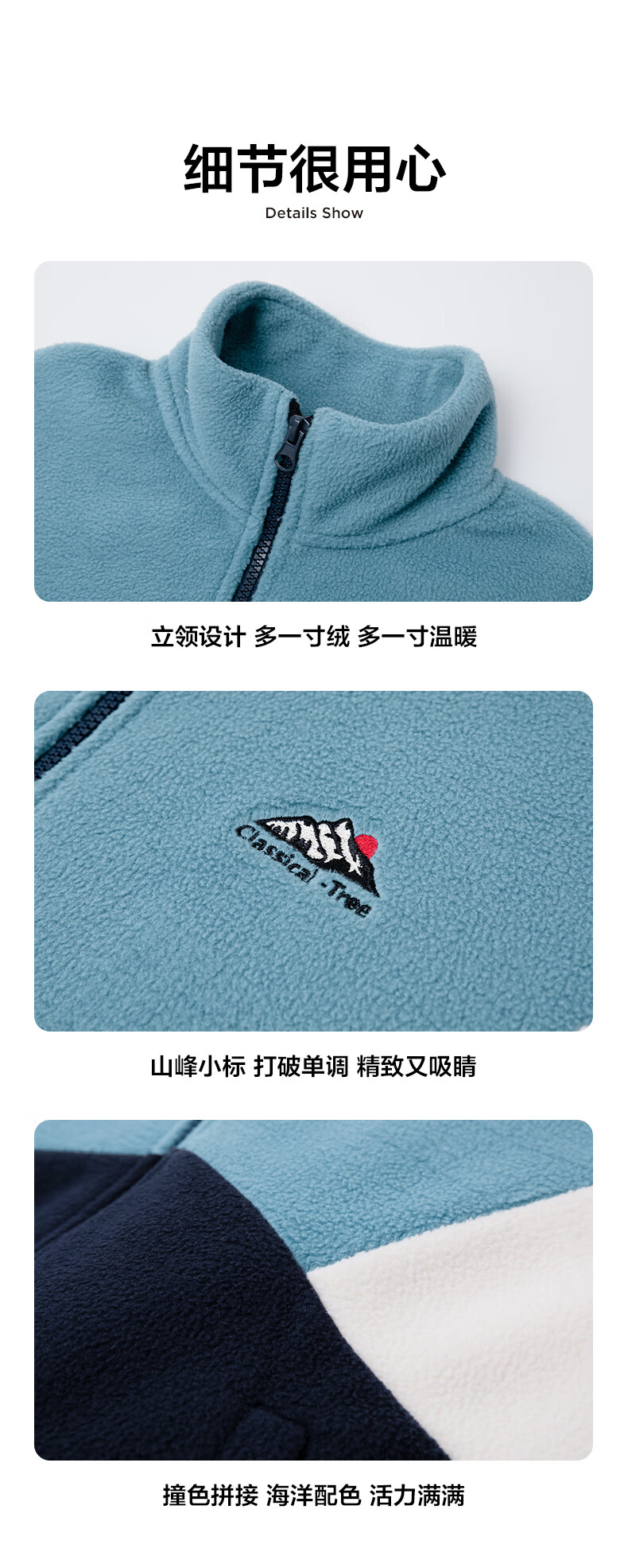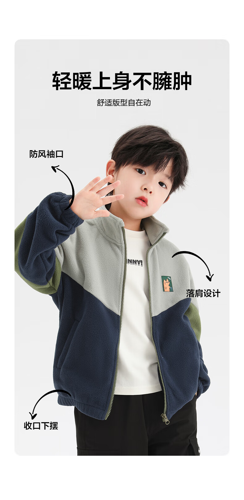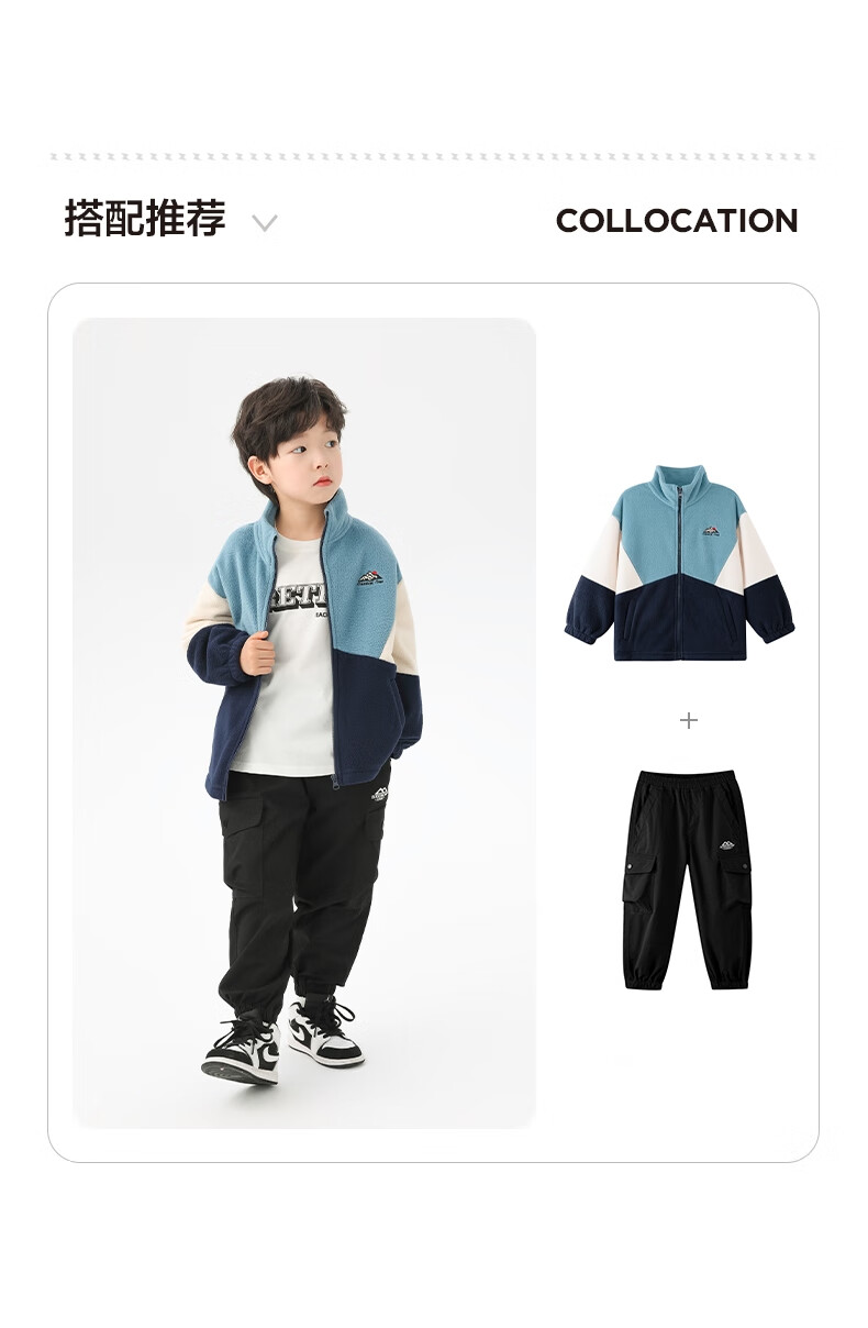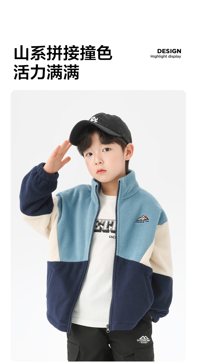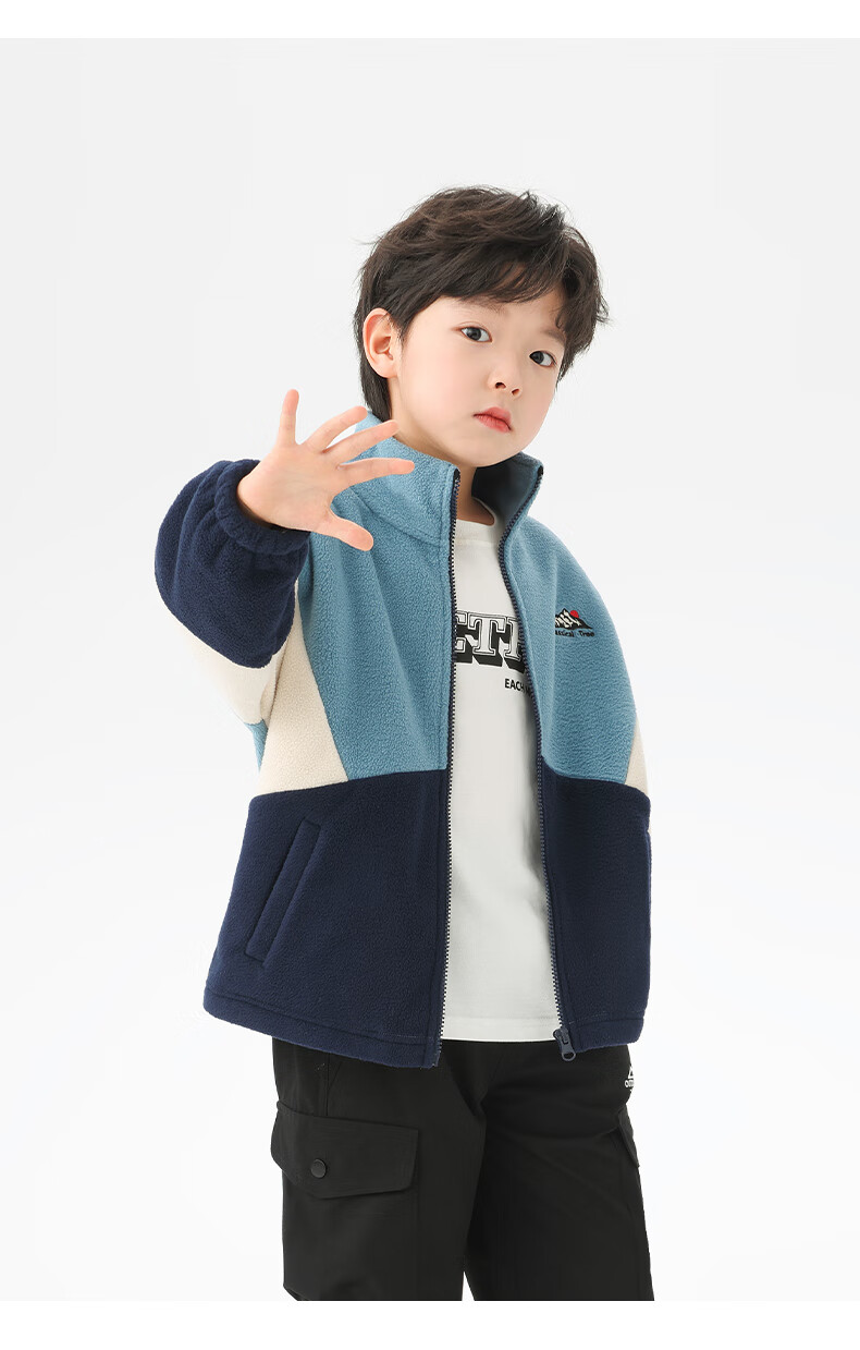 小猪班纳男童多色拼接韩版奥粒绒外套中小童装撞色开衫拉链立领夹克潮 藏青/叶绿/锌灰 130 建议身高120-130cm