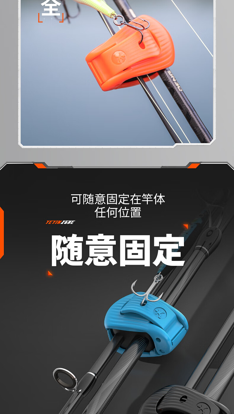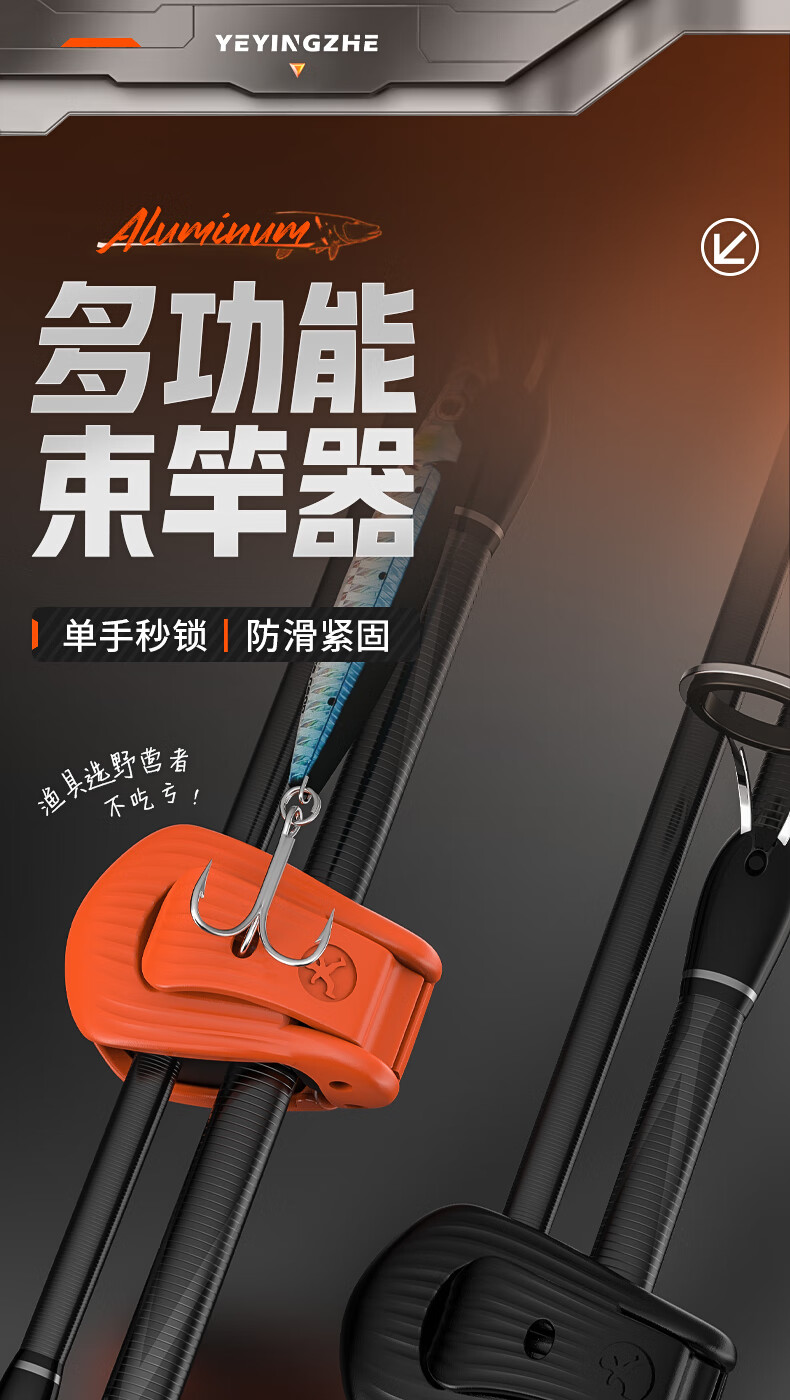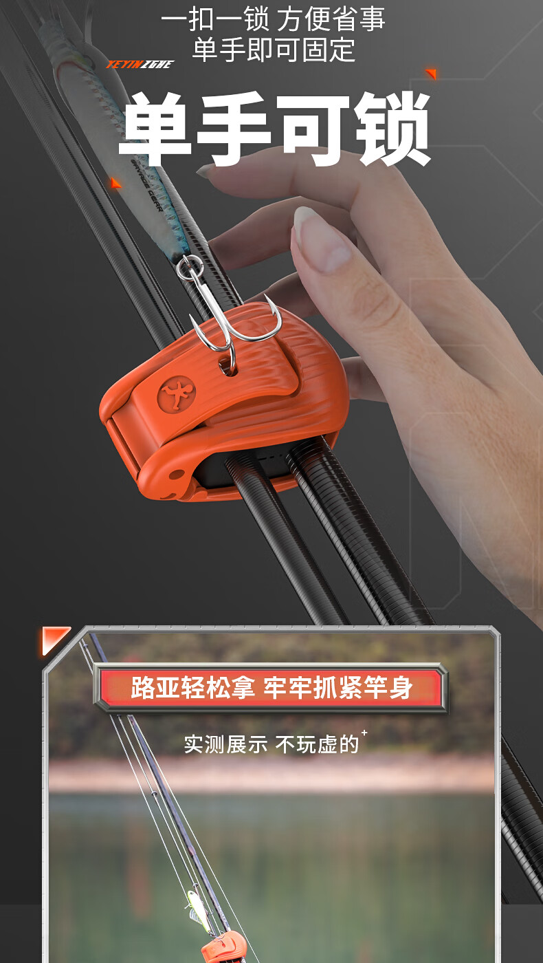 野营者路亚竿收纳神器束竿器挂钩束杆器束竿夹筏竿鱼竿捆绑固定器 黑色【升级挂钩款】4个装