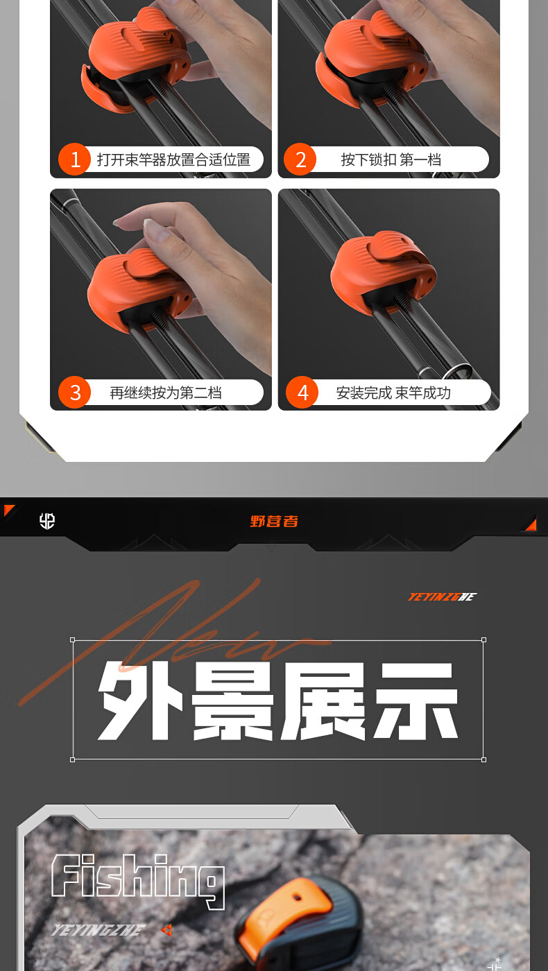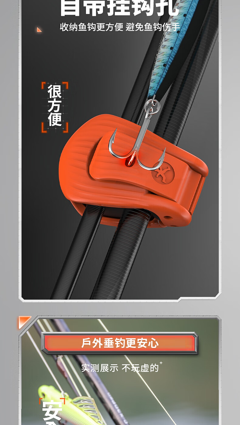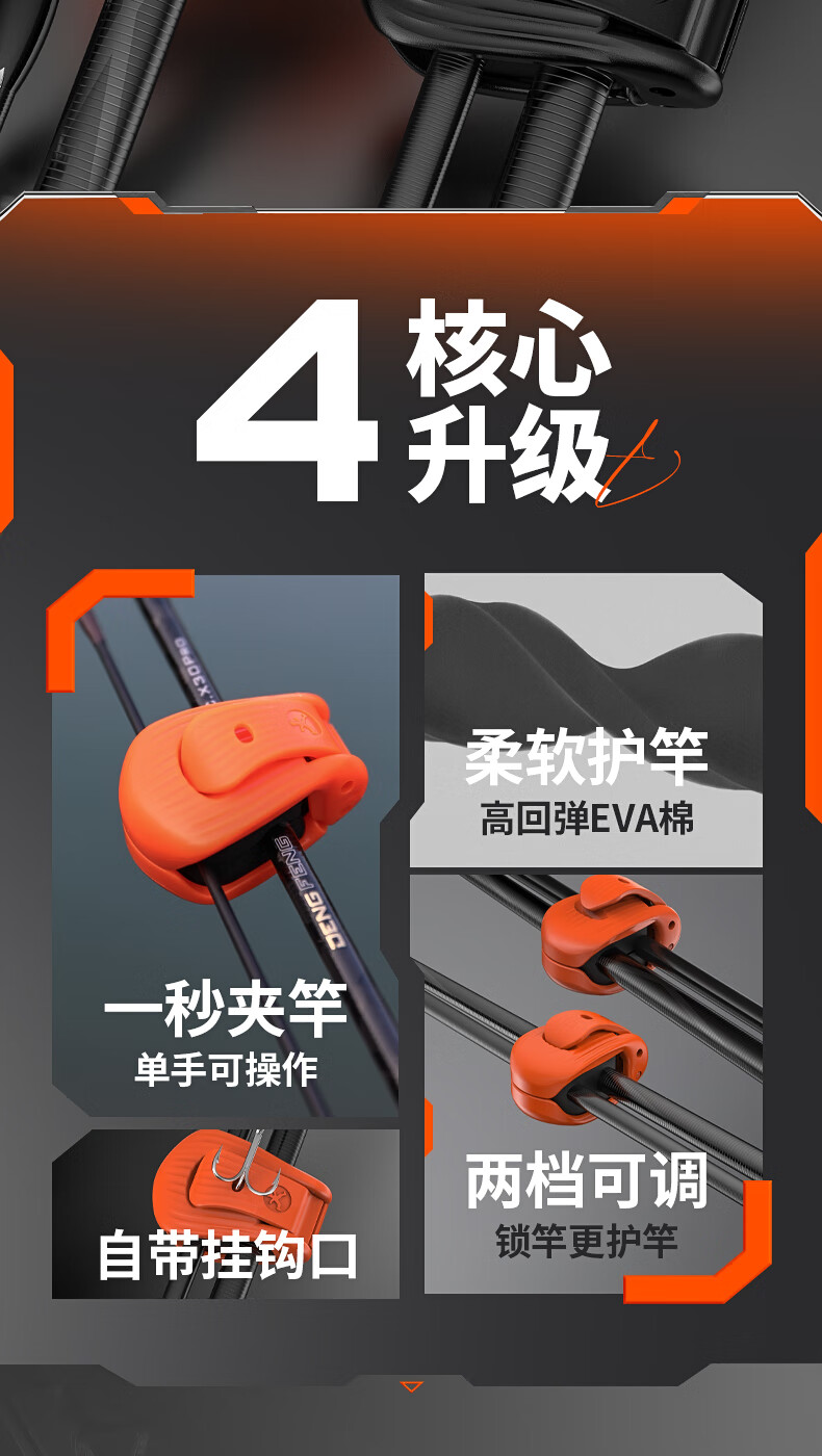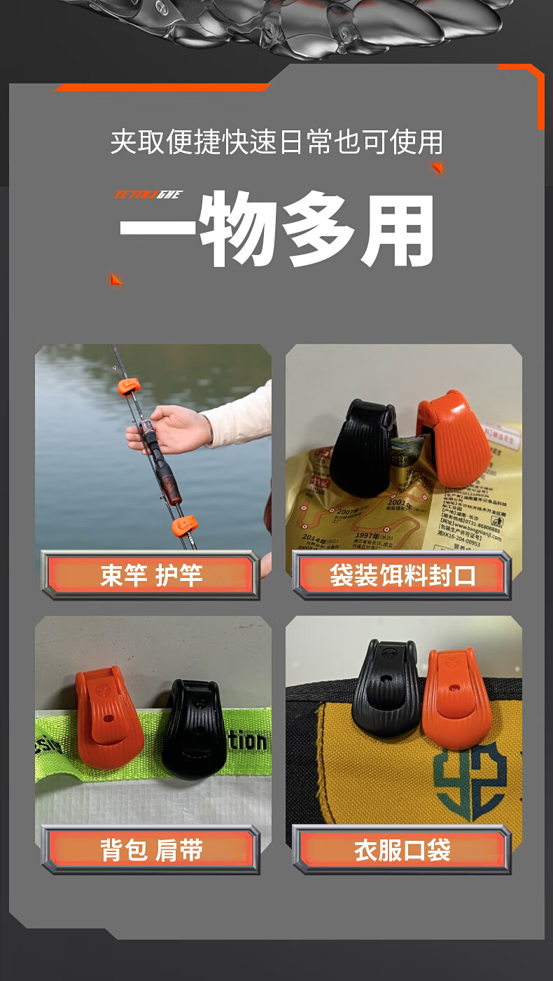 野营者路亚竿收纳神器束竿器挂钩束杆器束竿夹筏竿鱼竿捆绑固定器 黑色【升级挂钩款】4个装