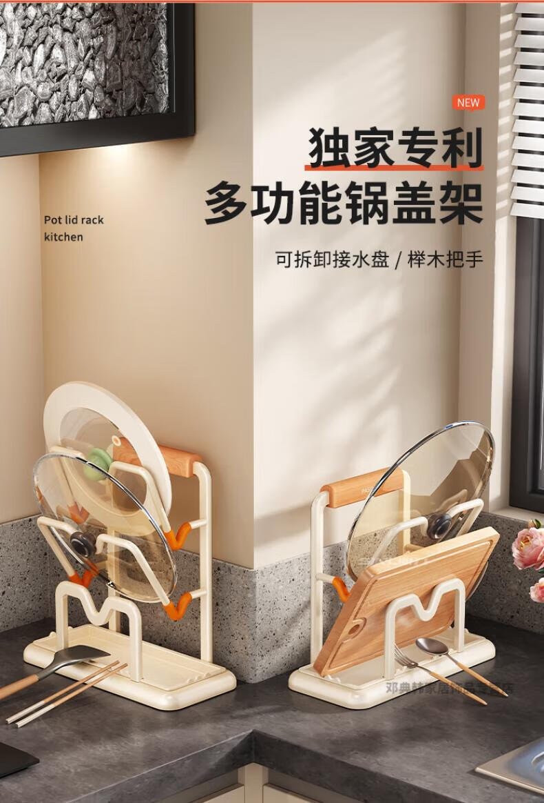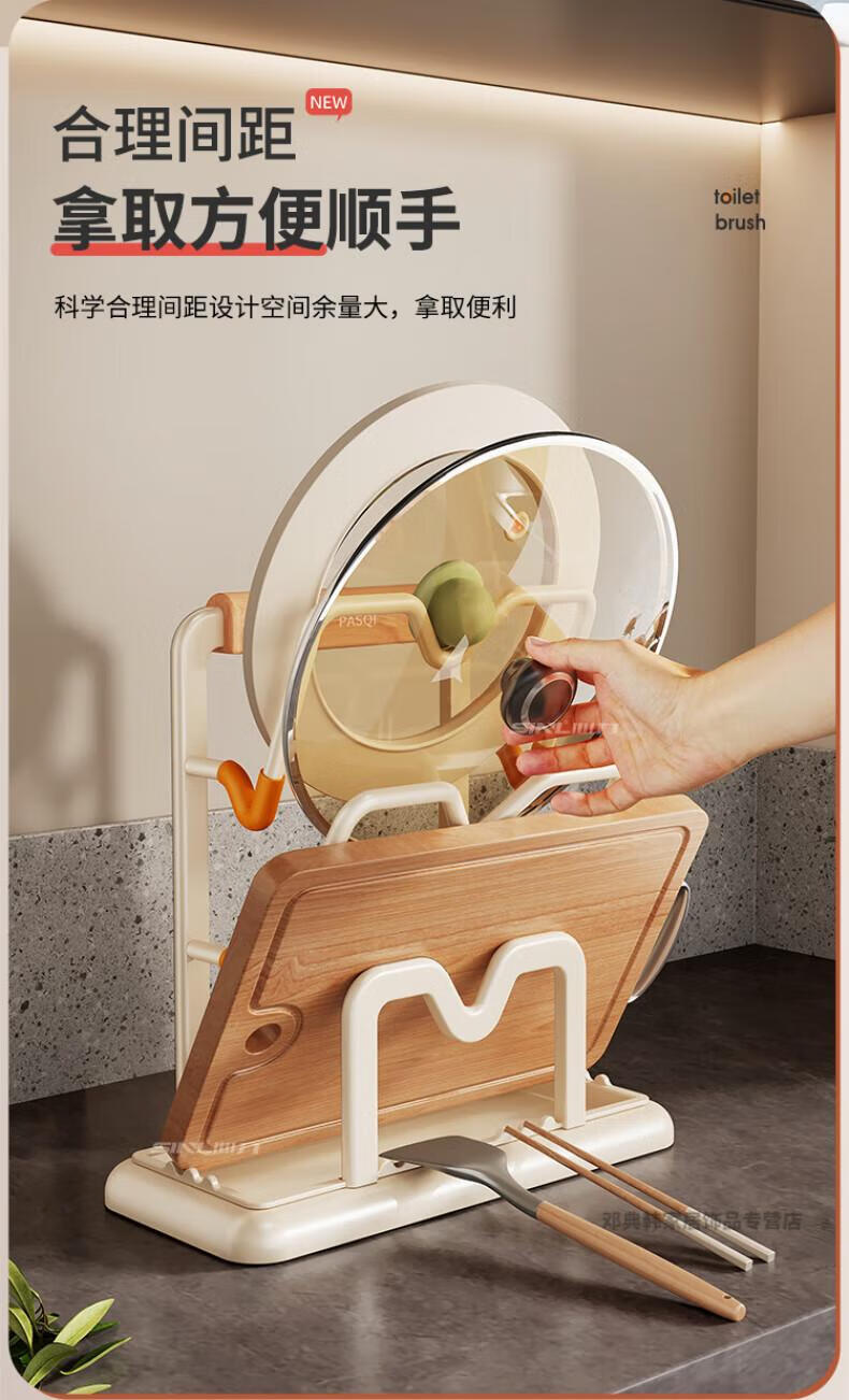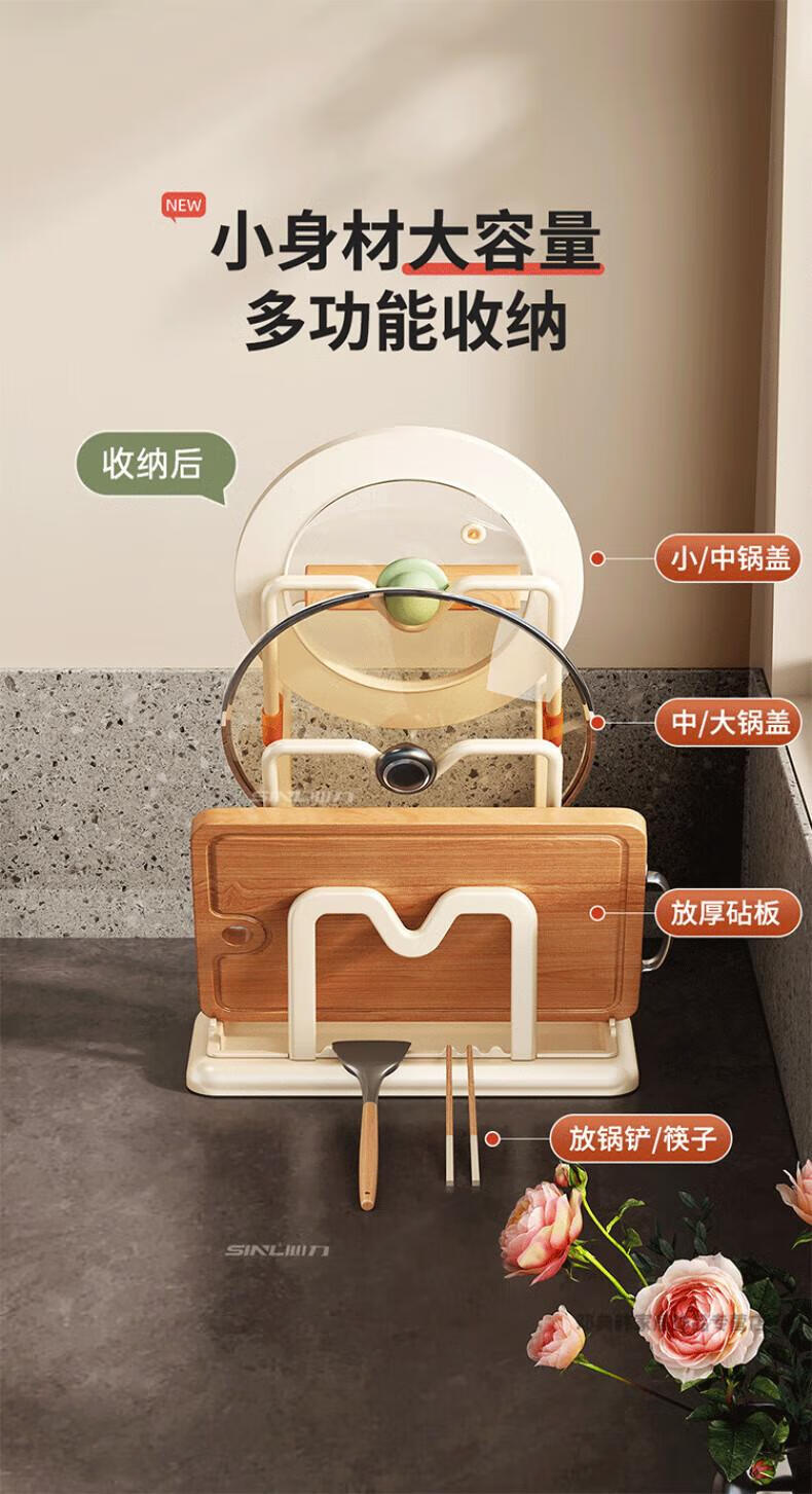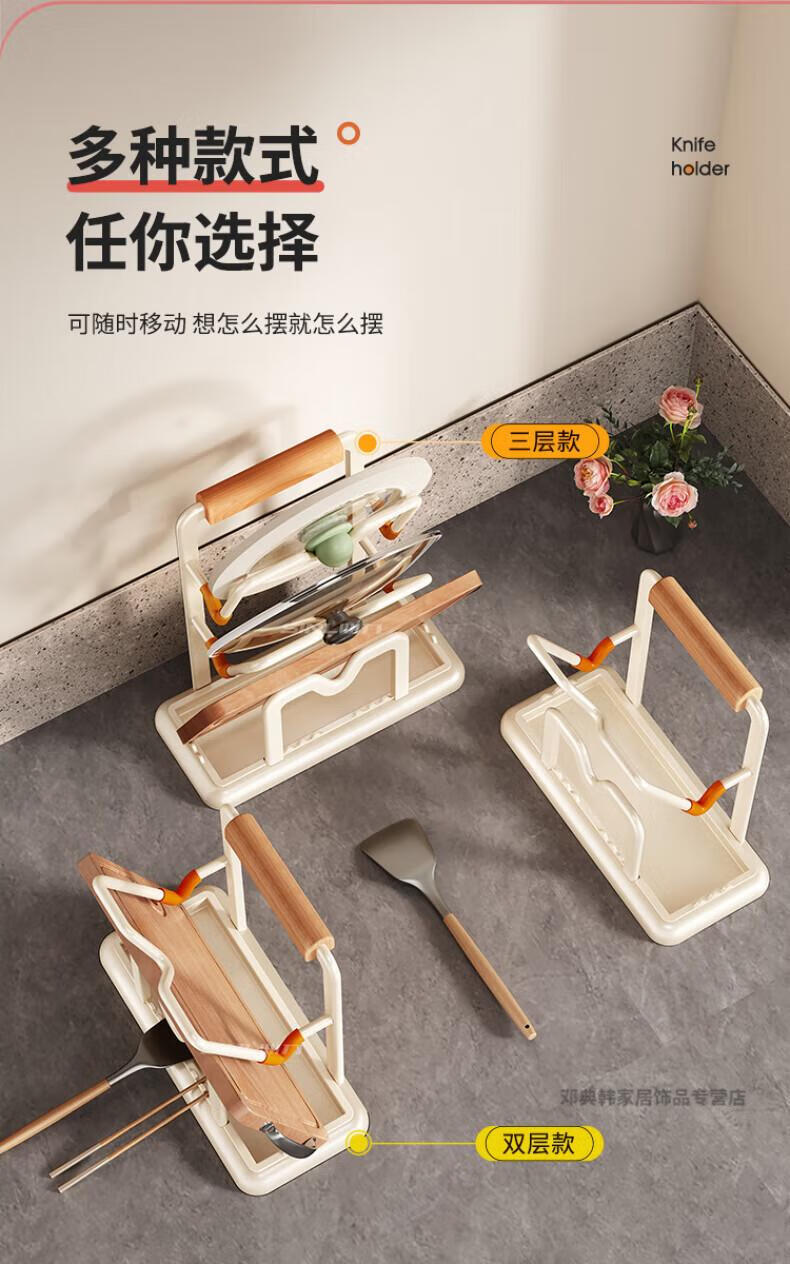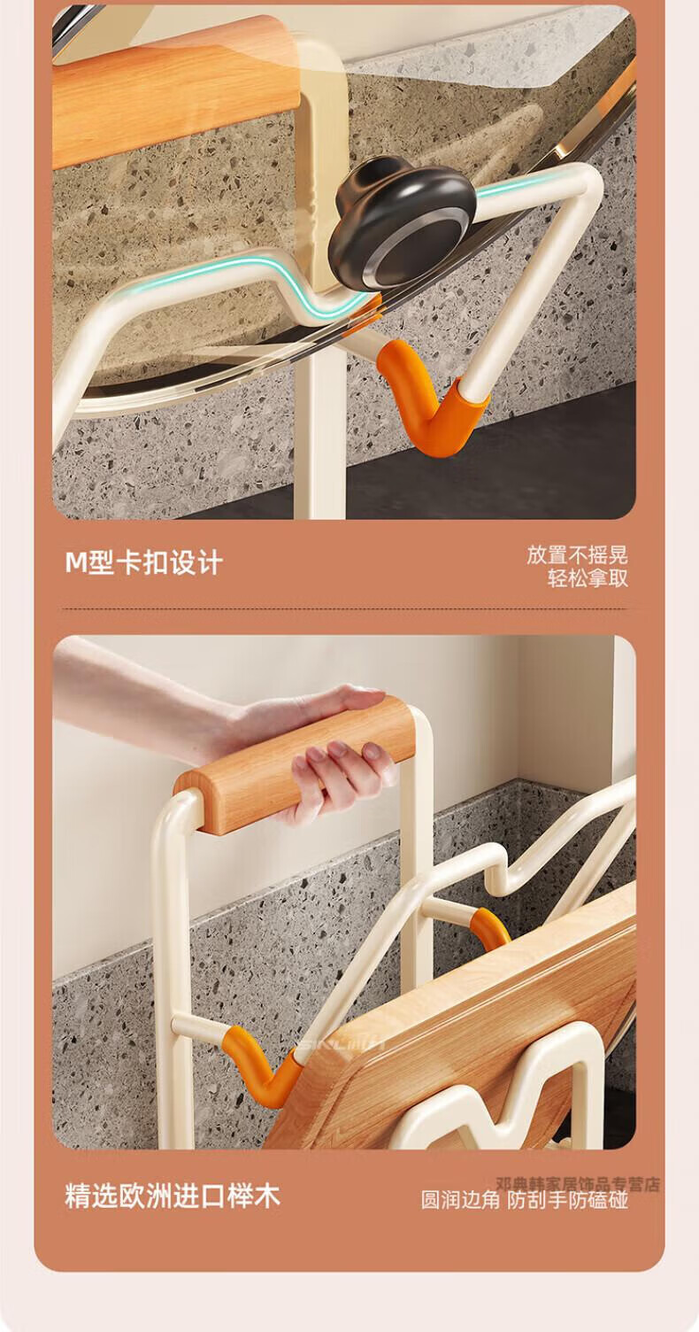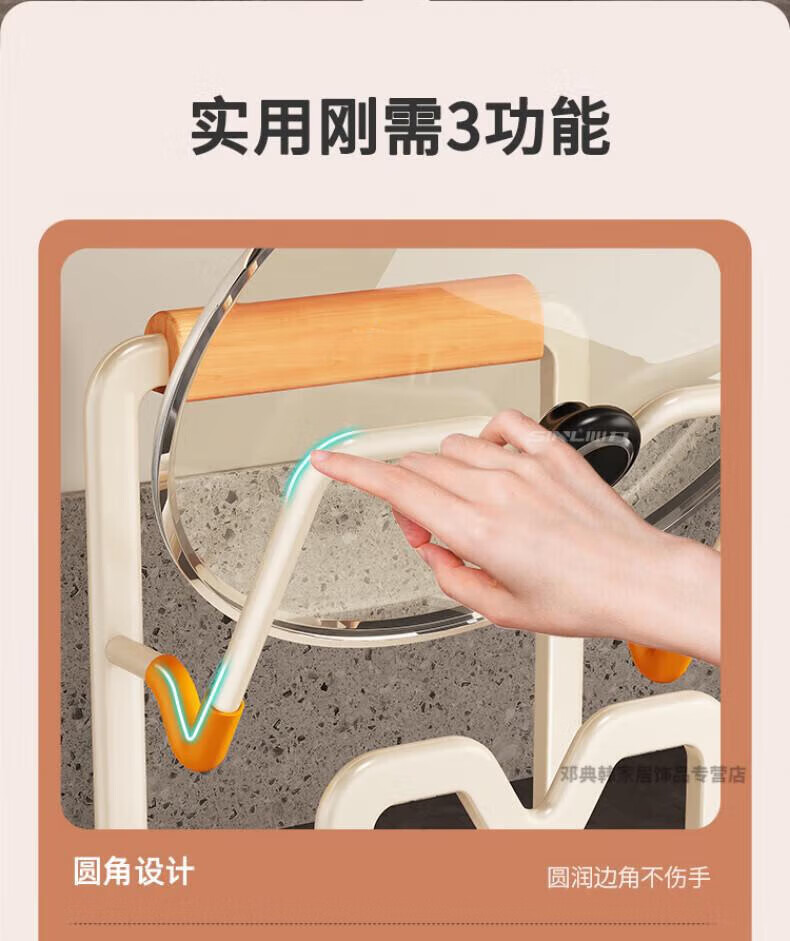 DEATKN德国厨房台面锅盖架2025新款菜砧板放置神器炒锅收纳支架置物架子 榉木把手加大加厚-3层奶油白