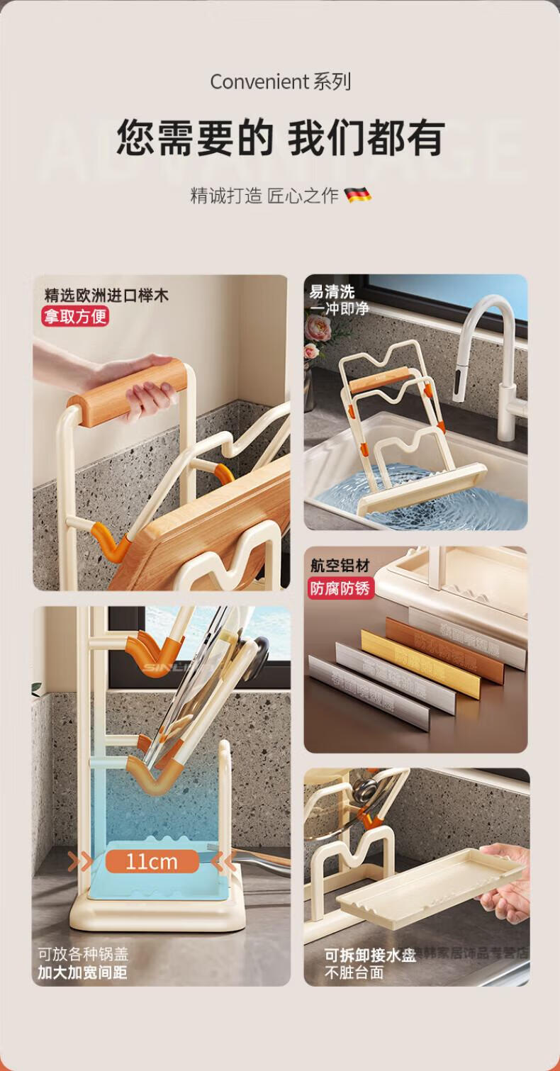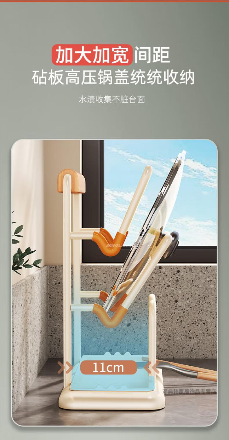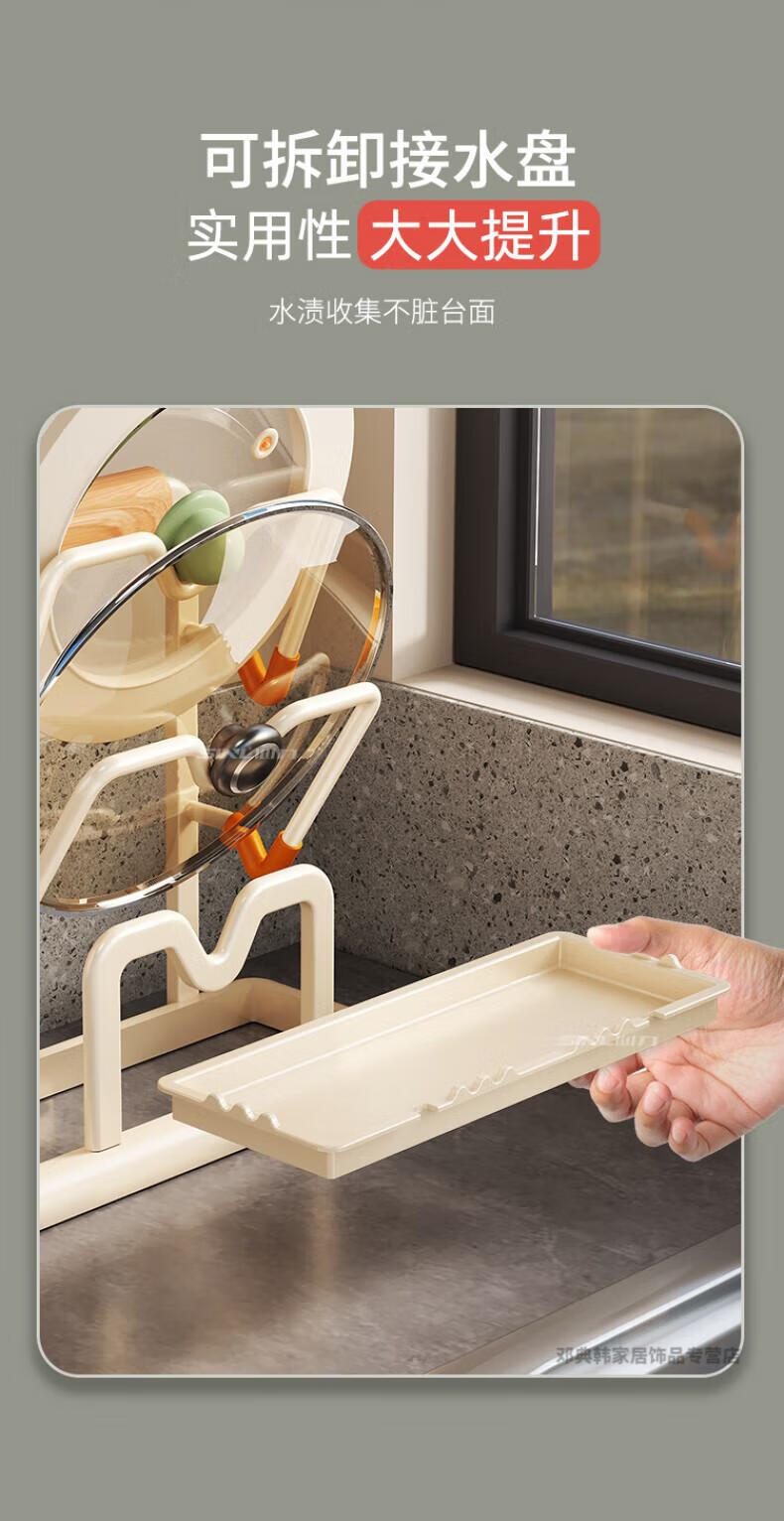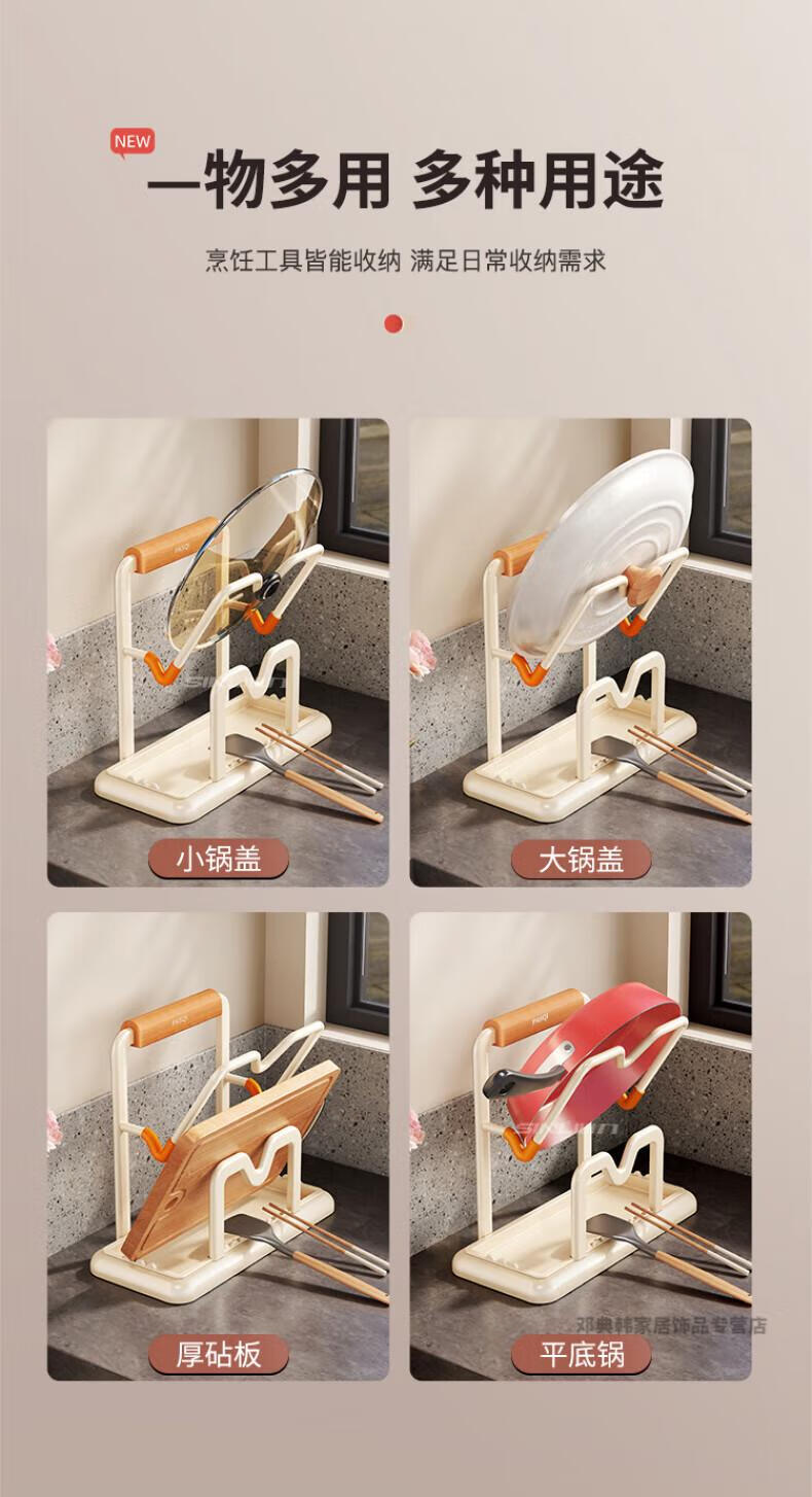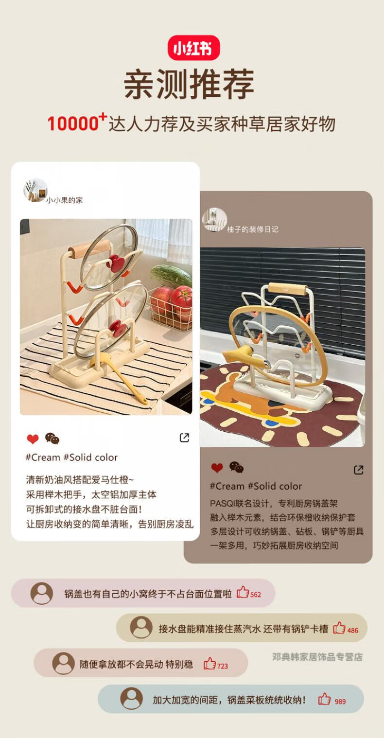 DEATKN德国厨房台面锅盖架2025新款菜砧板放置神器炒锅收纳支架置物架子 榉木把手加大加厚-3层奶油白