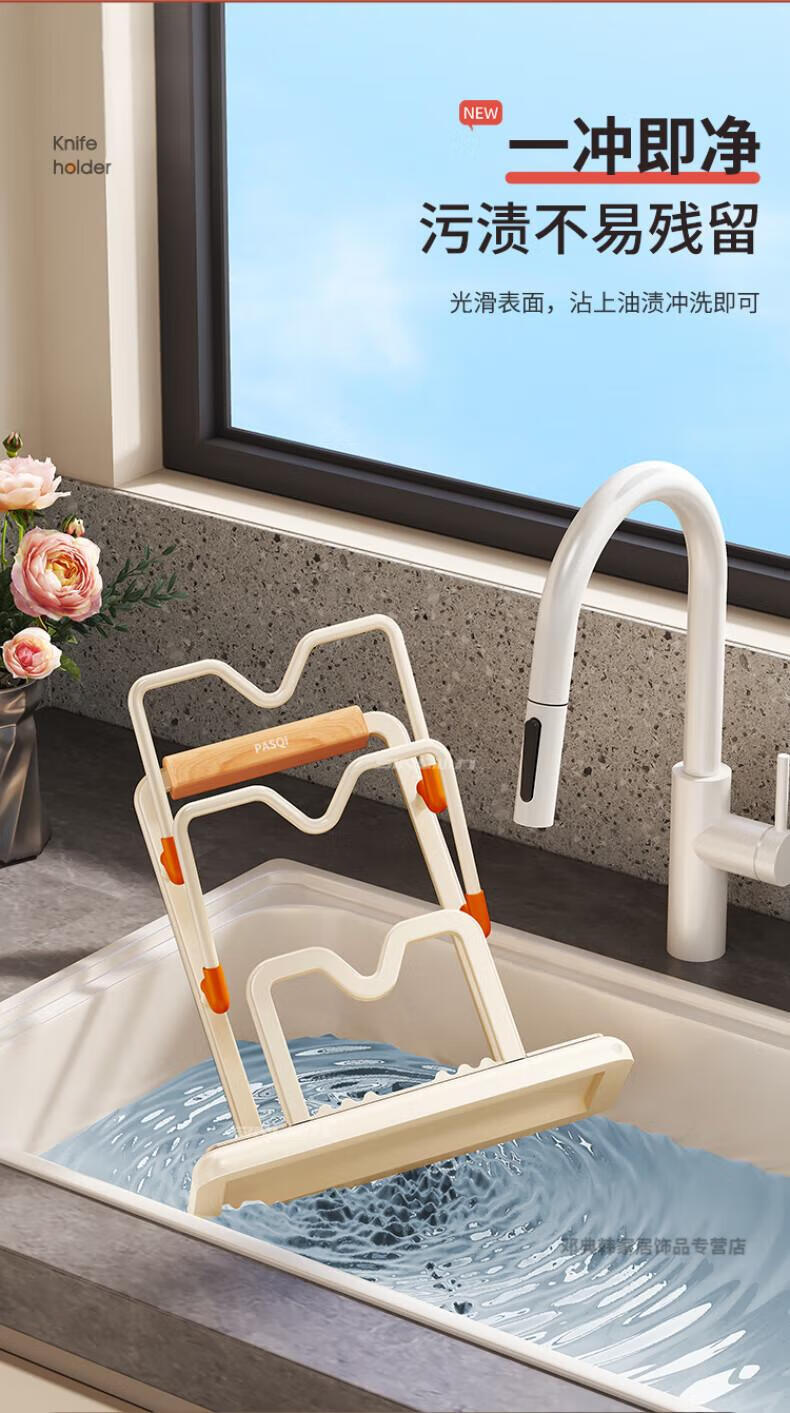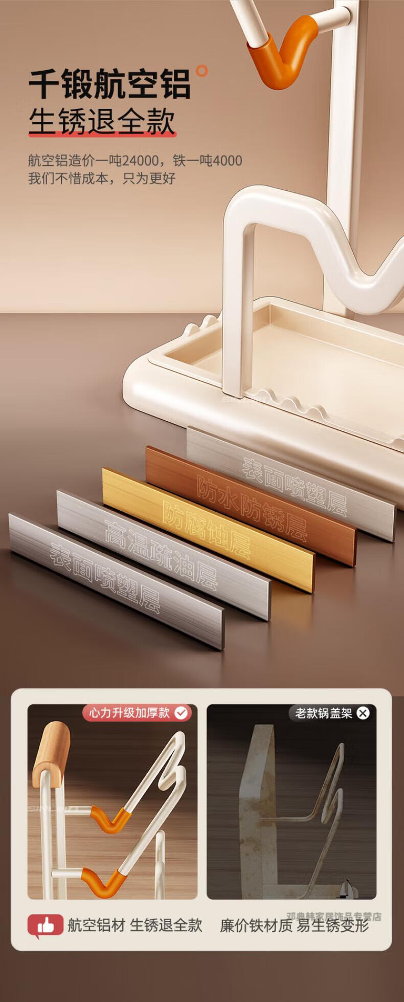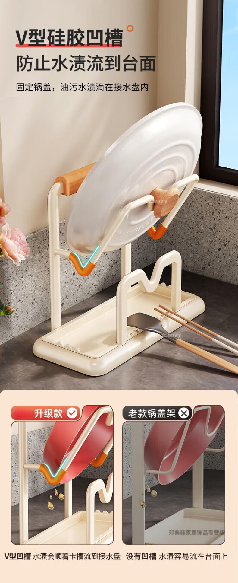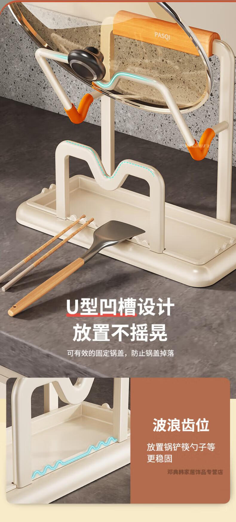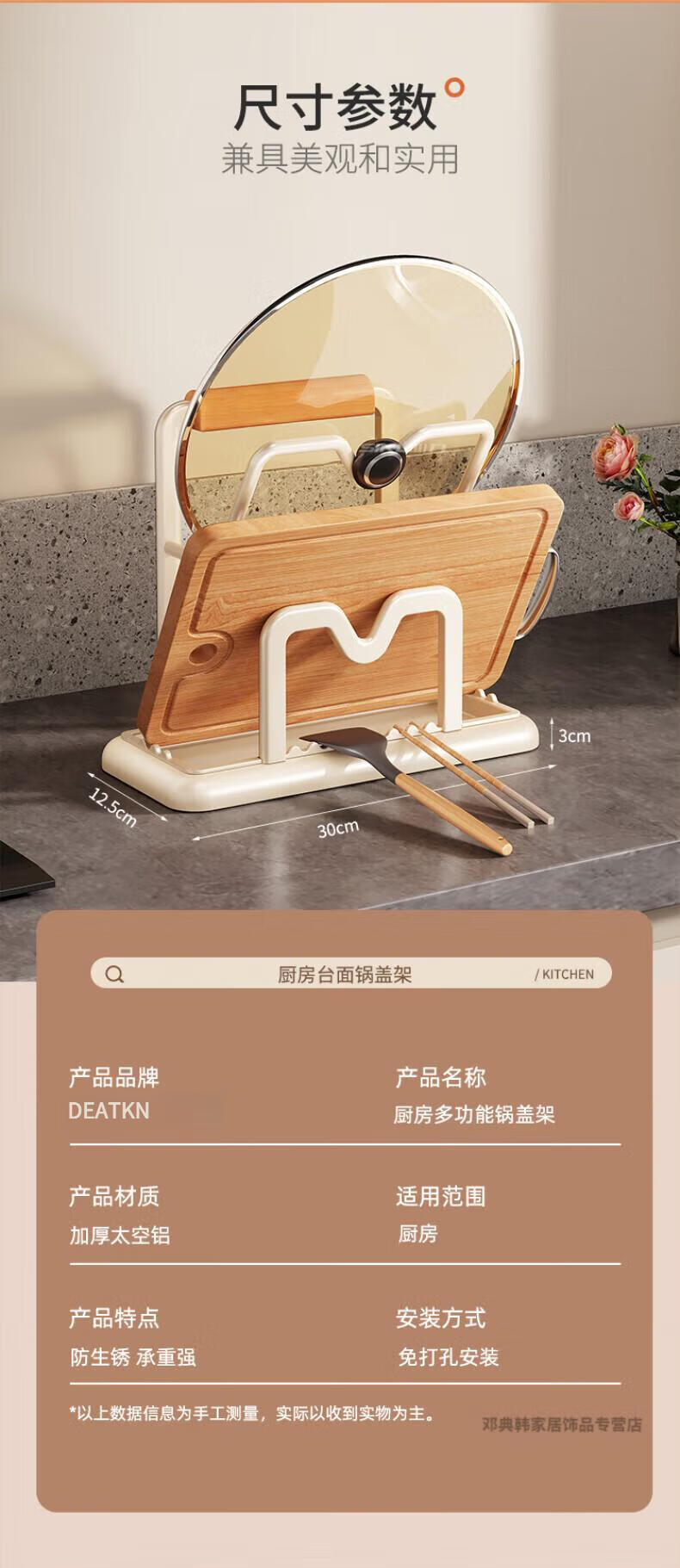 DEATKN德国厨房台面锅盖架2025新款菜砧板放置神器炒锅收纳支架置物架子 榉木把手加大加厚-3层奶油白