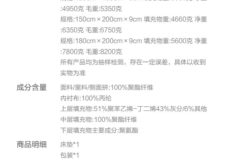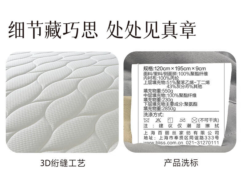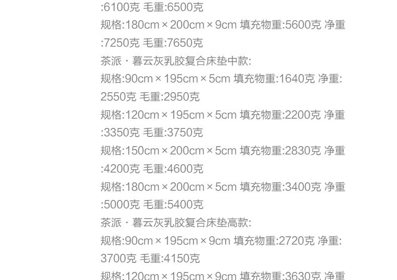 百丽丝床垫6A乳胶复合床垫中/高款回弹舒适透气A类床垫宿舍家用 茶派·暮云灰乳胶复合床垫中款 120cm*195cm