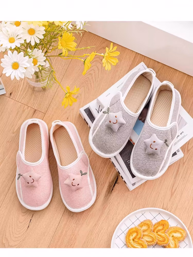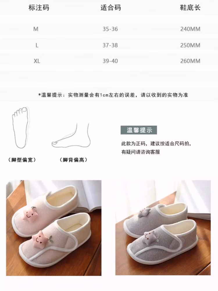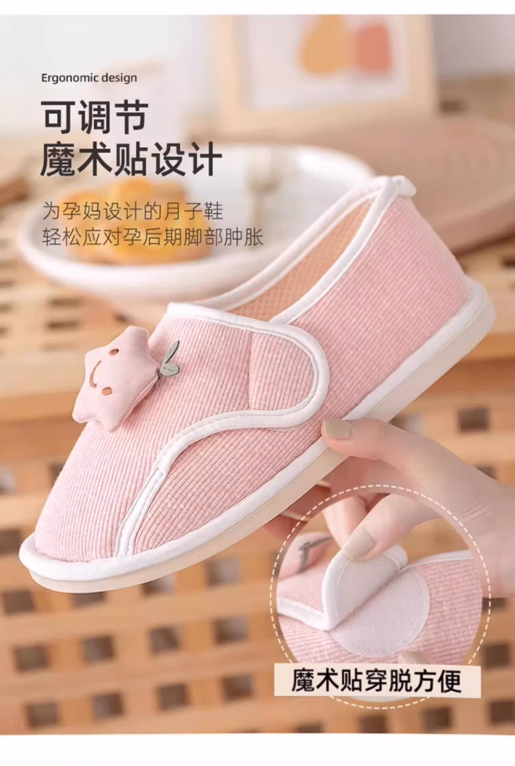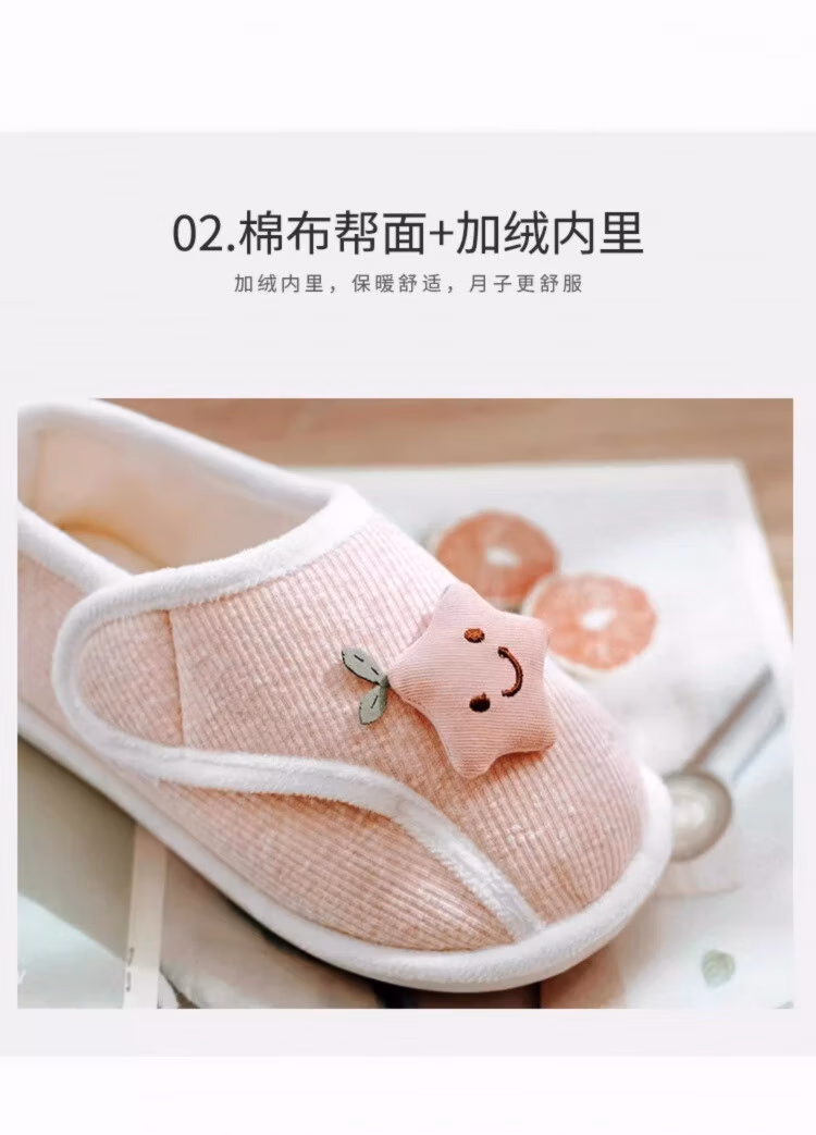 DEATKN德国月子鞋产后秋冬包跟软底防滑10月份孕妇产妇坐月子保暖拖鞋 【星星鞋粉-加绒】防滑大底 无惧水渍 36-37(适合35/36脚穿)