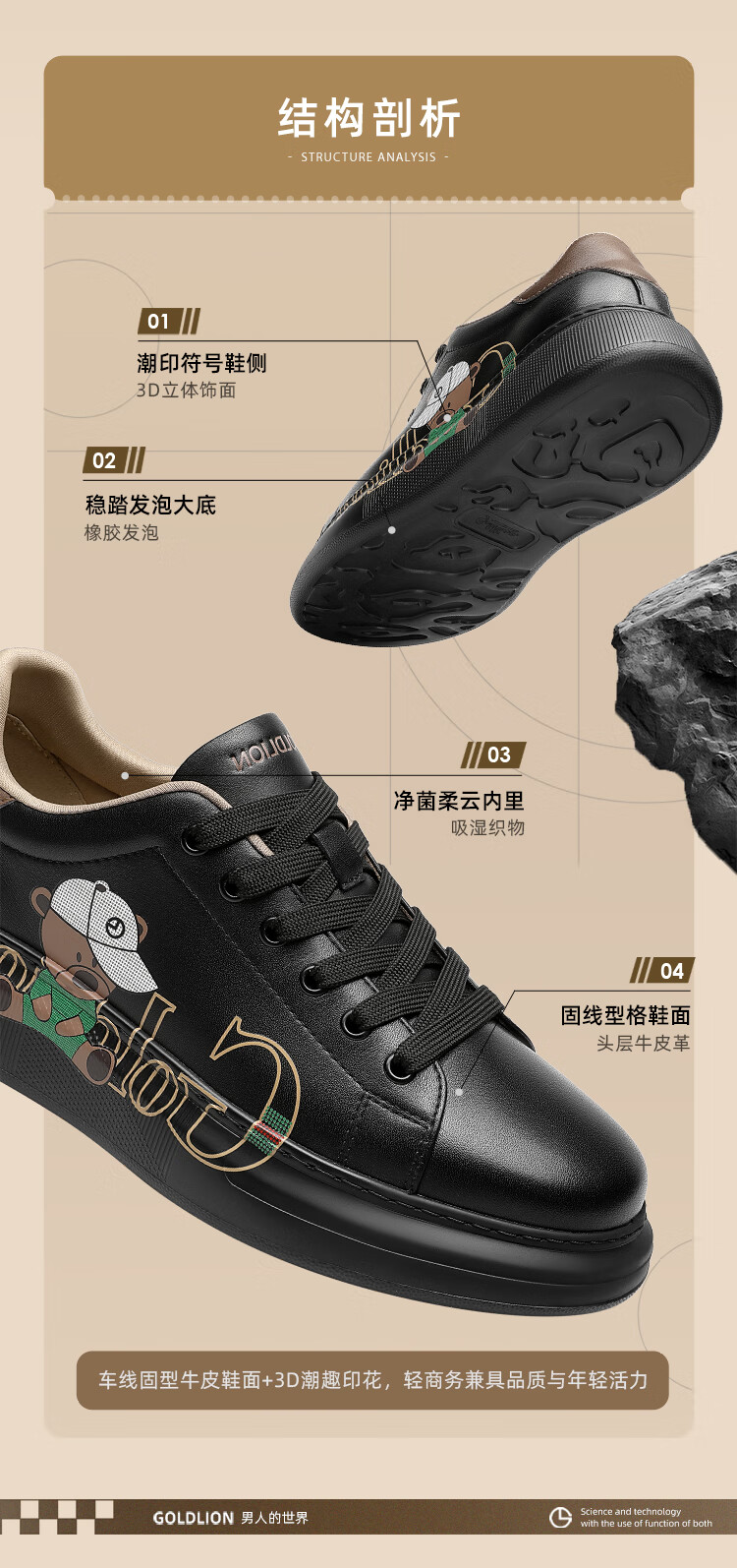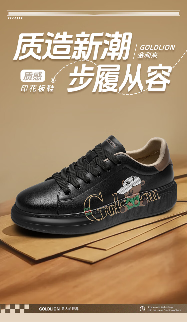 金利来(Goldlion)男鞋厚底增高休闲鞋25年秋新款潮流炫酷板鞋G578530303AAE黑40