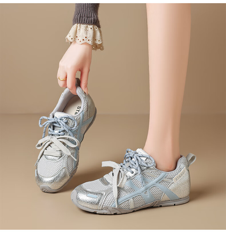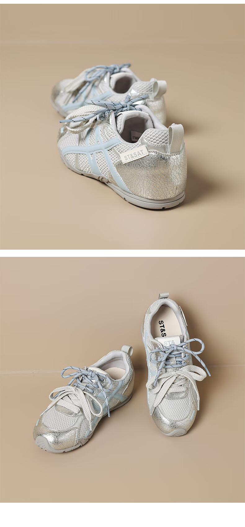 星期六(St&Sat)撞色百搭轻奢德训鞋秋季女友休闲平底运动跑步板鞋女SZSSD3112PLZ 银蓝 35