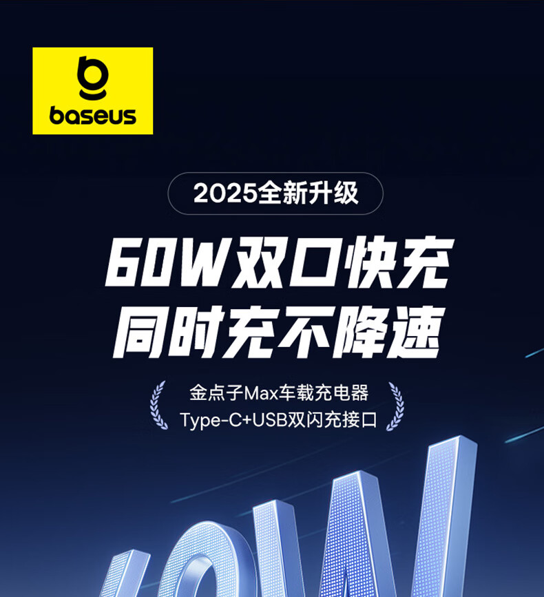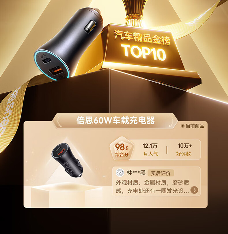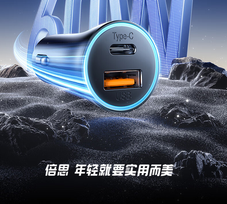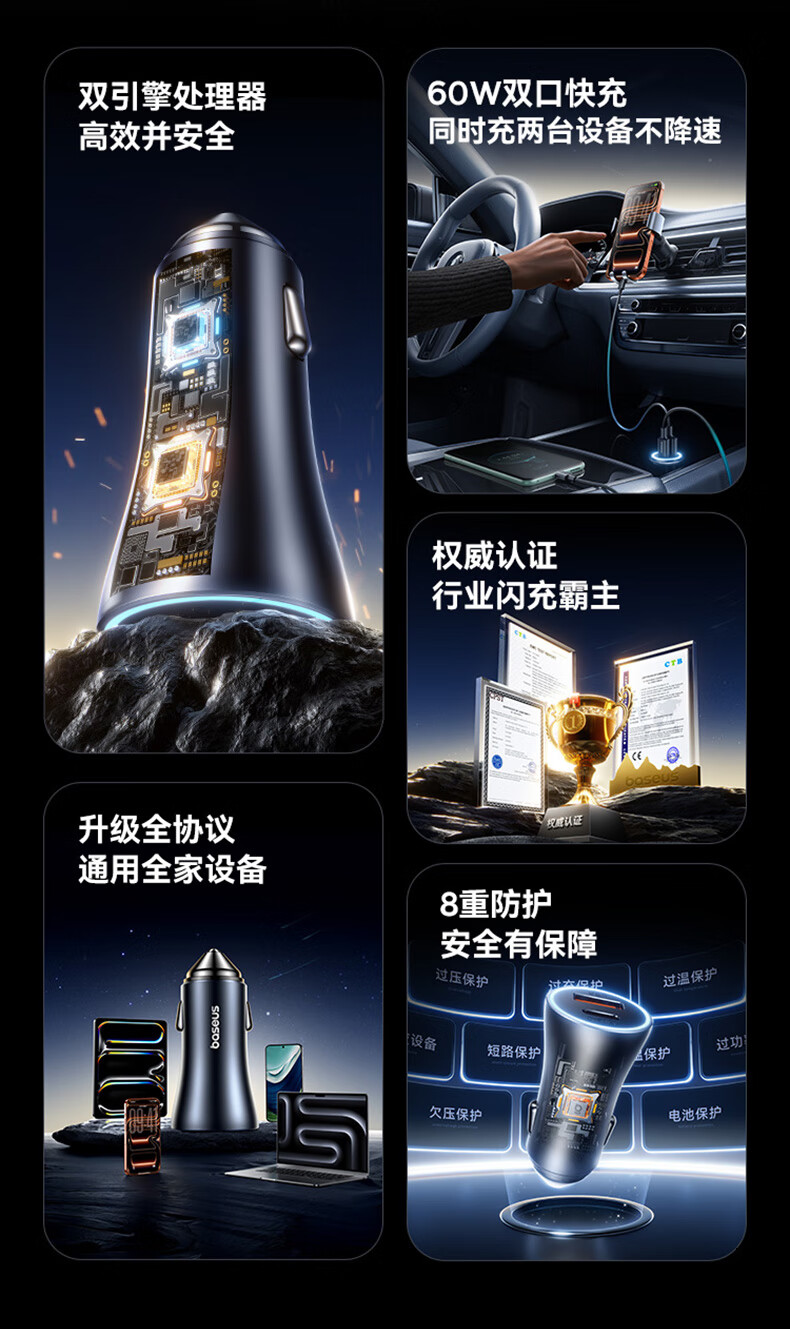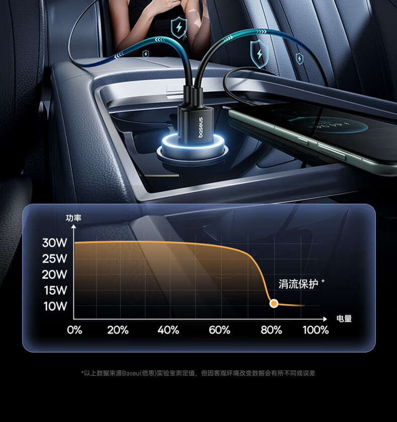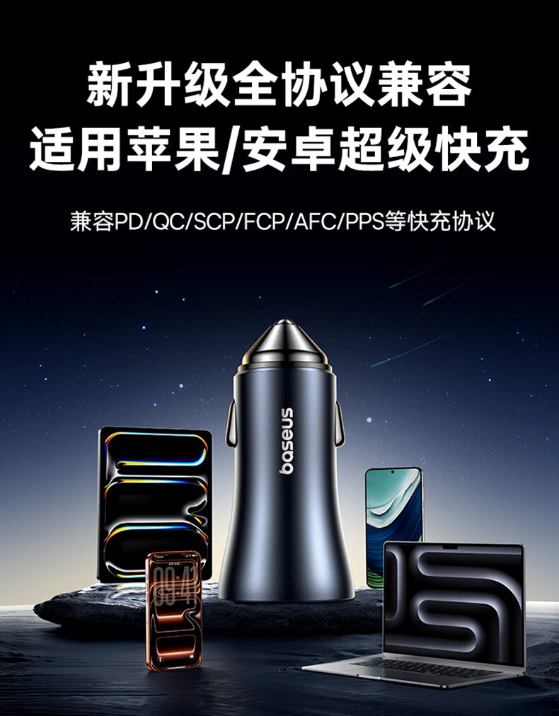 倍思 车载充电器超级快充点烟器一拖二车充头转换器适配苹果17/16华为小米17