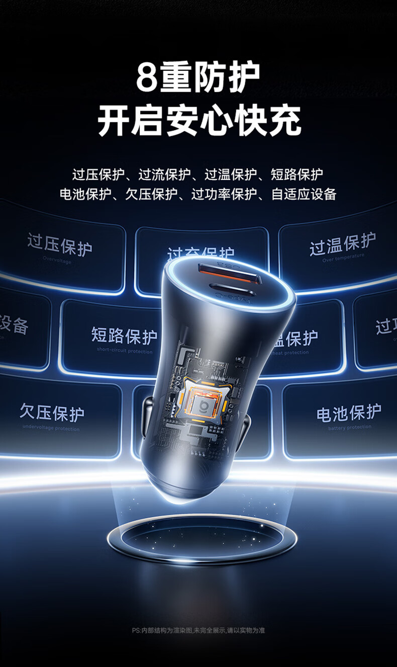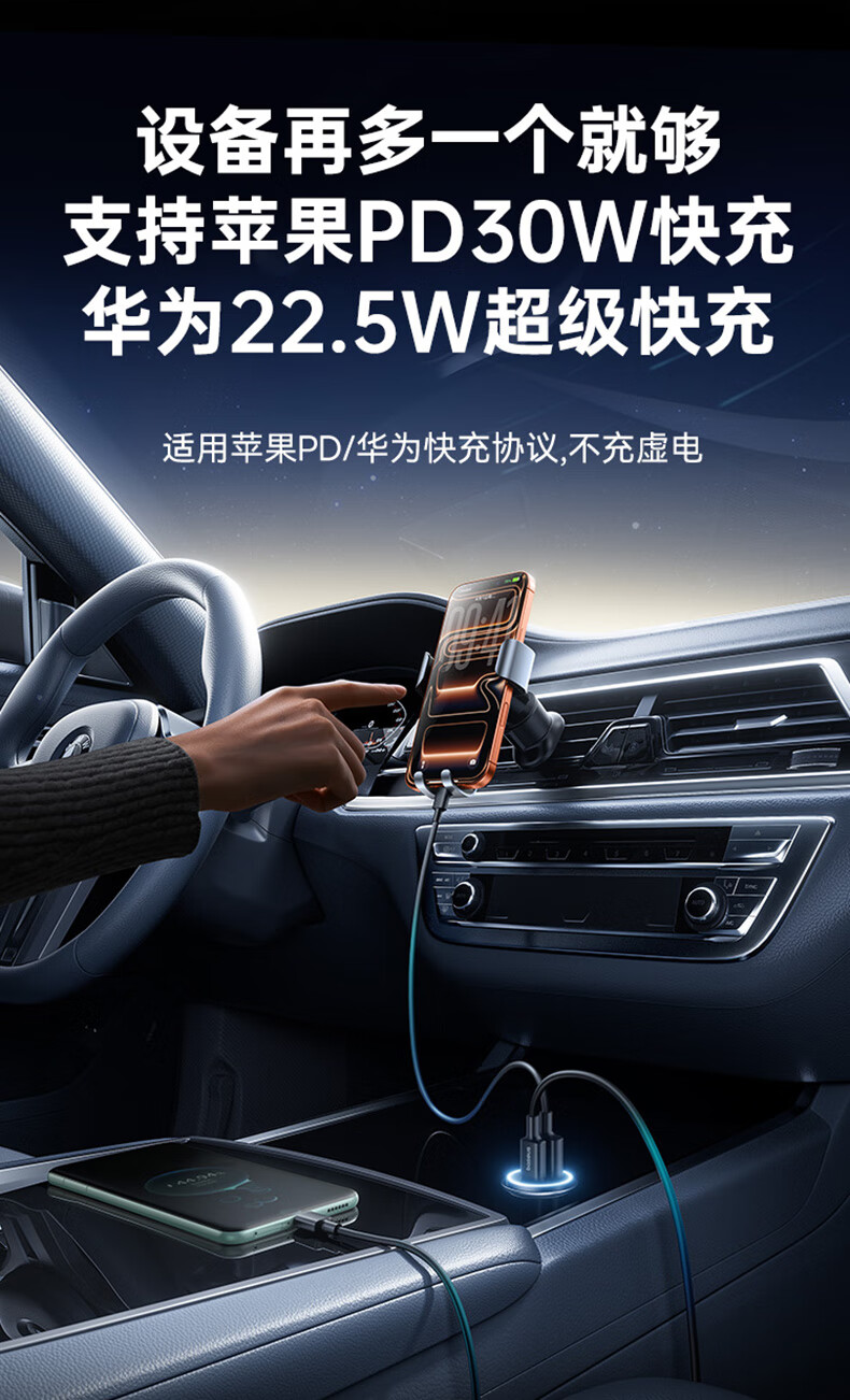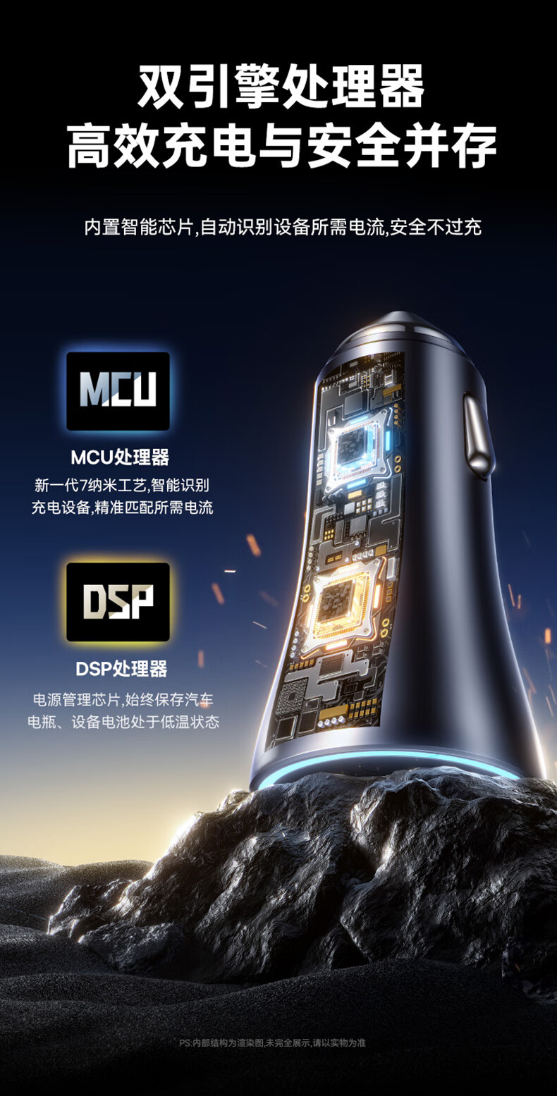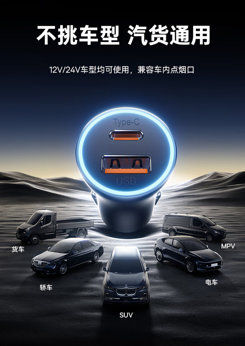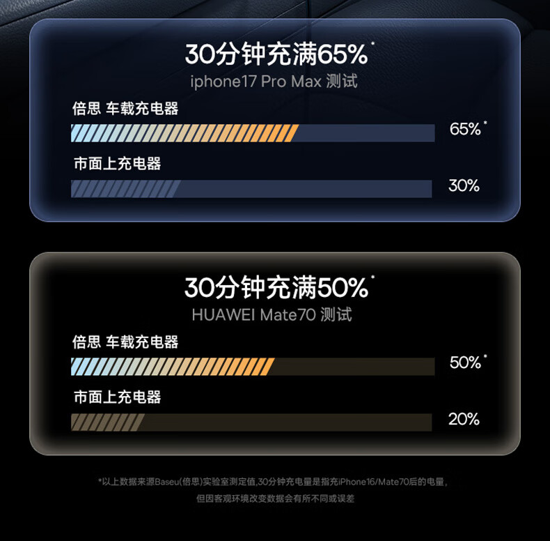 倍思 车载充电器超级快充点烟器一拖二车充头转换器适配苹果17/16华为小米17
