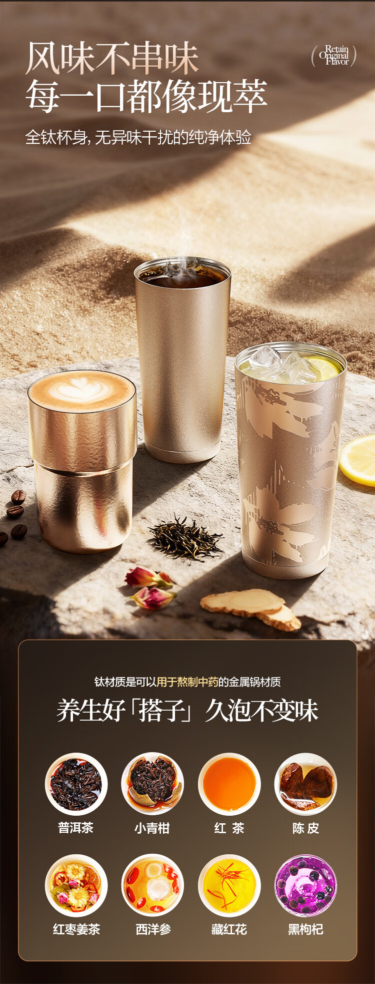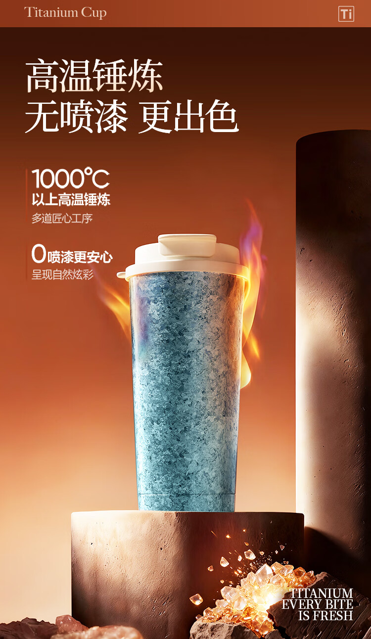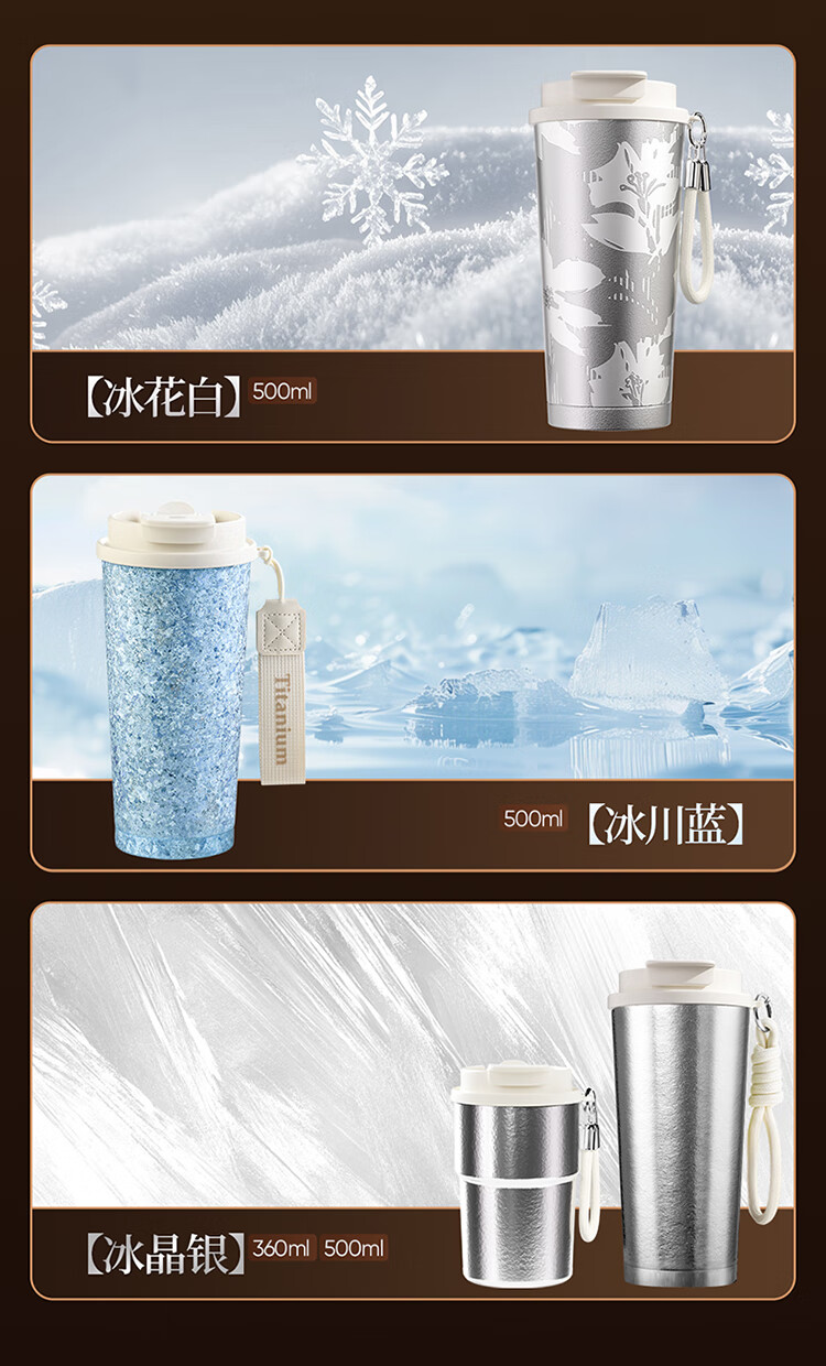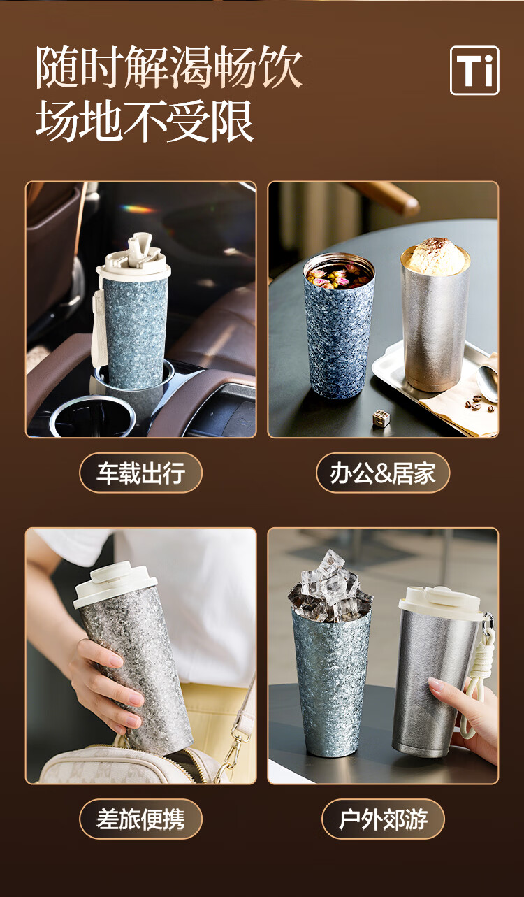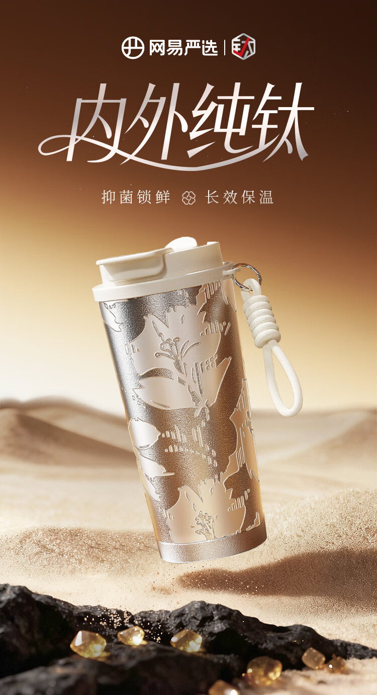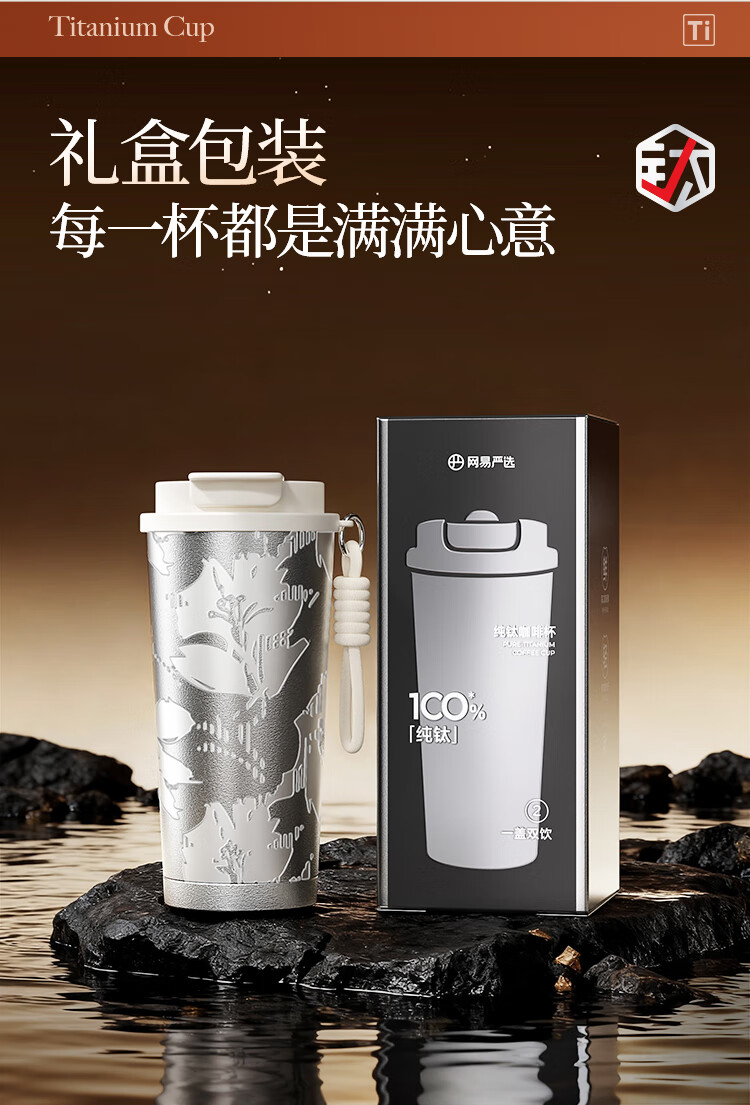 网易严选钛杯纯钛保温保冷杯高颜值一盖双饮咖啡杯 节日礼物 健康新鲜 炫彩虹- 500ml