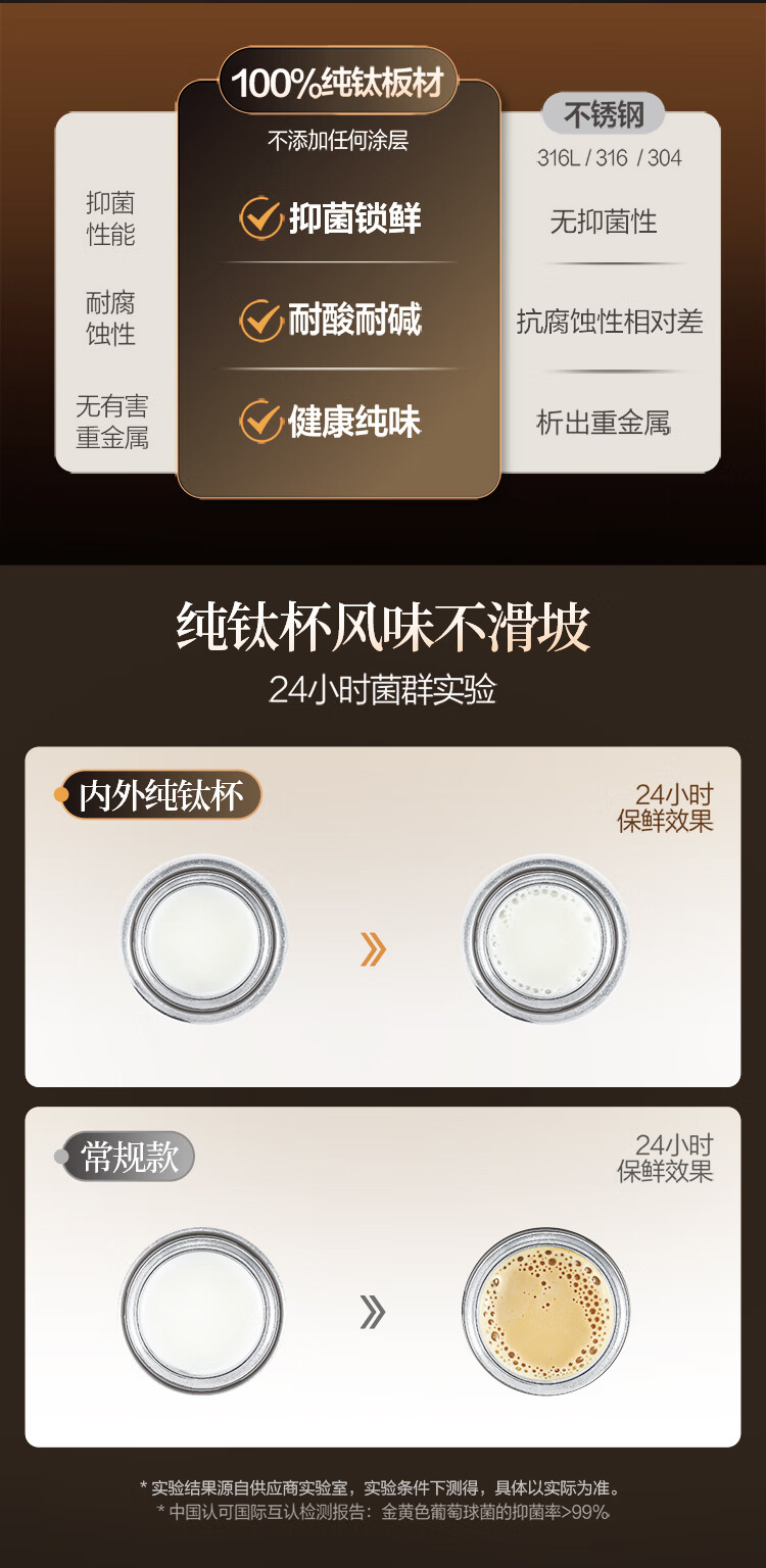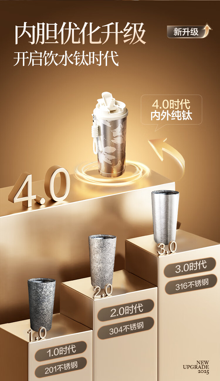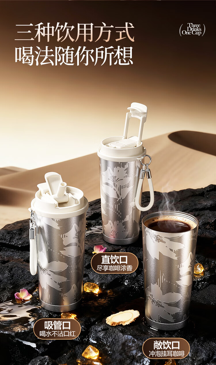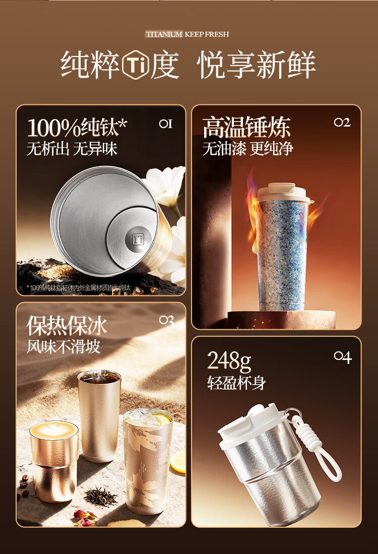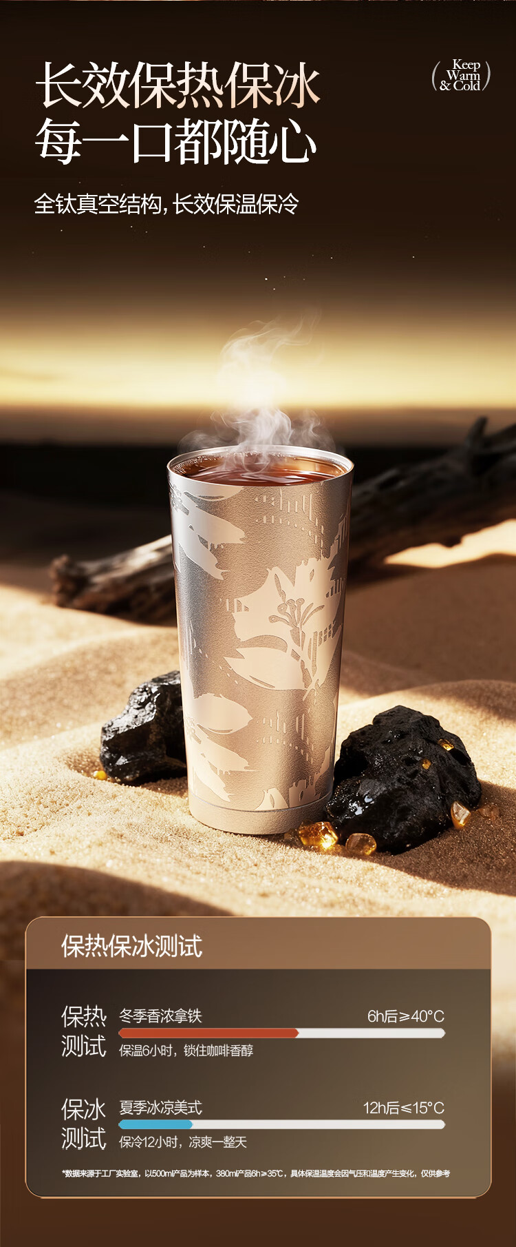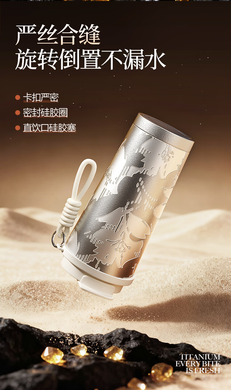 网易严选钛杯纯钛保温保冷杯高颜值一盖双饮咖啡杯 节日礼物 健康新鲜 炫彩虹- 500ml