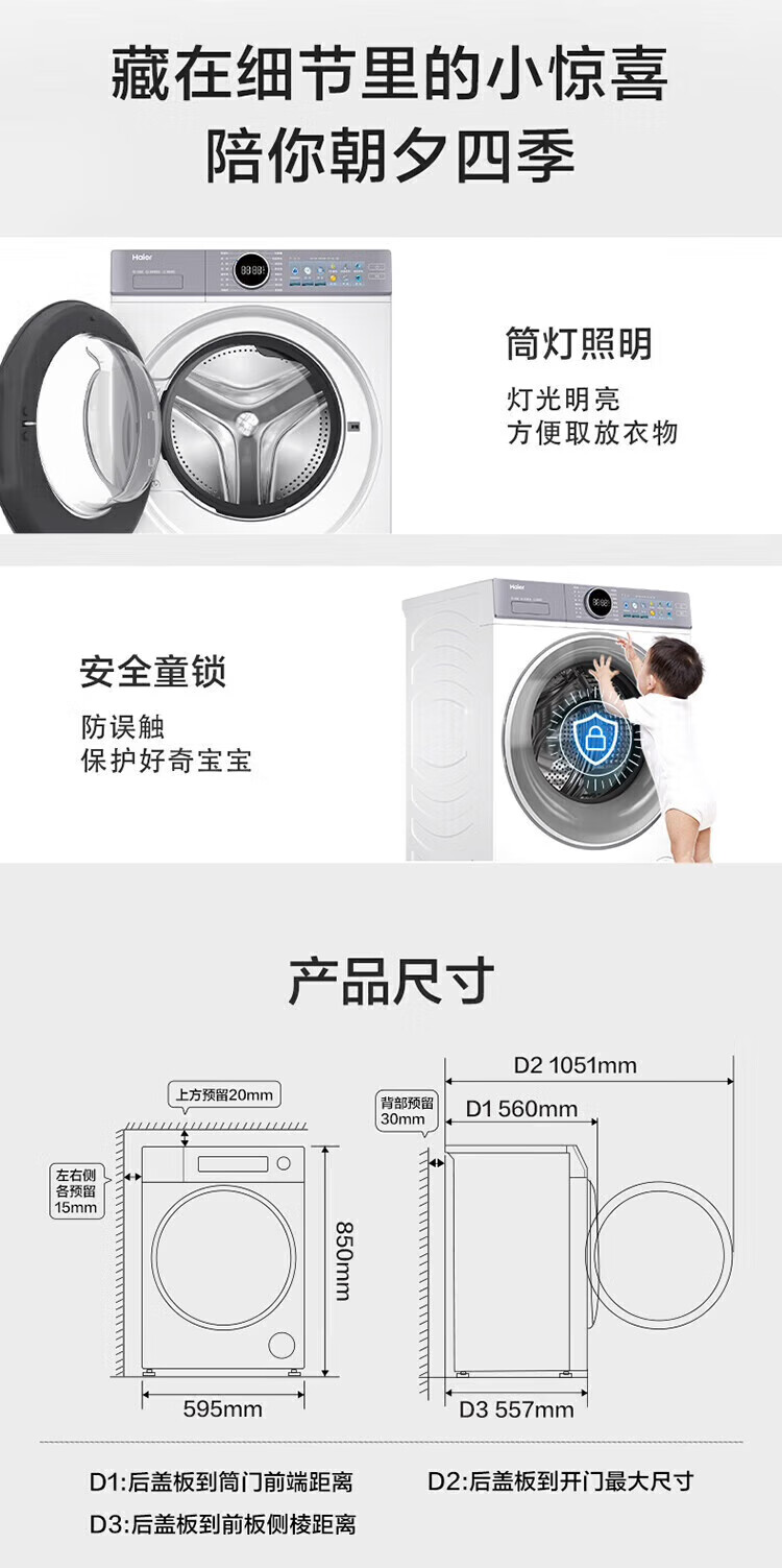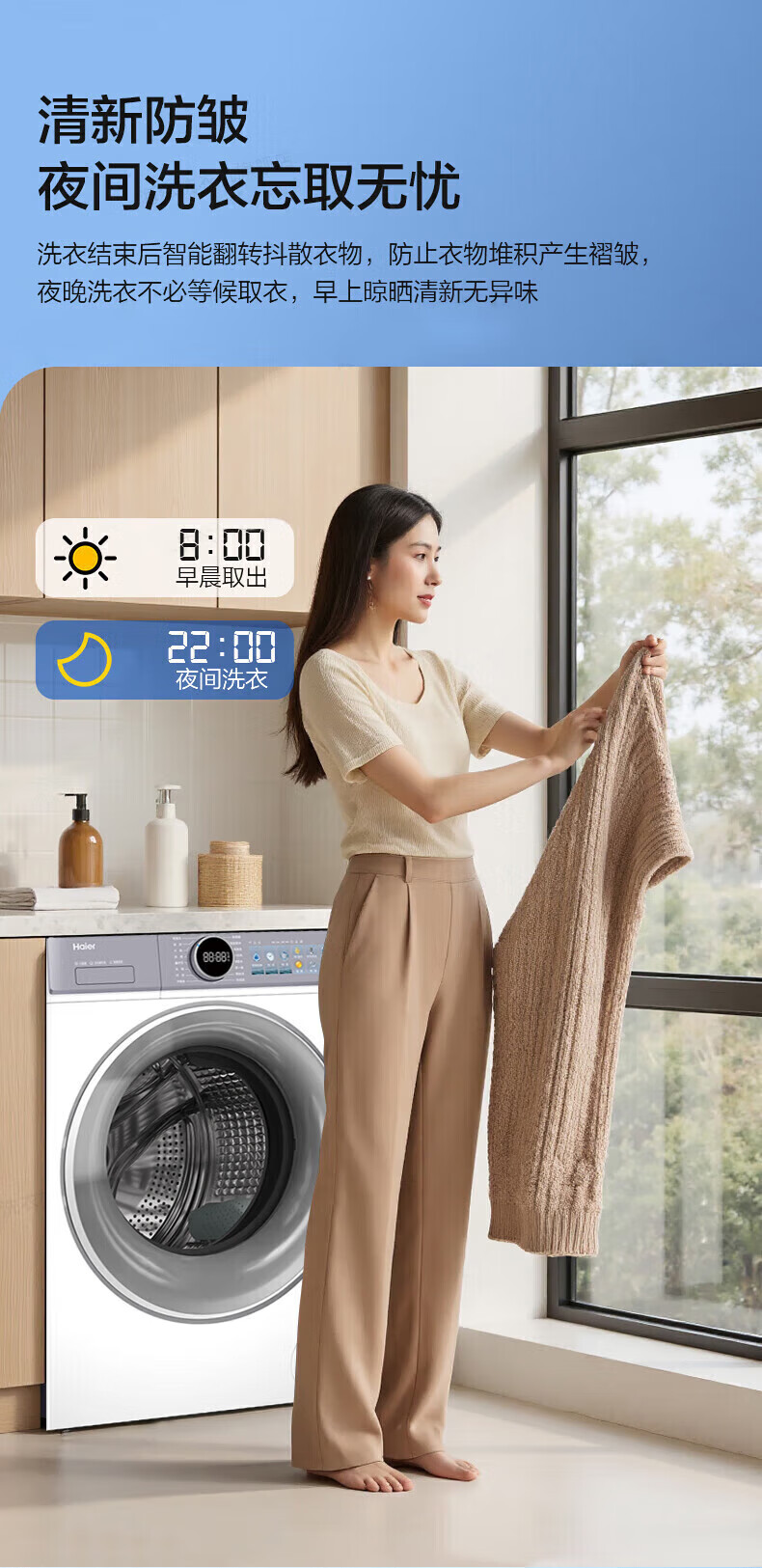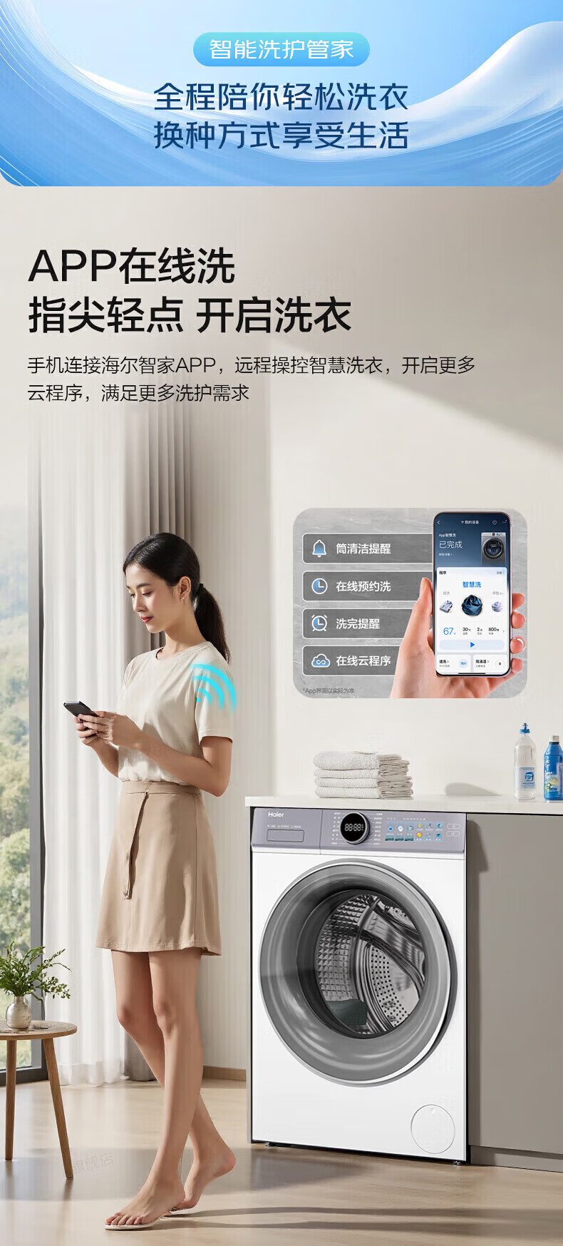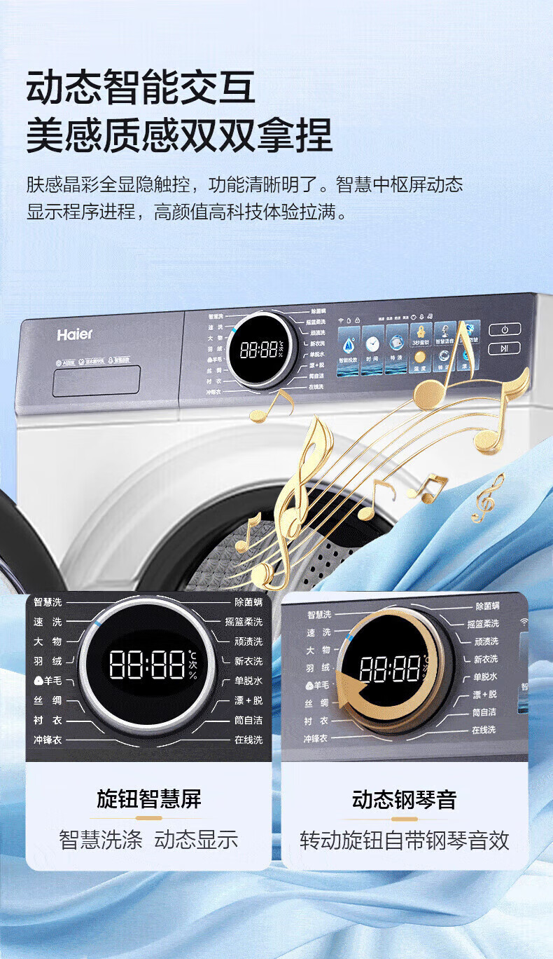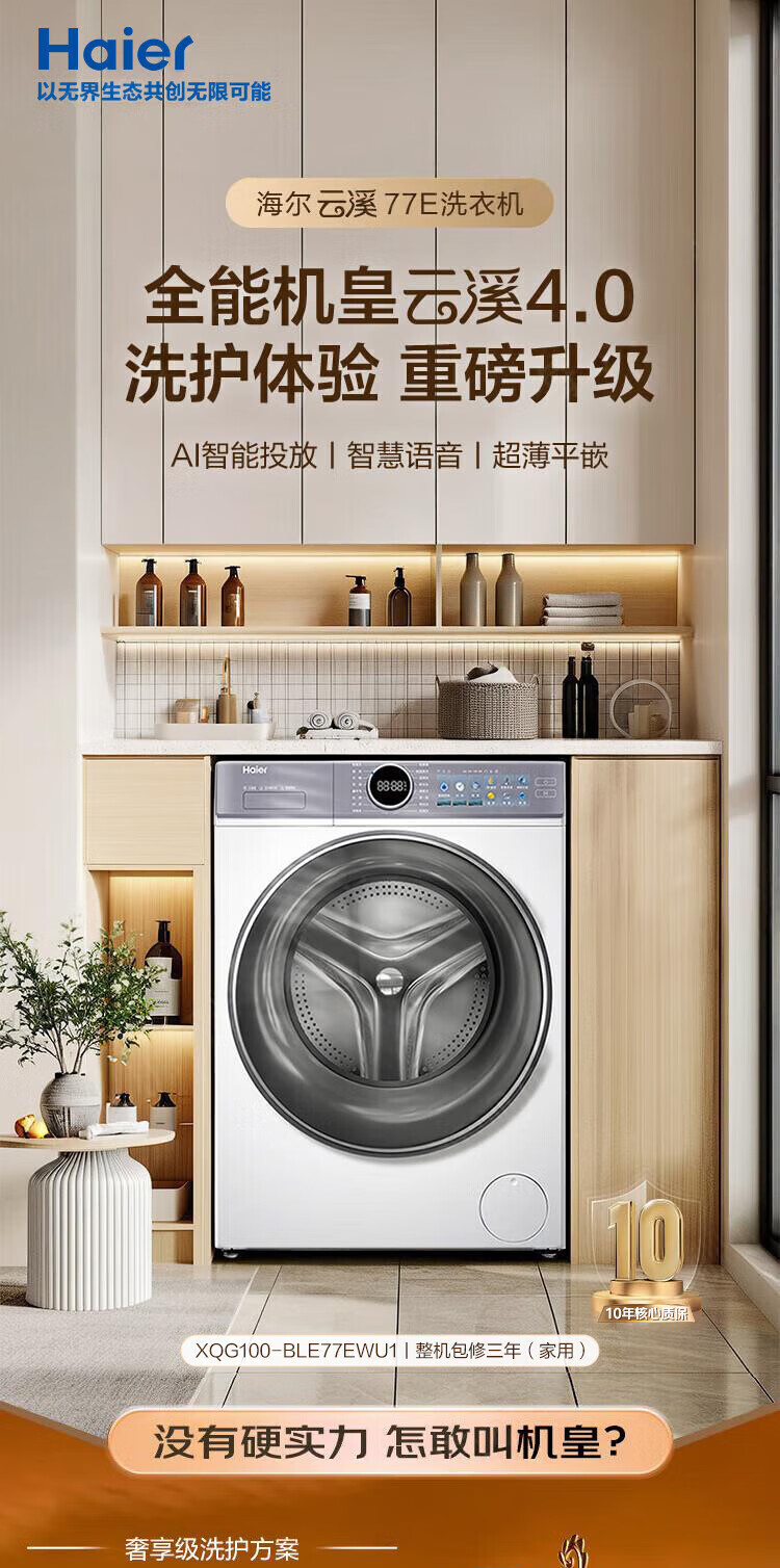 海尔(Haier)云溪4.0洗衣机77EW/376/579【国家补贴20%】直驱全自动滚筒洗衣机10公斤大容量懒人精华洗一级能效 云溪3.0冠军版376丨直驱精华洗+光等离子除菌