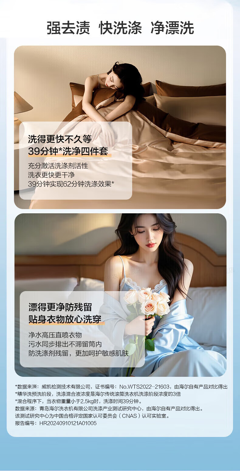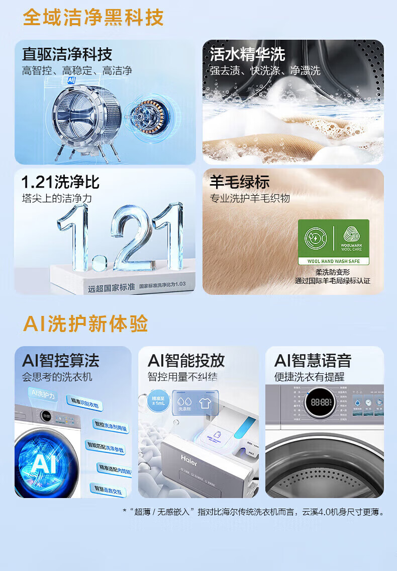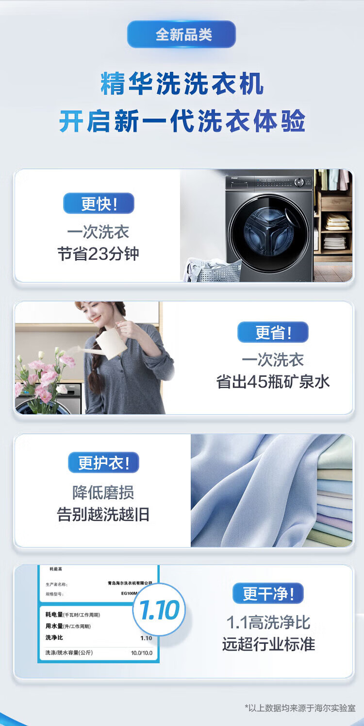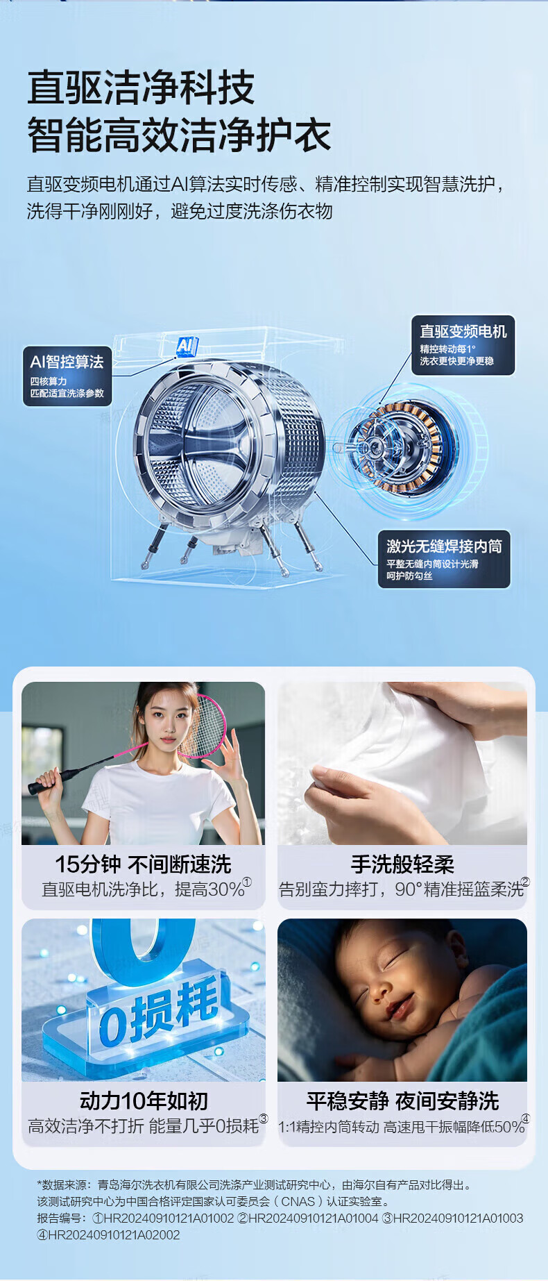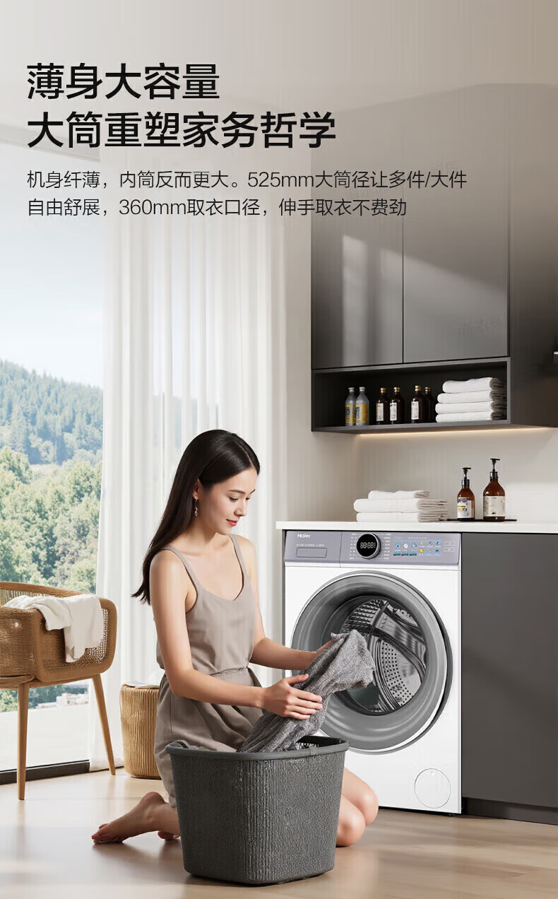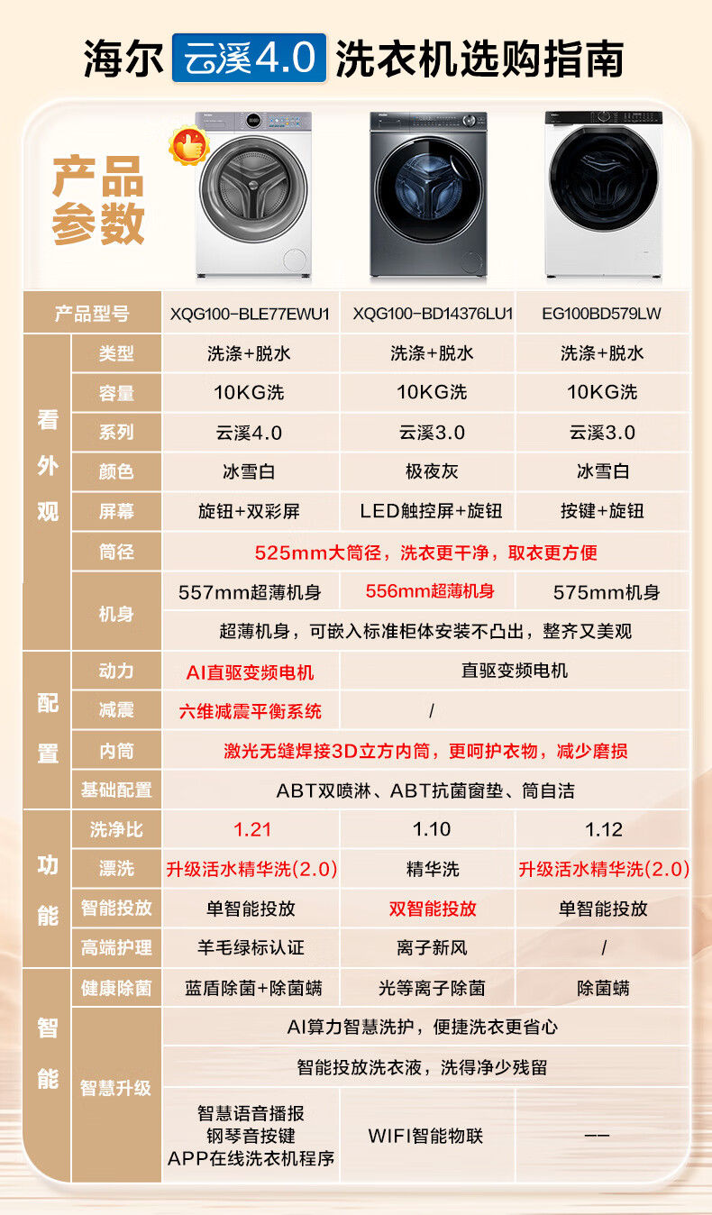海尔(Haier)云溪4.0洗衣机77EW/376/579【国家补贴20%】直驱全自动滚筒洗衣机10公斤大容量懒人精华洗一级能效 云溪3.0冠军版376丨直驱精华洗+光等离子除菌