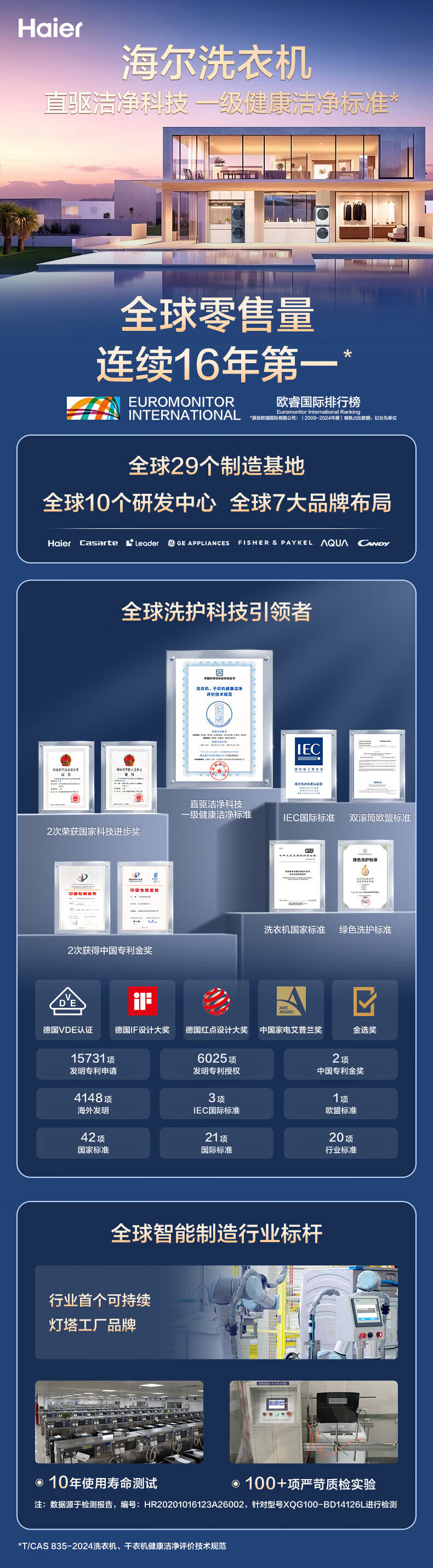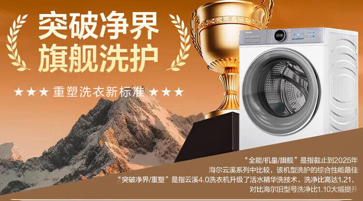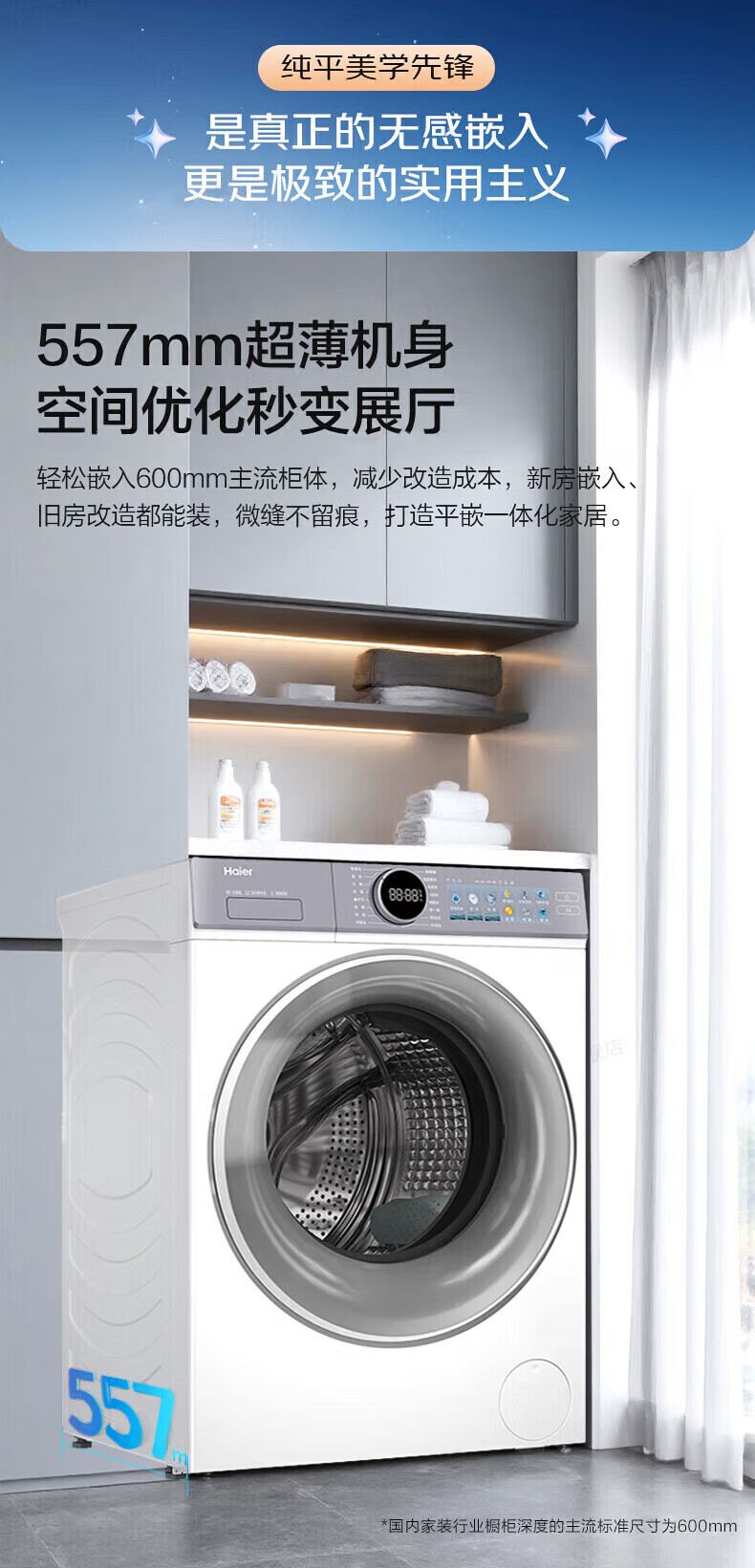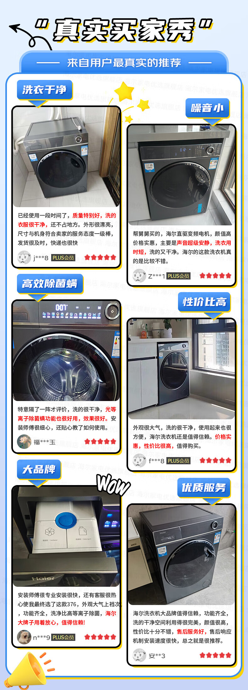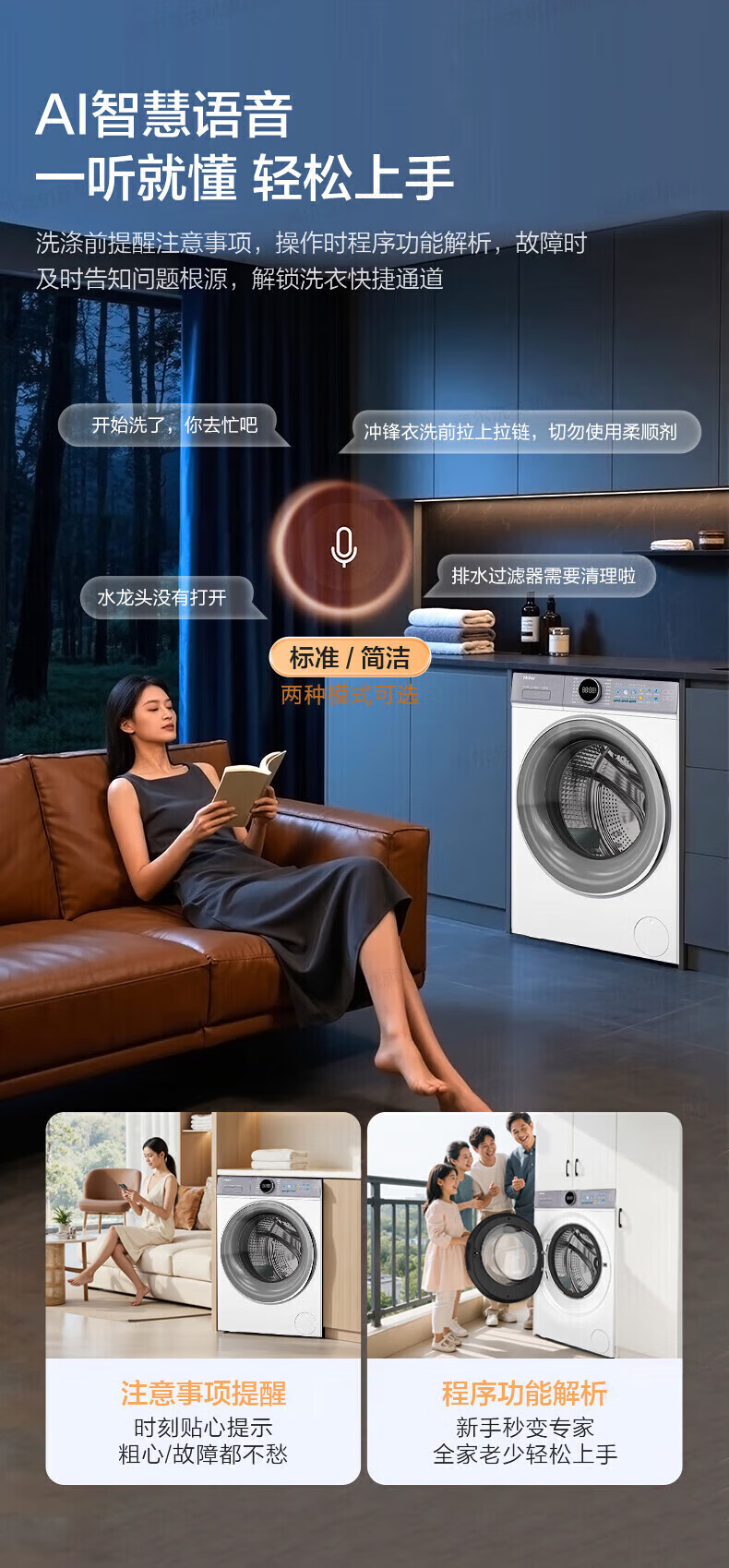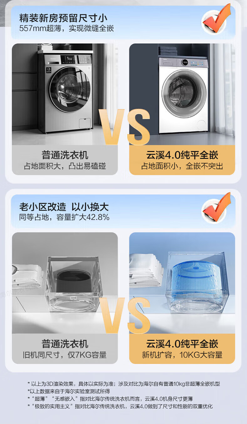 海尔(Haier)云溪4.0洗衣机77EW/376/579【国家补贴20%】直驱全自动滚筒洗衣机10公斤大容量懒人精华洗一级能效 云溪3.0冠军版376丨直驱精华洗+光等离子除菌