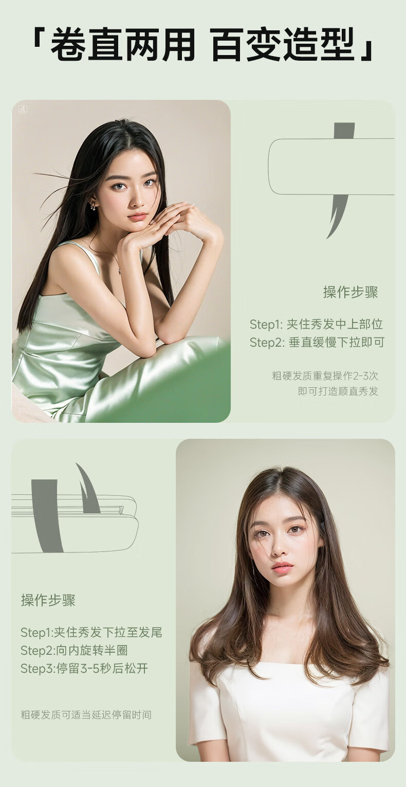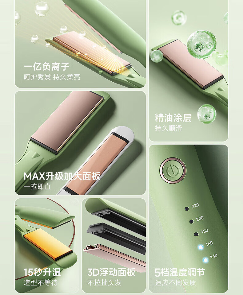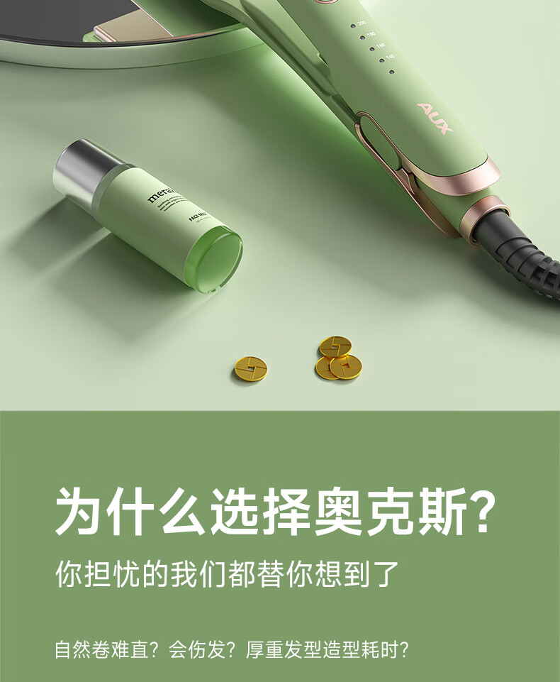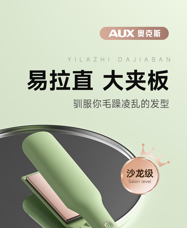 奥克斯(AUX) 直发夹板女士负离子不伤发防烫电夹板专业发廊直发器直发卷发两用内扣卷刘海烫发板理发店直板夹 竹青绿【沙龙级+1亿负离子】45MM 45mm 2年只换不修全网最低价买贵必赔赠运费险