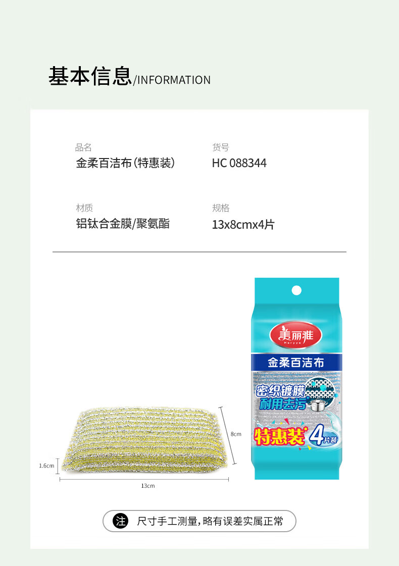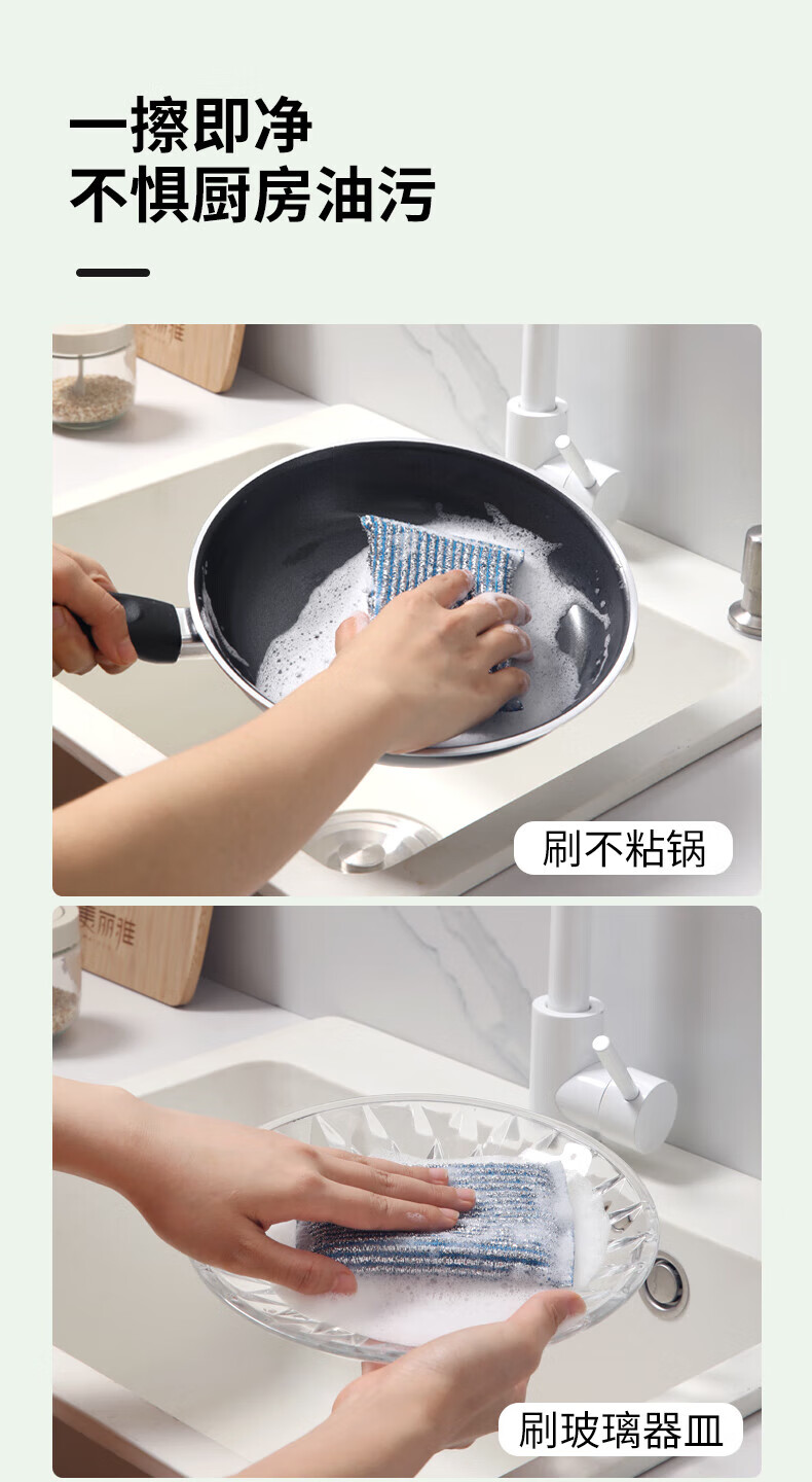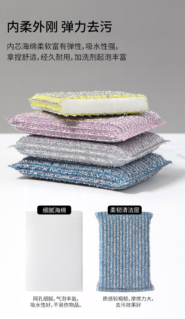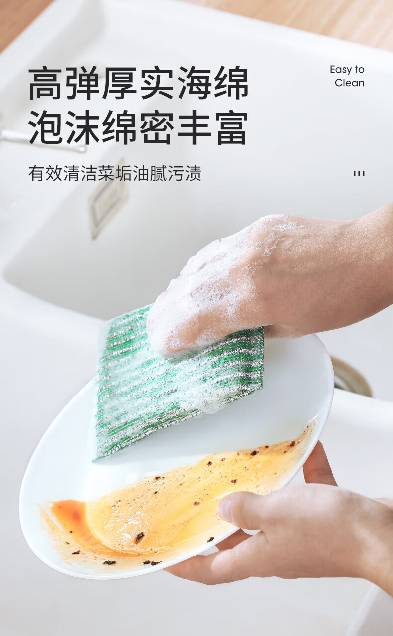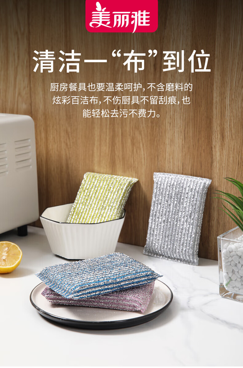 美丽雅百洁布厨房洗碗刷锅吸水去污易清洗海绵百洁布多用洗碗抹布 金柔百洁布-1包装(4片)
