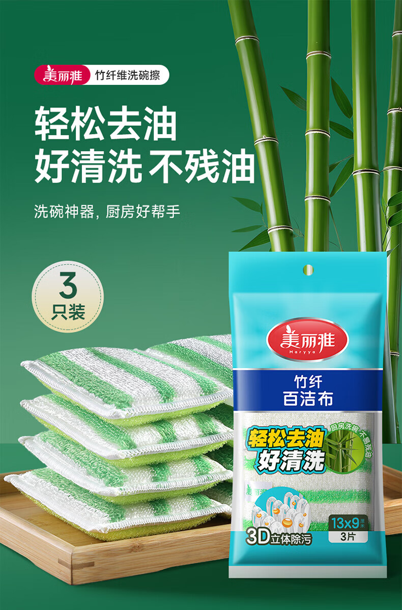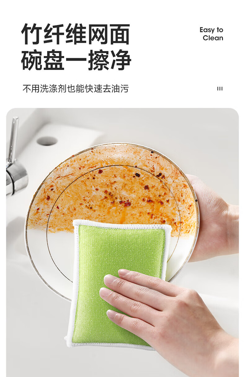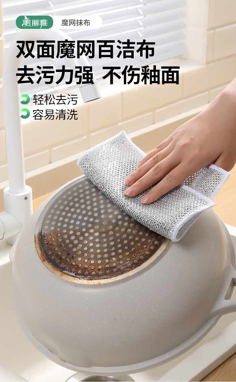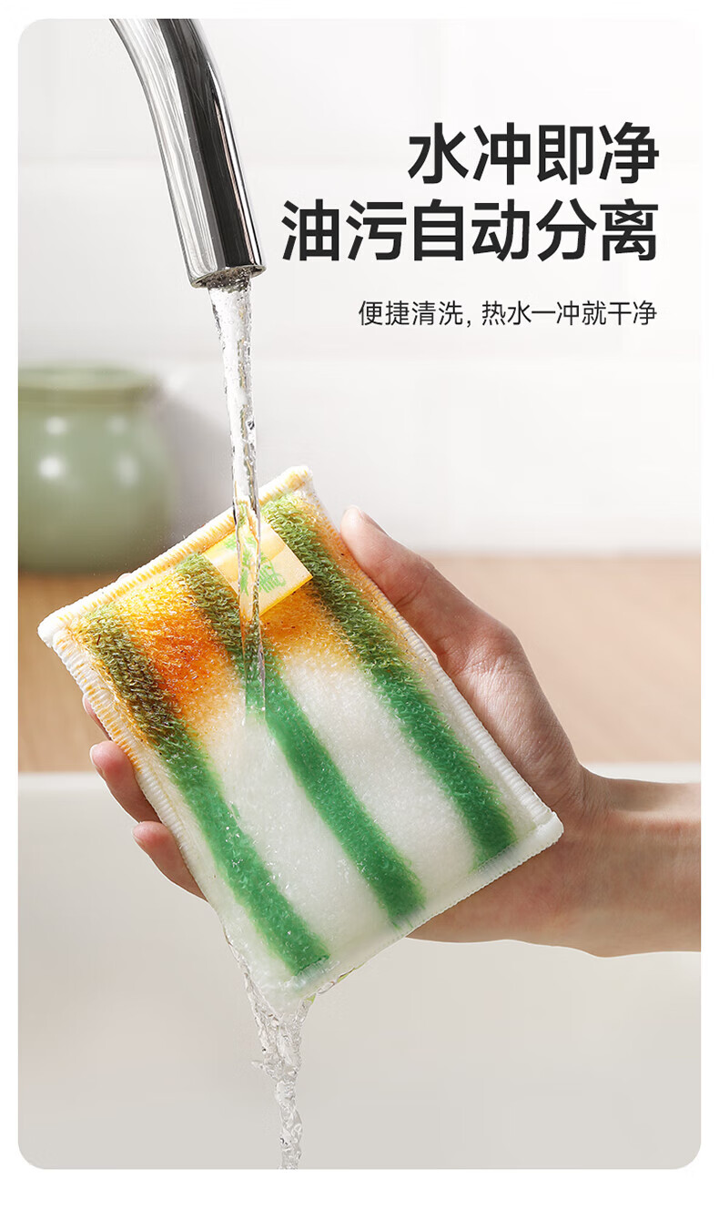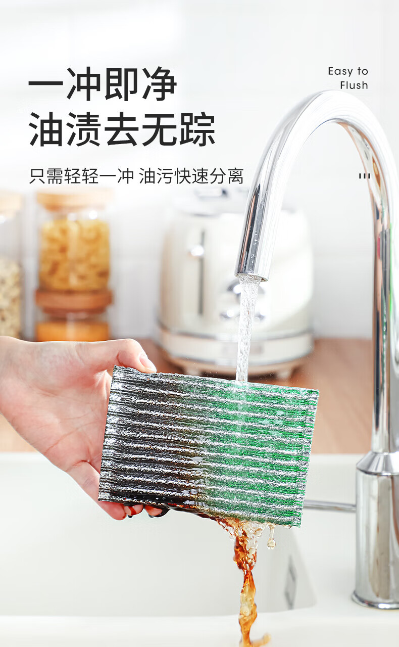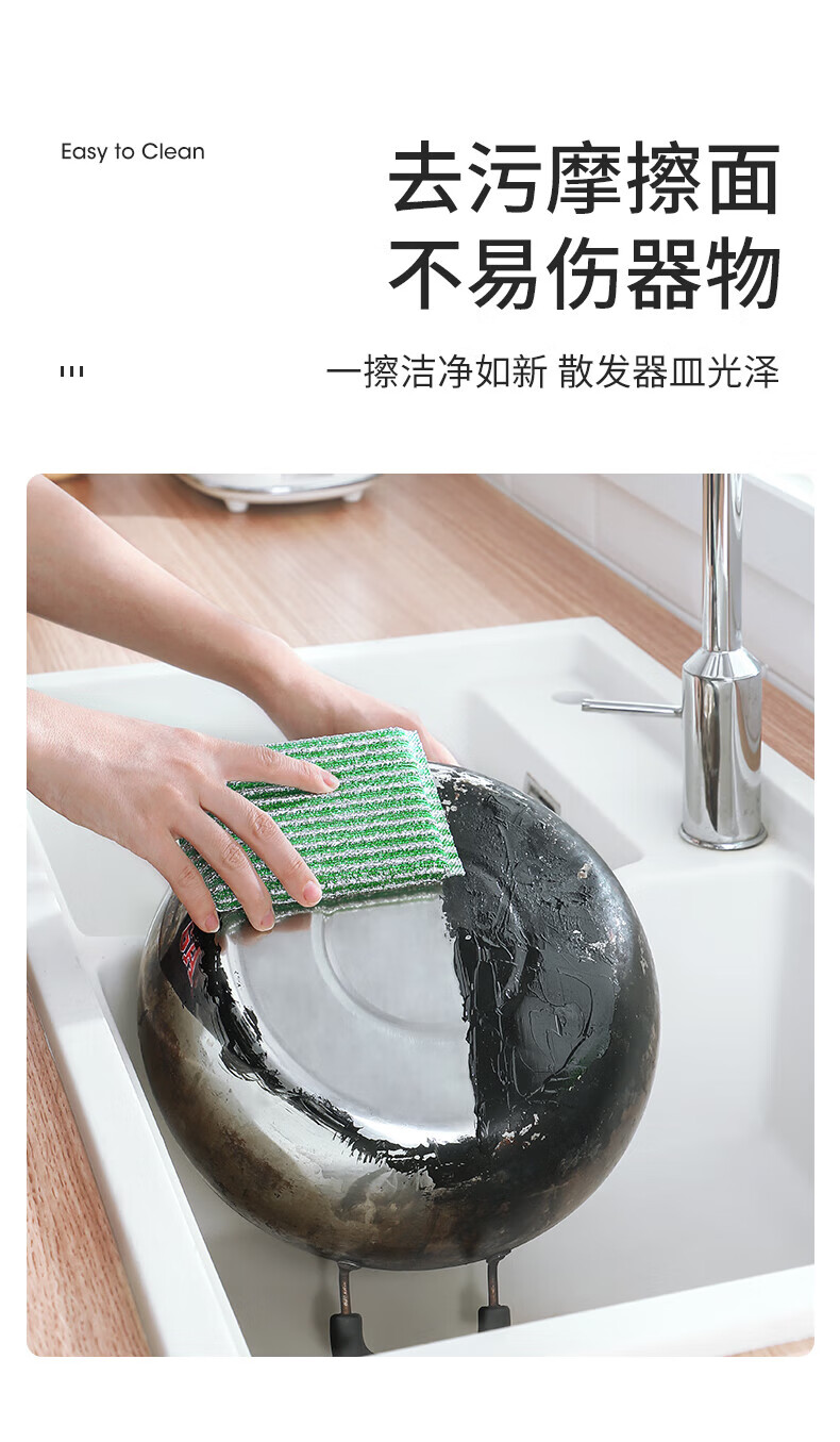 美丽雅百洁布厨房洗碗刷锅吸水去污易清洗海绵百洁布多用洗碗抹布 金柔百洁布-1包装(4片)